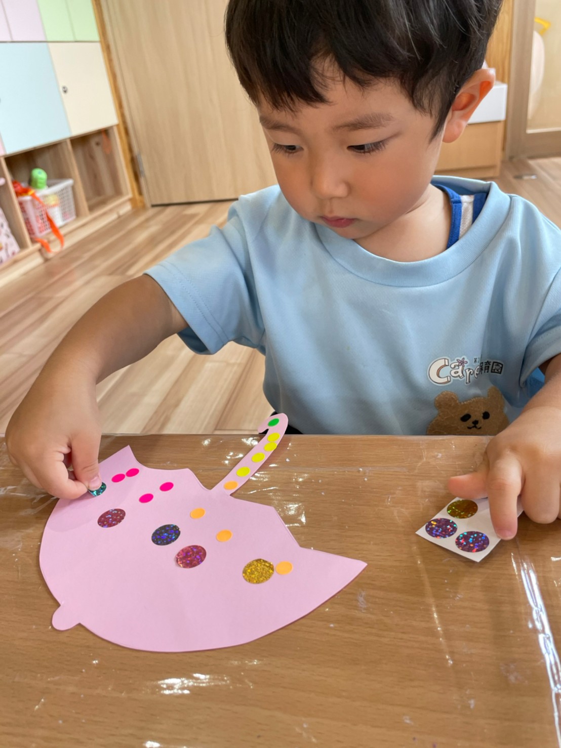 シールやクレヨンを使い可愛い模様ができました☂️