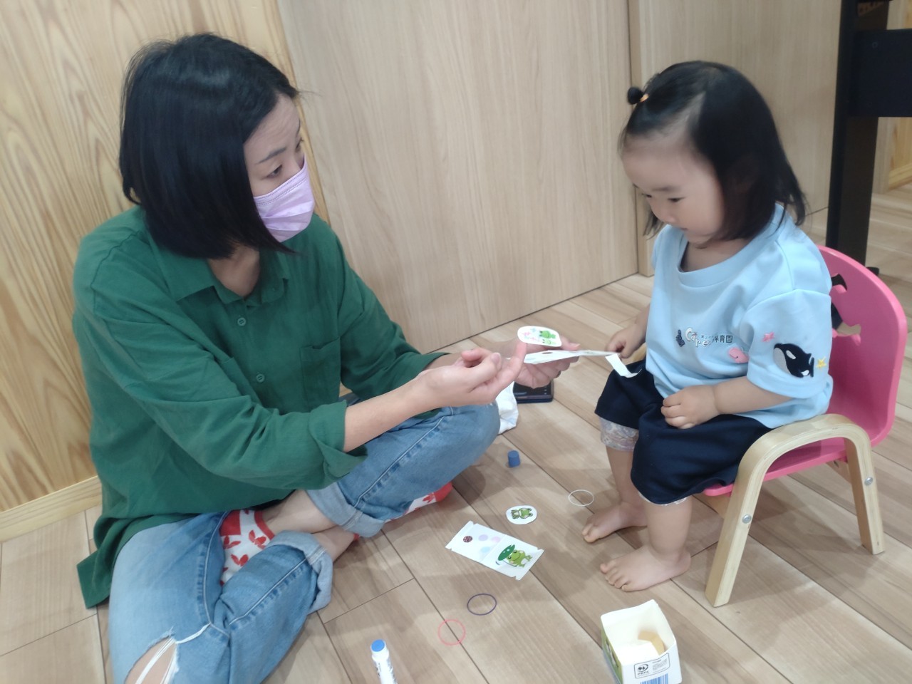 親子製作ではピョンピョンガエルを作りました🐸出来上がって跳ねる様子に、ビックリして固まる子、大笑いする子色んな表情が見られました🥰
