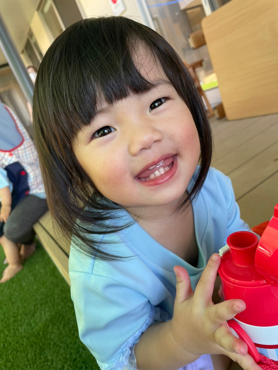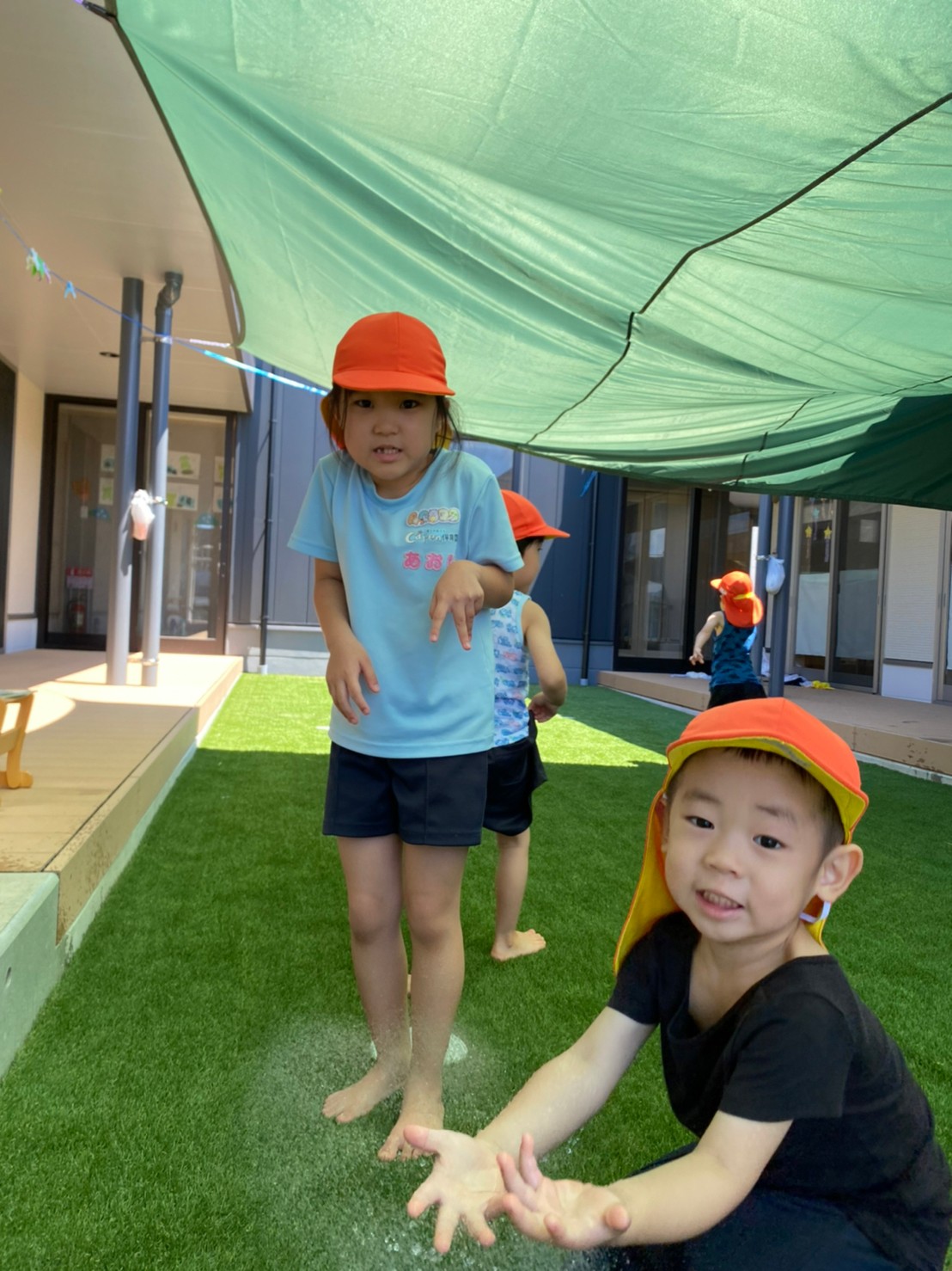 水を撒いて足元を涼しくしようとすると、じわじわと近寄り、水遊びをしようとしていた子どもたちでした🤣