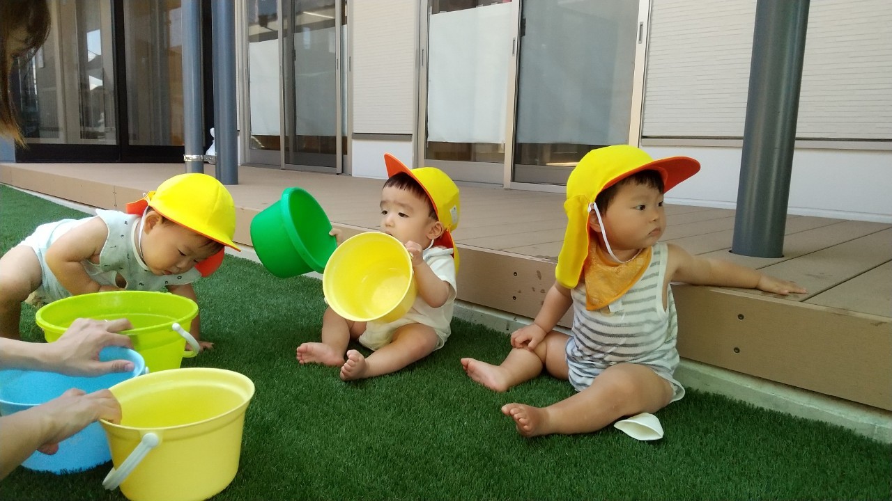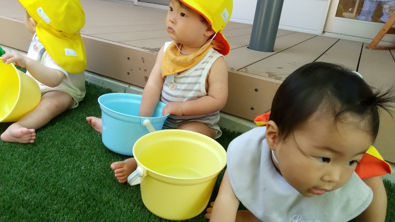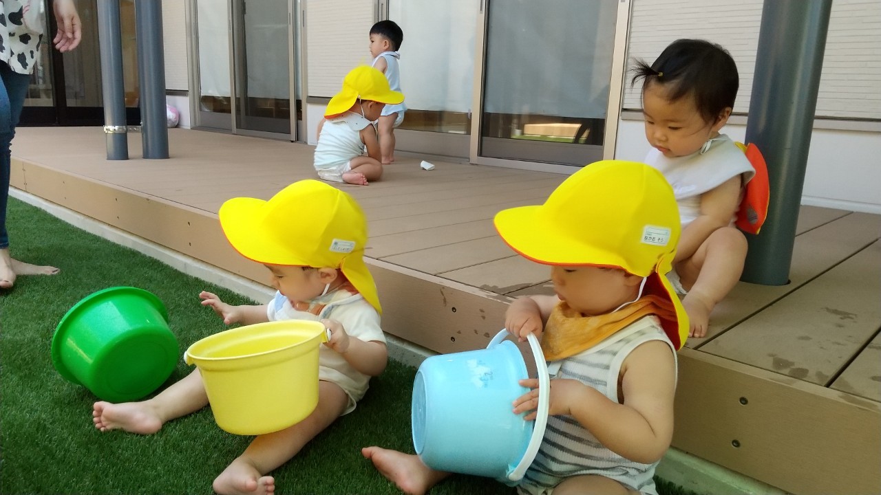 その後は園庭で水遊びをしました!