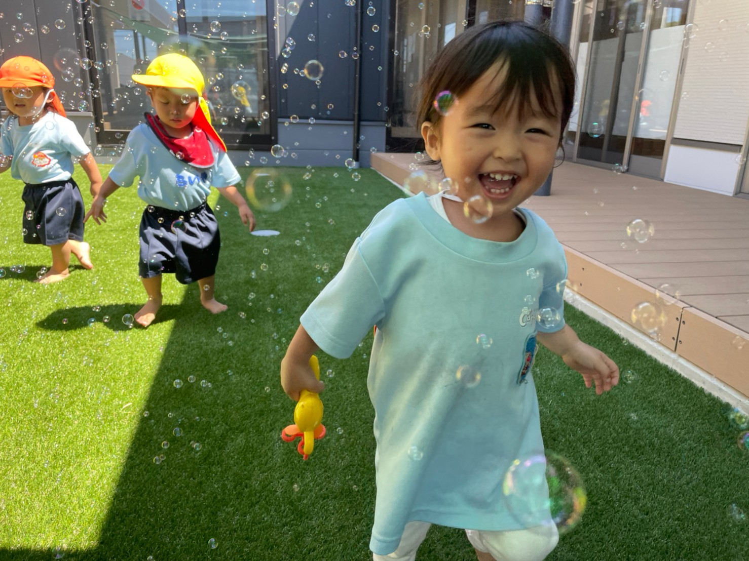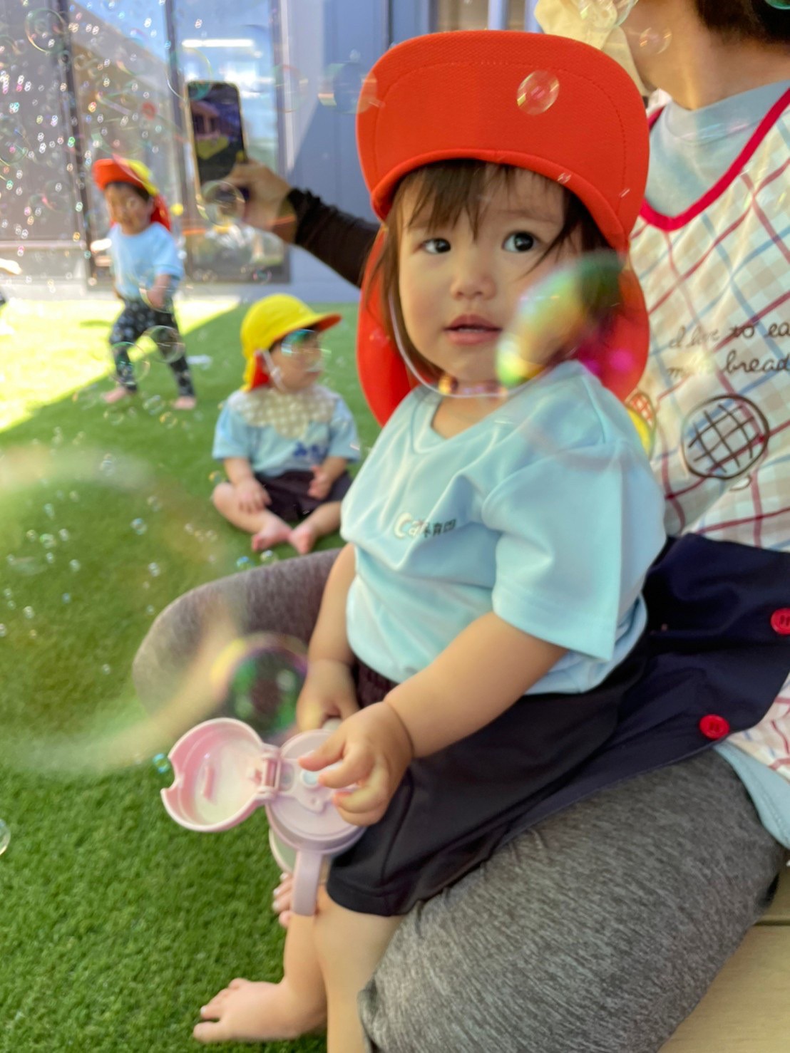 大量に出るシャボン玉を見て大はしゃぎの様子でした😊