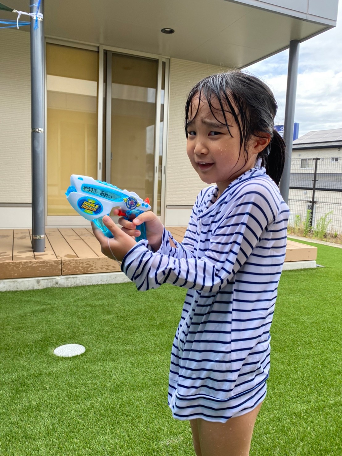 楽しそうに水を掛け合い、水鉄砲やシャワーで楽しみました🐬