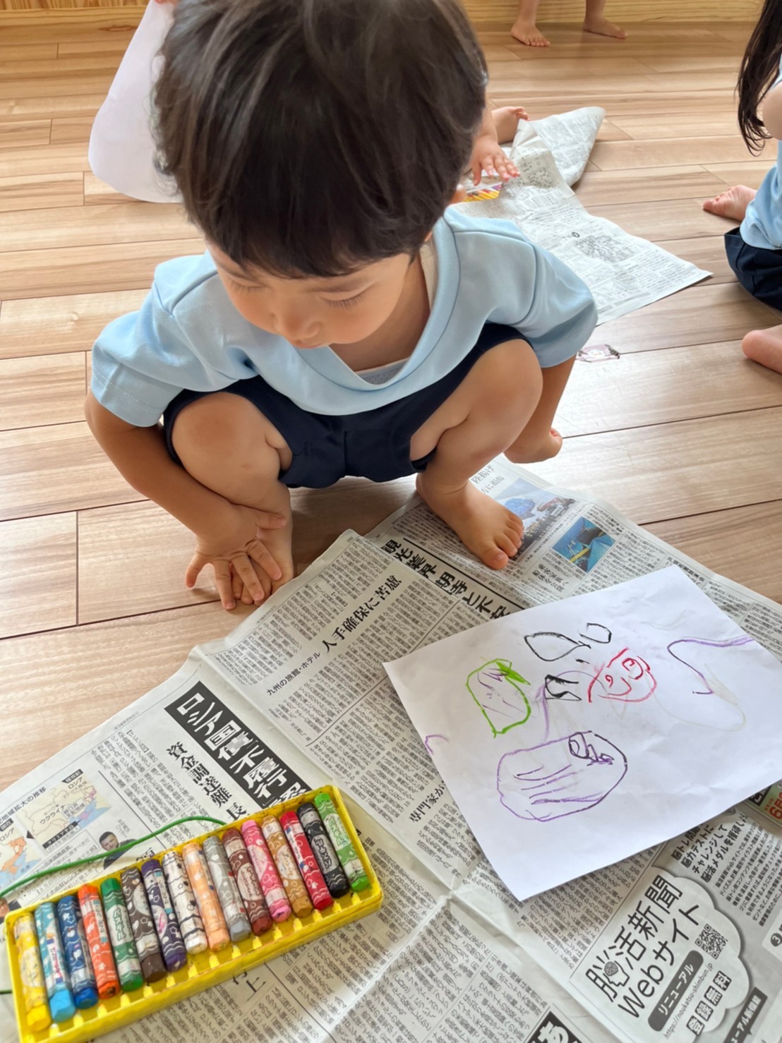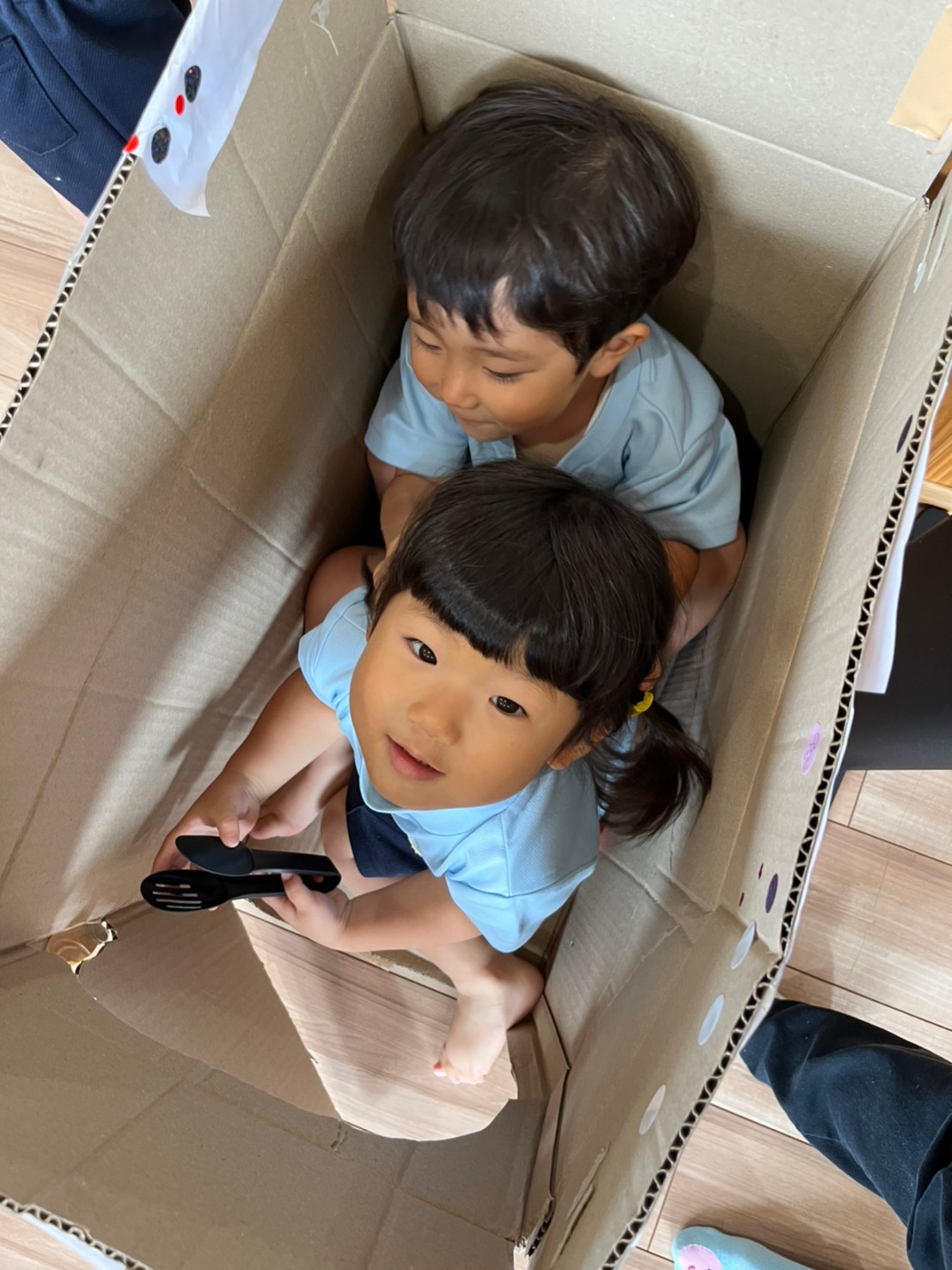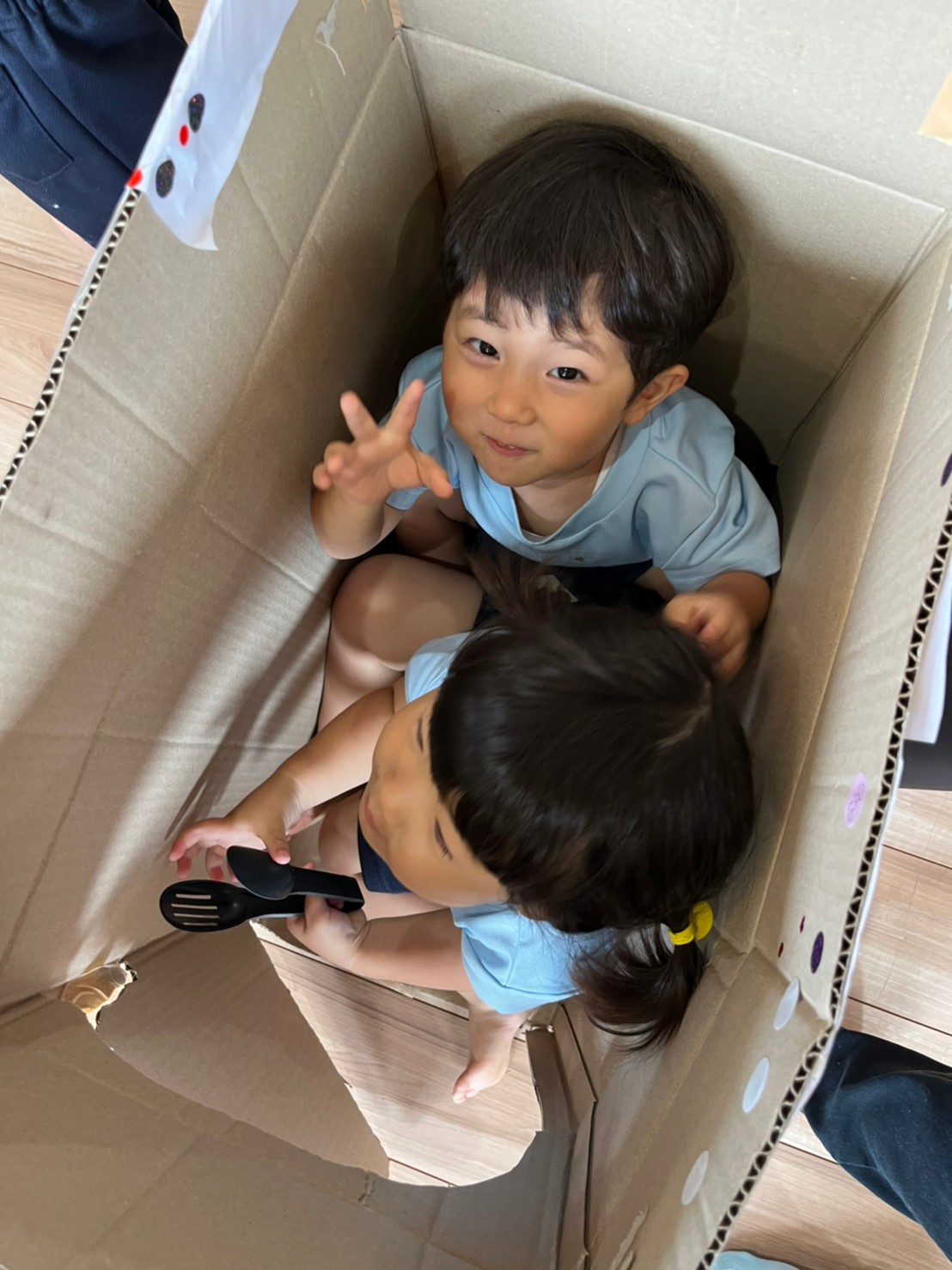 今日はダンボールにお絵描きをしたりシールを貼ったりして廃材遊びを楽しみました🤗