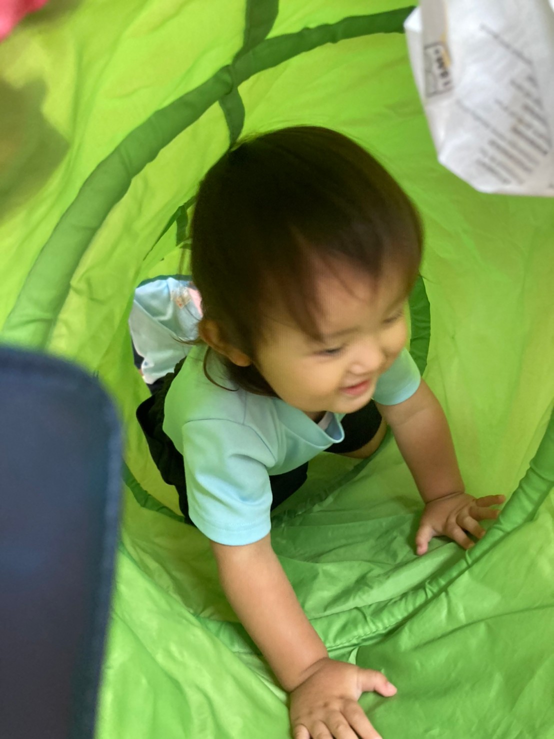 お慣らしのお友だちはおんぶしてもらって眠った後はスッキリ!泣かずに過ごしました😊✨ぱんだ組🐼🐾
