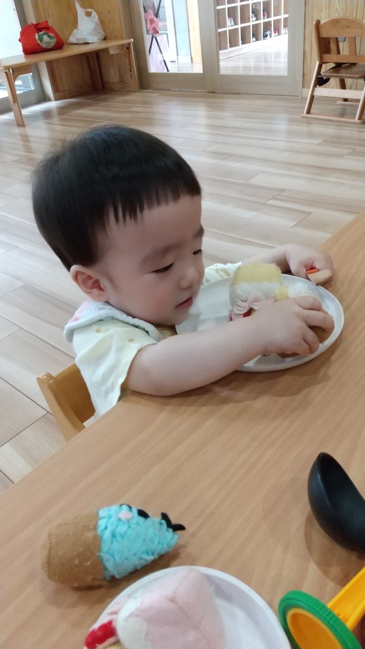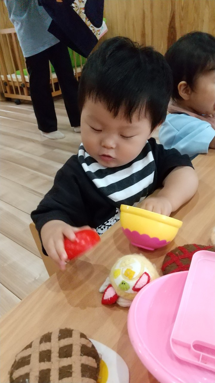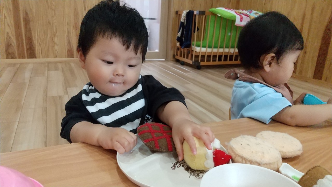 テーブルでお皿にごちそうを並べたり、ケーキやハンバーグを食べてかわいいもぐもぐタイムを楽しみましたよ❤️