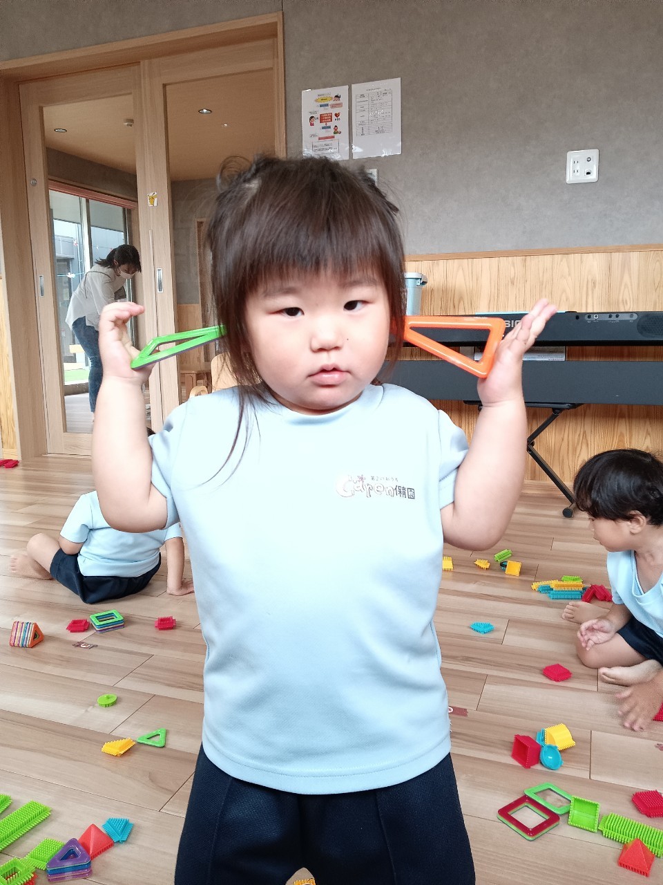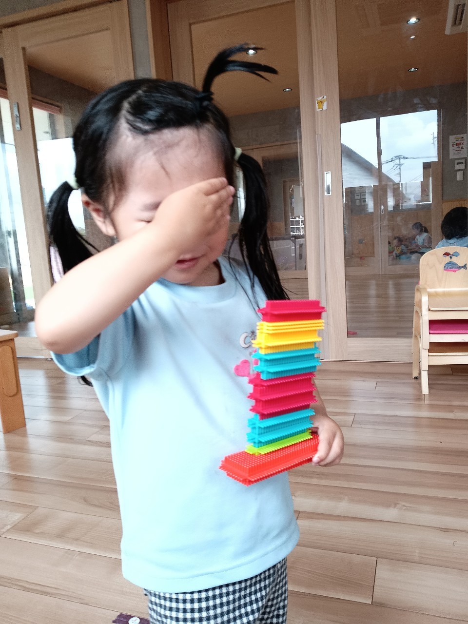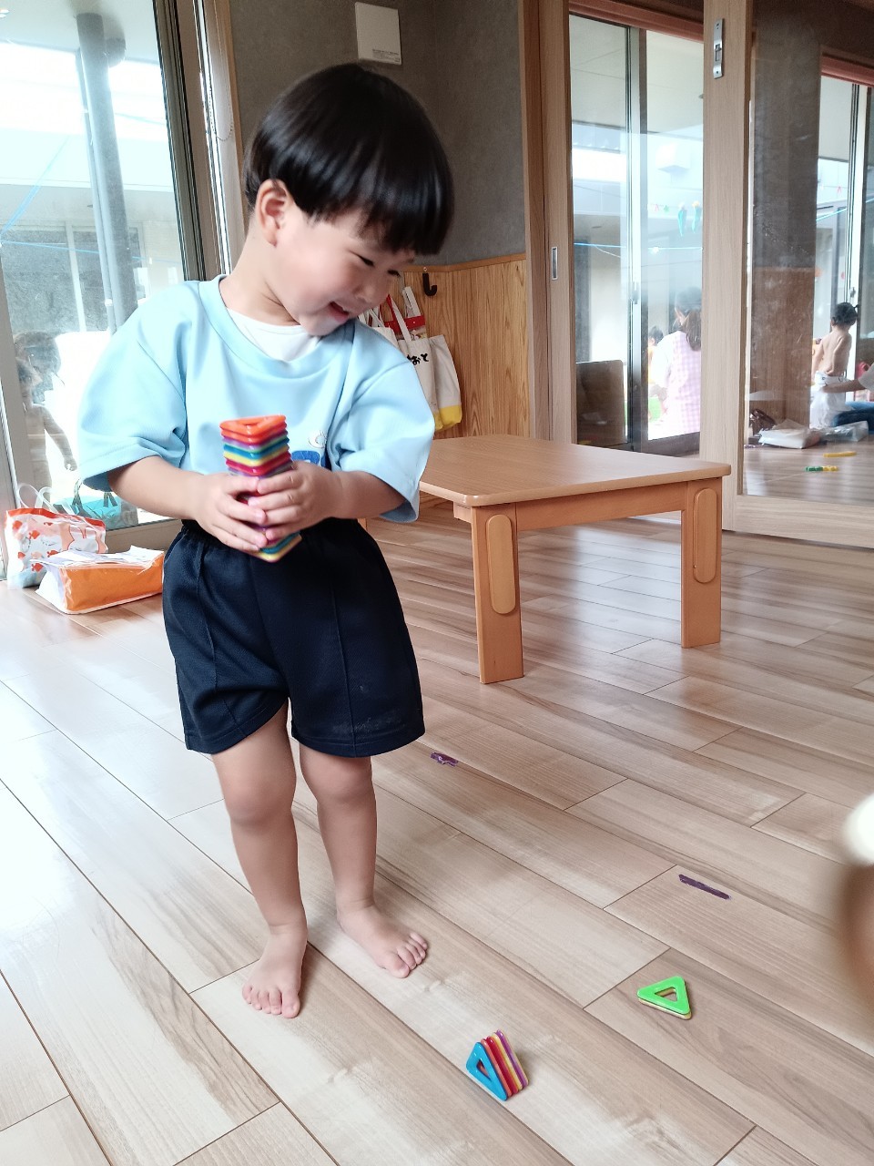 重ねたり並べてみたり、それぞれの楽しみ方で遊びました❤️【くりえいと園の今日の給食です】