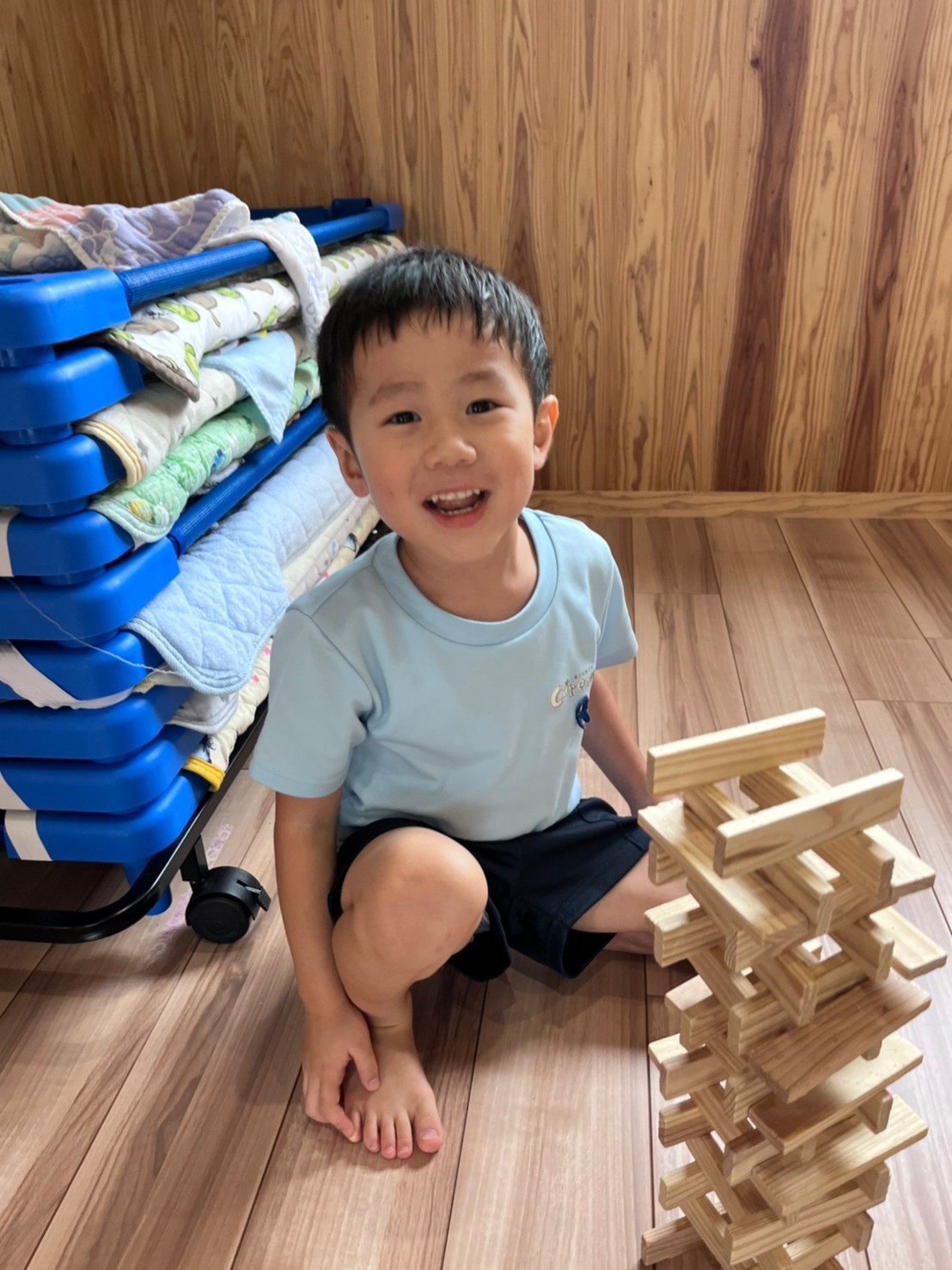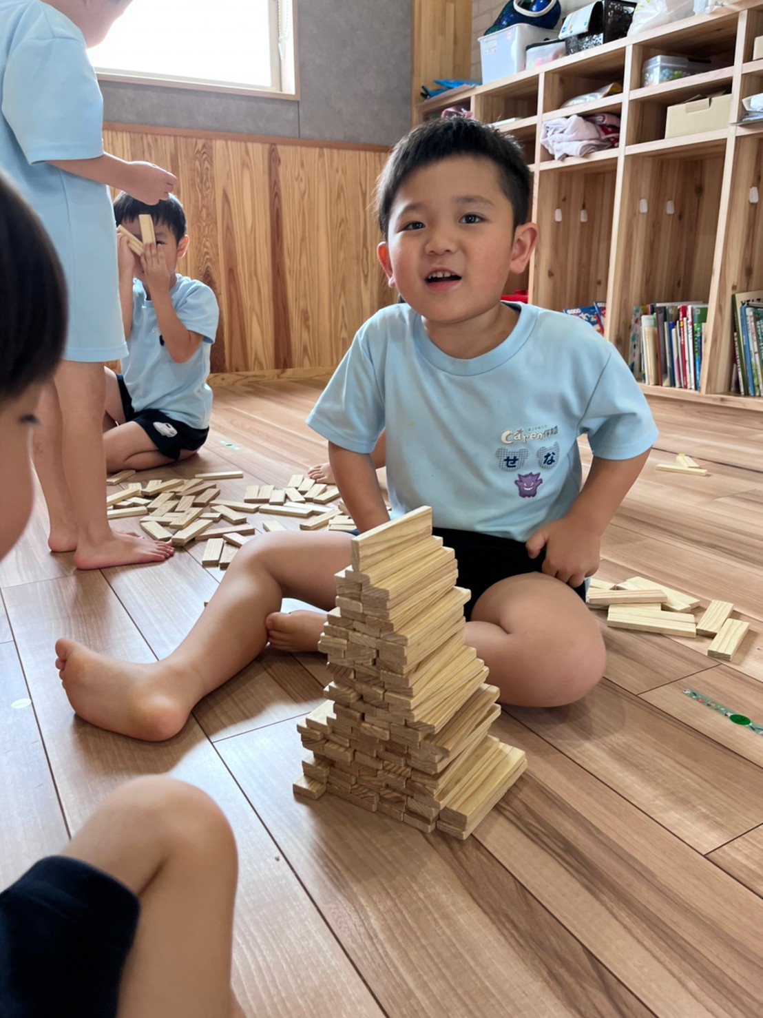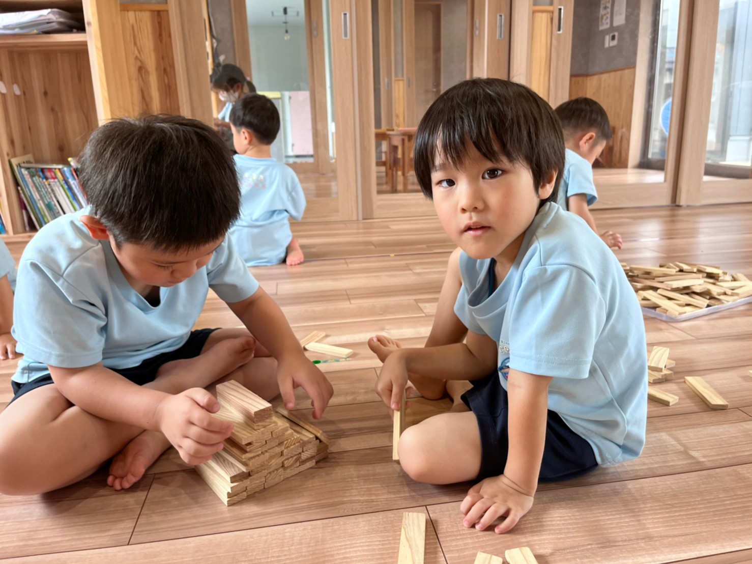 重ねたり並べてみたり、それぞれの楽しみ方で遊びました❤️【くりえいと園の今日の給食です】