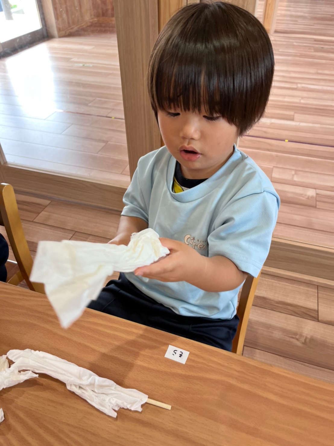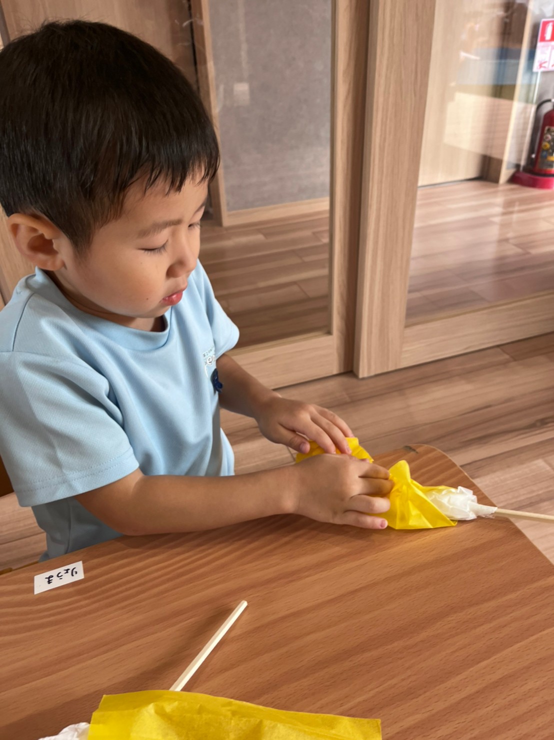 今日は割り箸にティッシュや新聞紙を巻き付けるのを頑張りました⭐️
