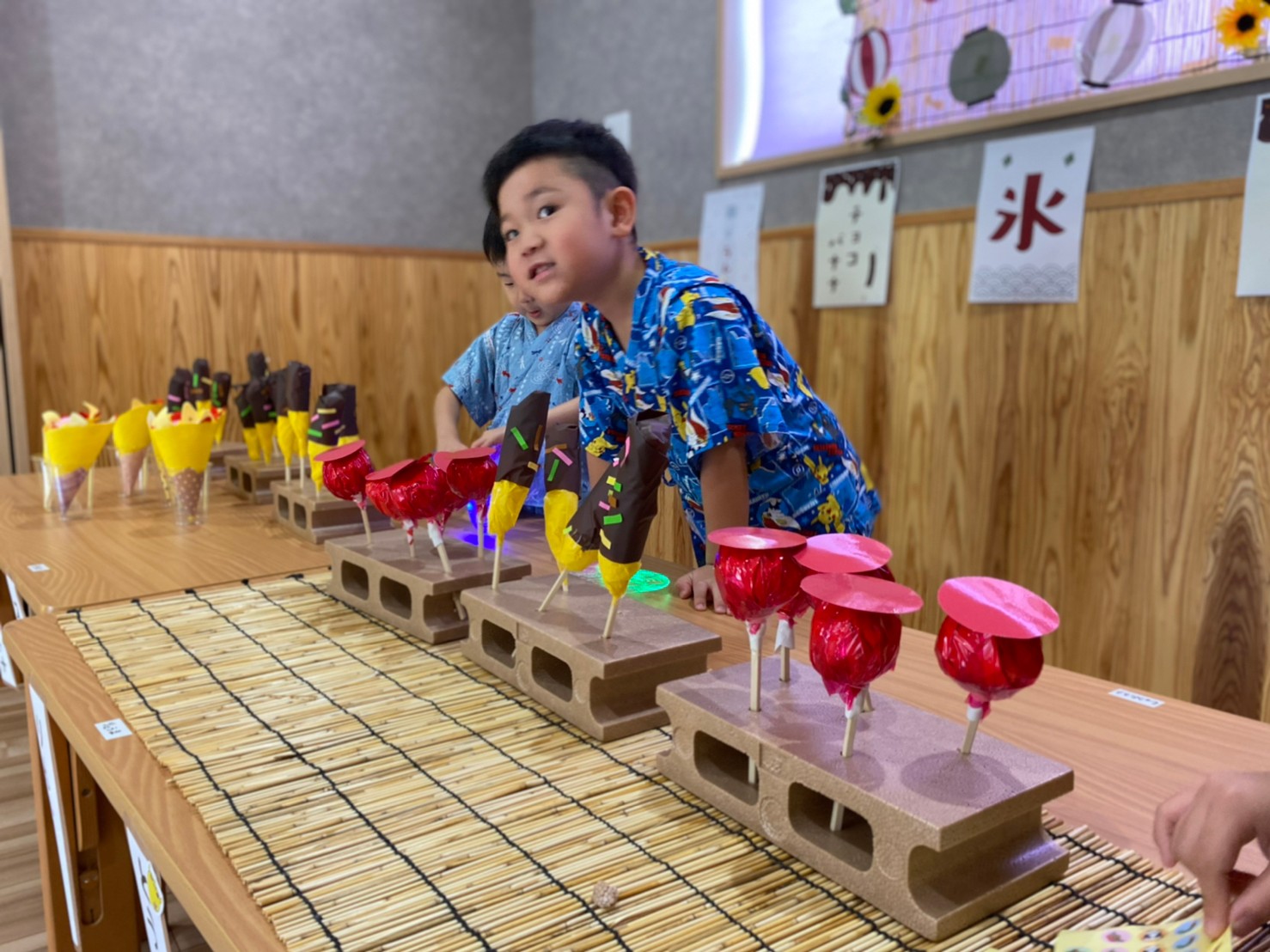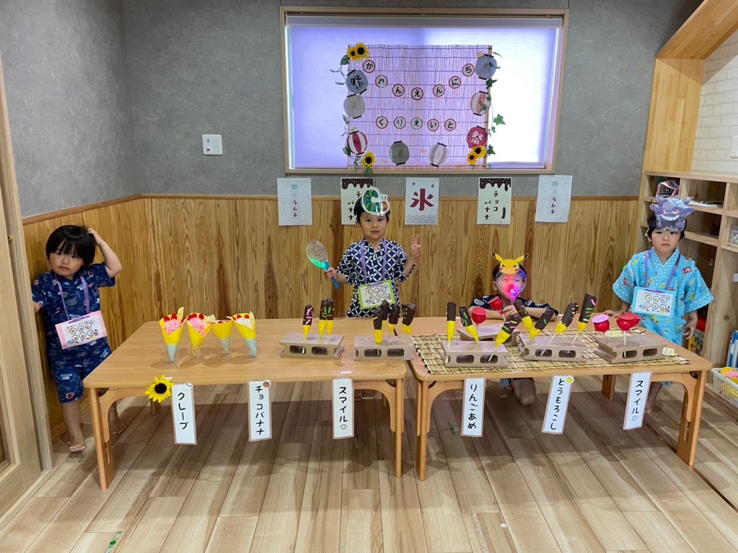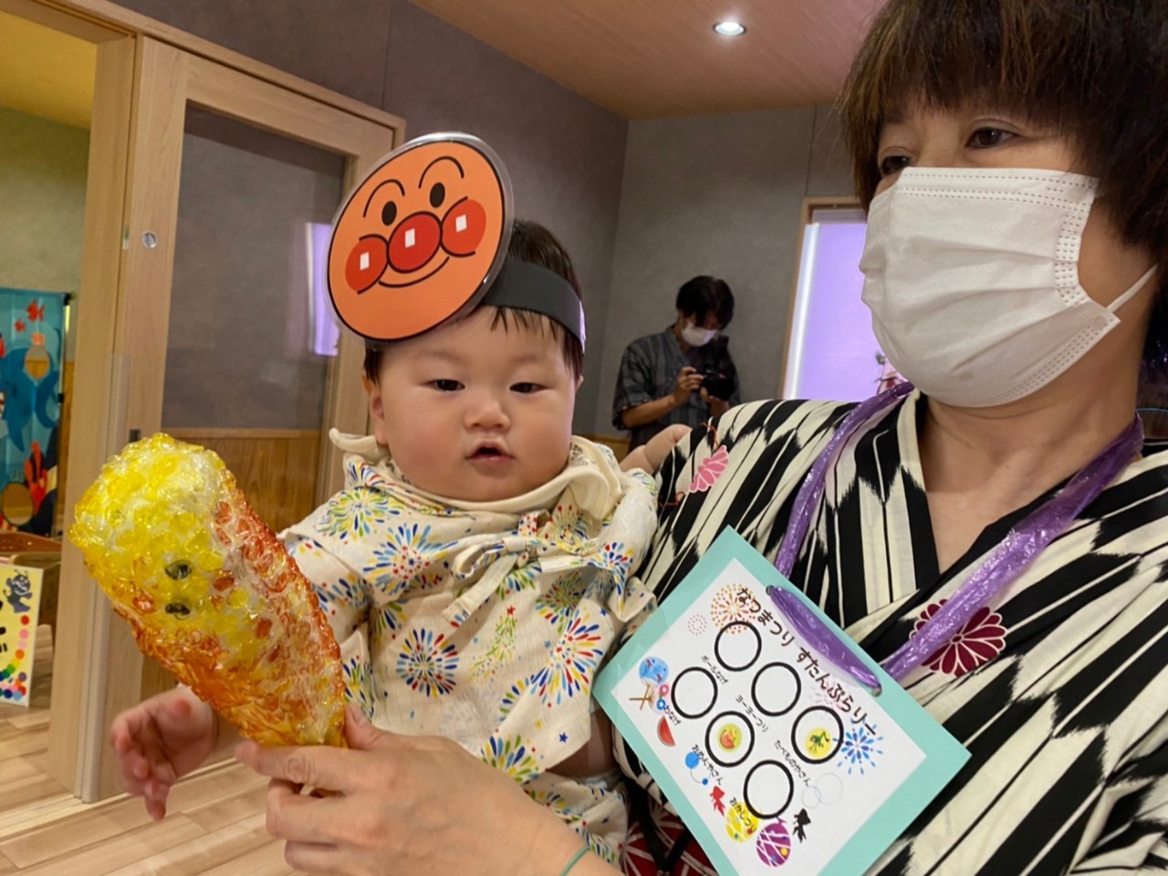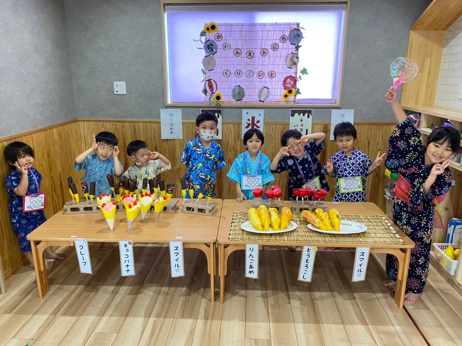 最後の盆踊りも全園児で踊ったり、給食も夏祭り仕様でワクワクした気持ちで過ごす1日になりました✨うさぎ、こあら、きりん組
