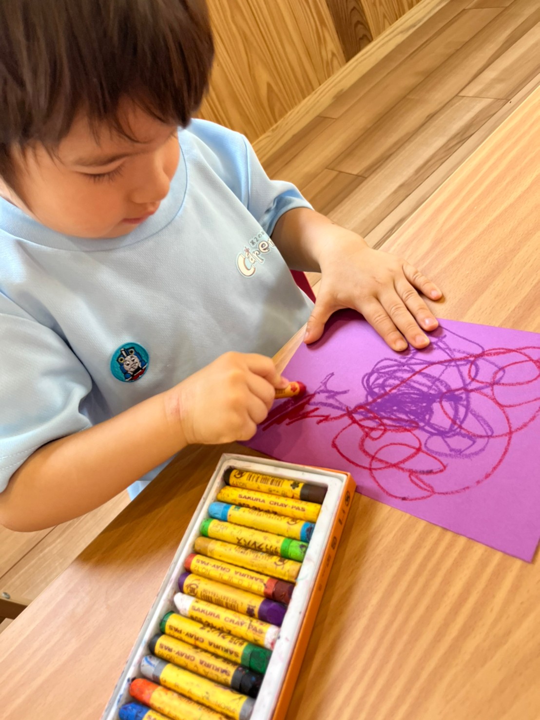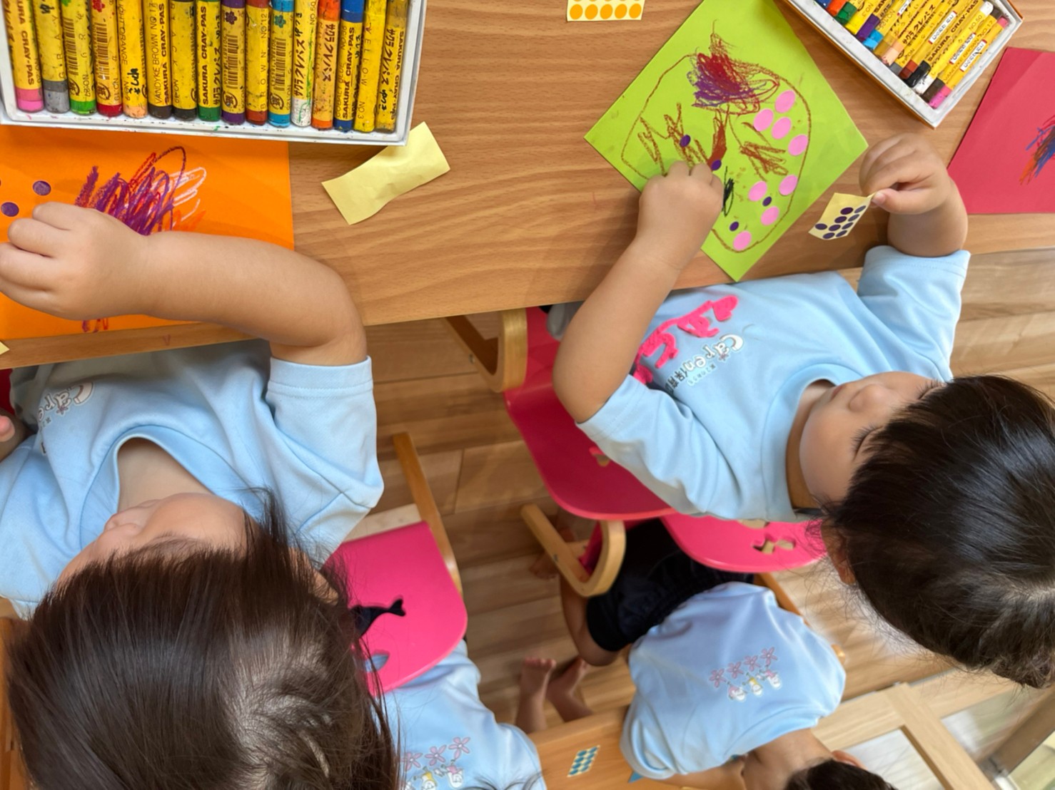 自分たちの好きな色の画用紙を選んでお絵描きやシール貼りをして製作を楽しみました😍