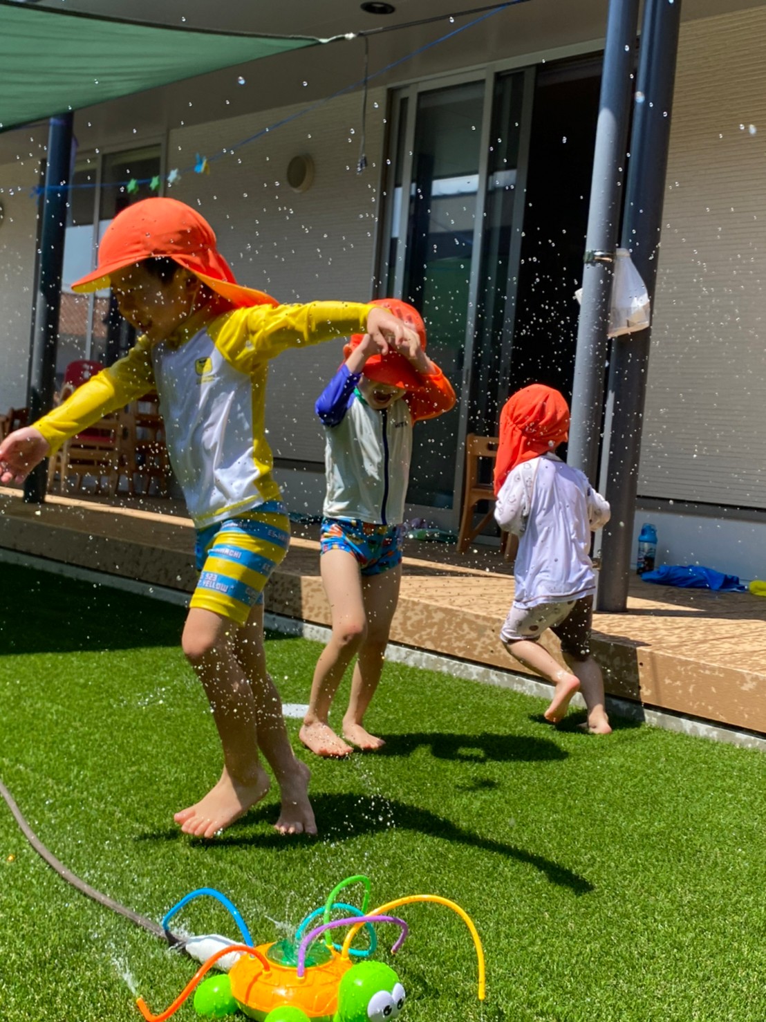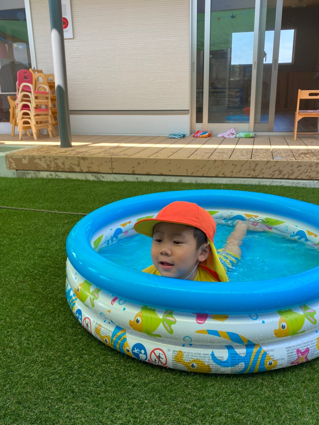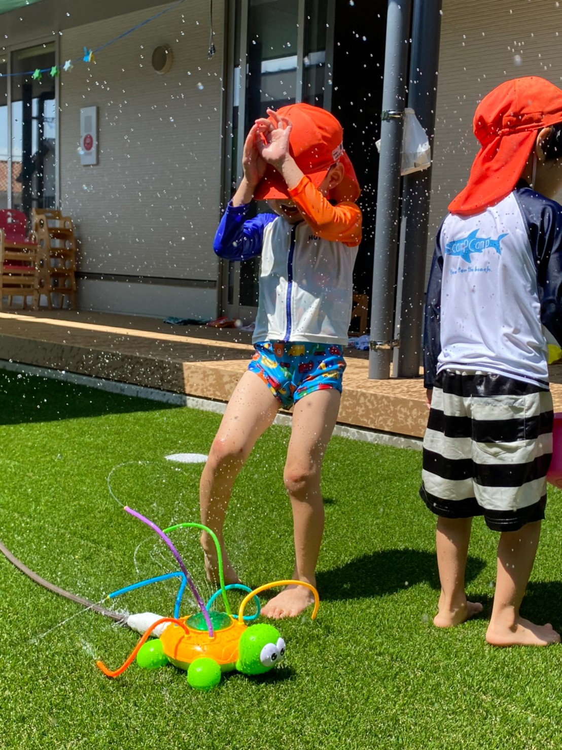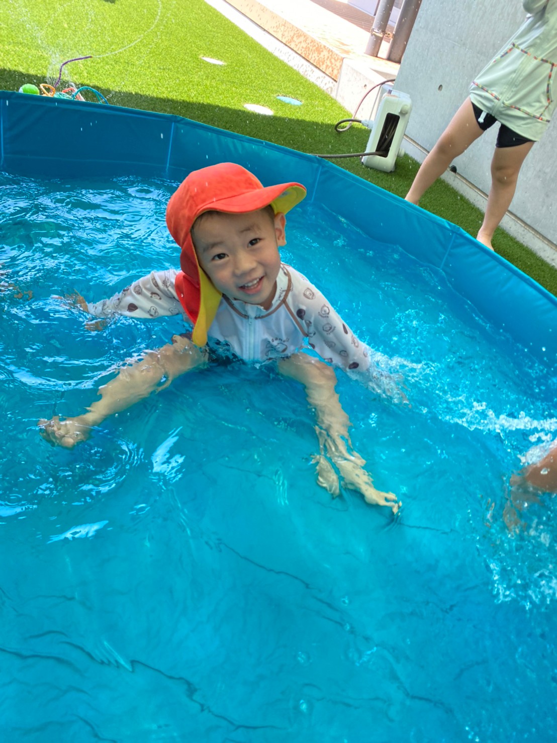 亀のスプリンクラーに果敢に立ち向かう男の子たちに笑ってしまったのと同時に、ゆらーーっとプールに寝転び、気持ちよさそうなお友達もいて、今日も楽しいカレン保育園です😁⭐️