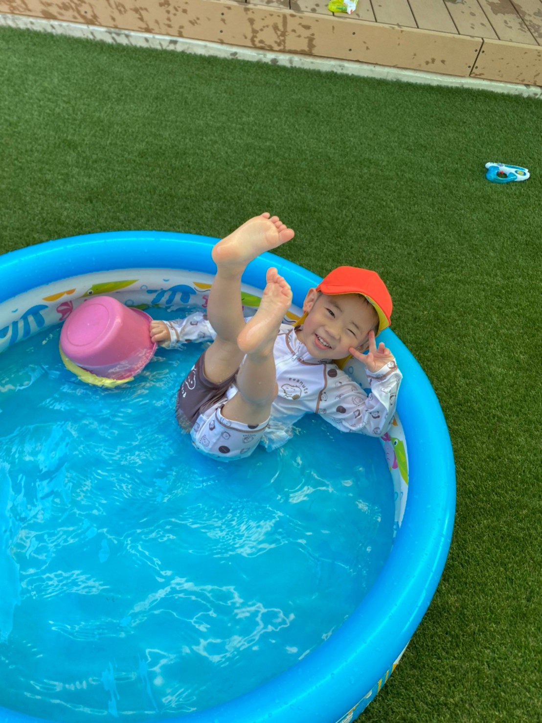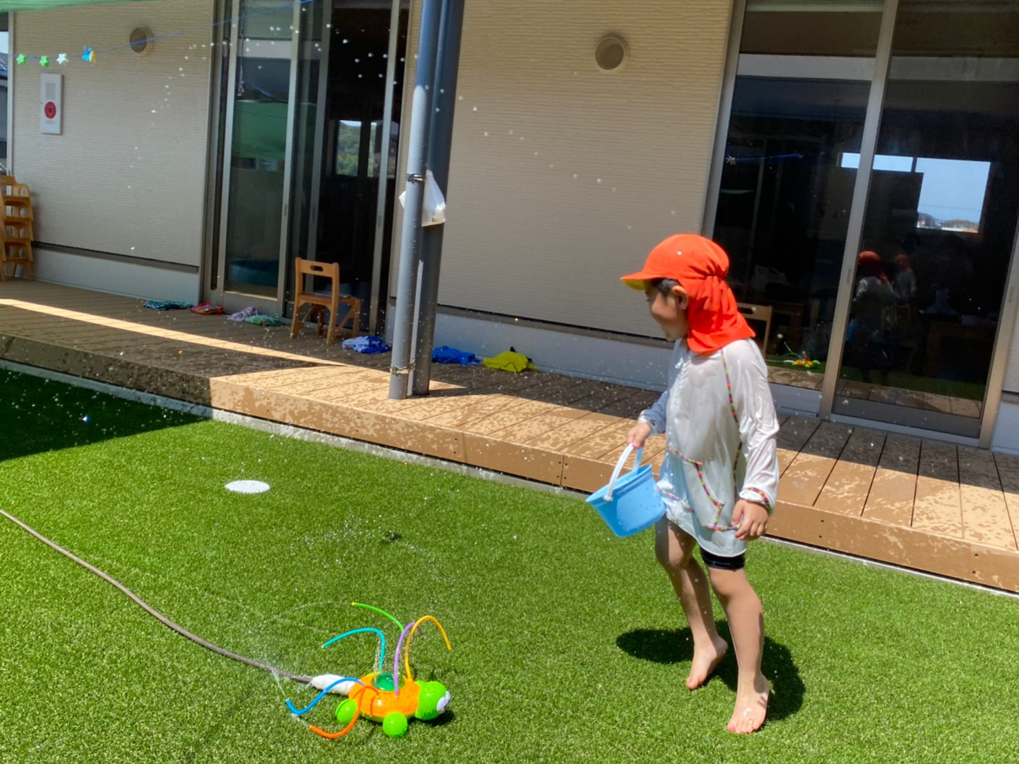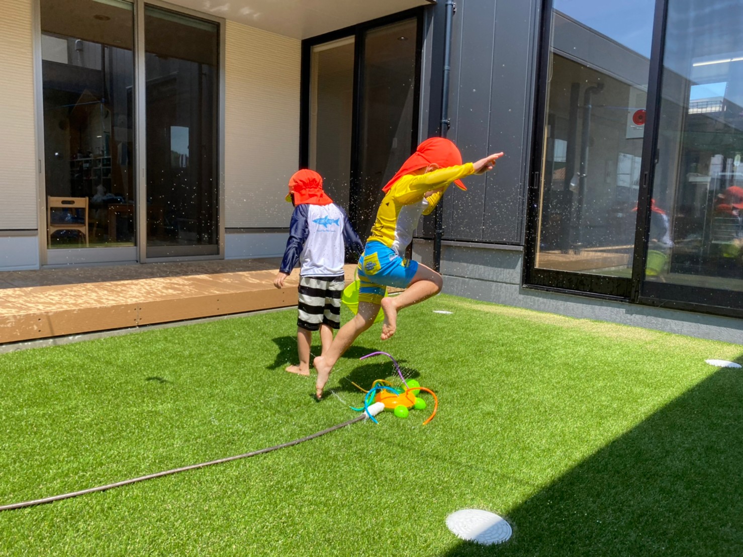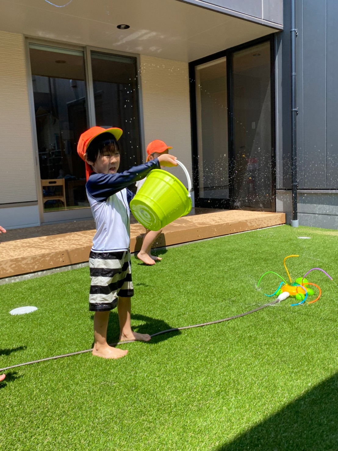 亀のスプリンクラーに果敢に立ち向かう男の子たちに笑ってしまったのと同時に、ゆらーーっとプールに寝転び、気持ちよさそうなお友達もいて、今日も楽しいカレン保育園です😁⭐️