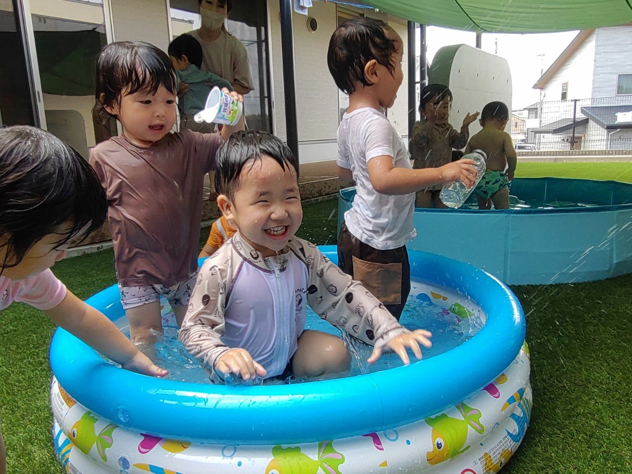 友達同士で水の掛け合いをしたり、バケツに移して遊んだり楽しそうな子供達でしたよ💗