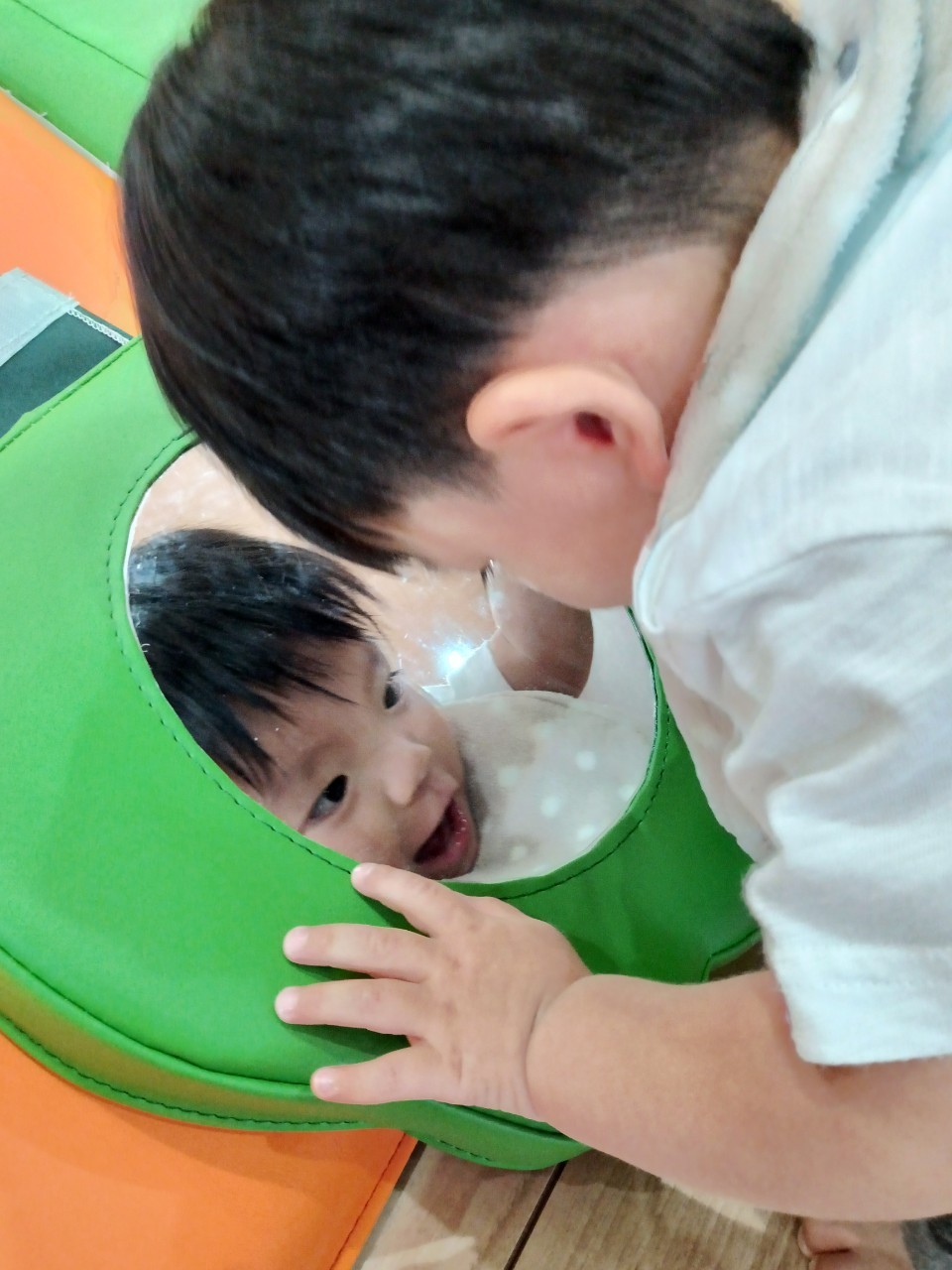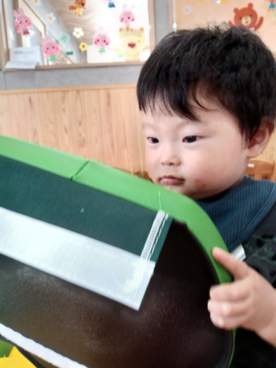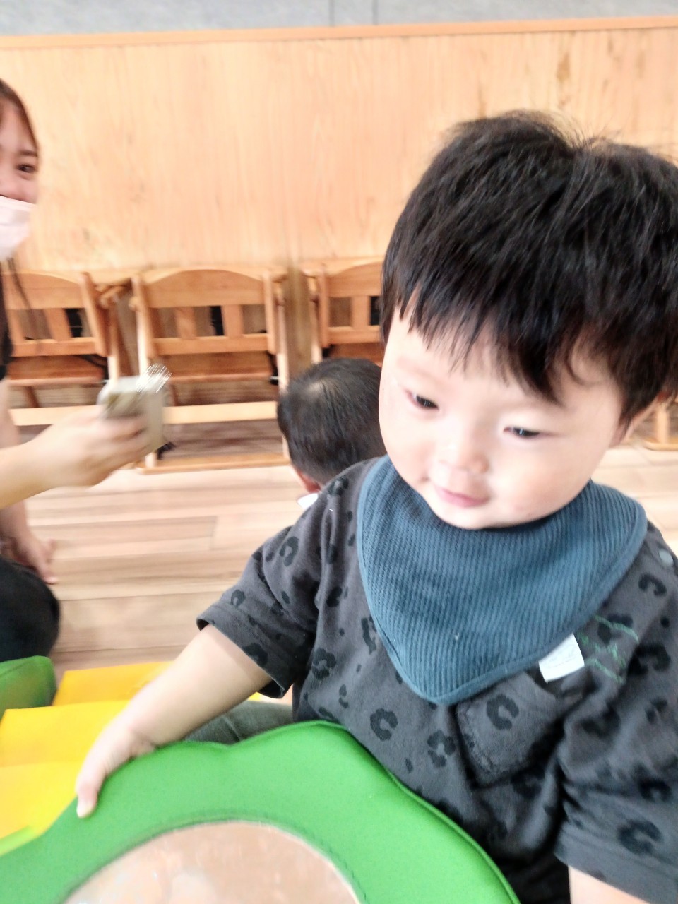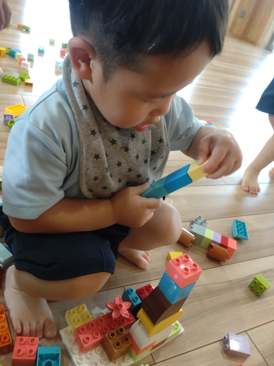 今日から久しぶりの登園に泣く子もいましたがすぐに今までの生活に戻り大好きな玩具で遊んでいました☺️今日は水遊びの日で、久しぶりだったのでプールの中にはいり思いっきり楽しむ様子が見られました🙂また部屋遊びの子も音が出る玩具や新しくきた亀🐢さんのプレイマットに興味を持ち、階段を登ったり、滑り台をすべったりと楽しく遊ぶ事ができました👏