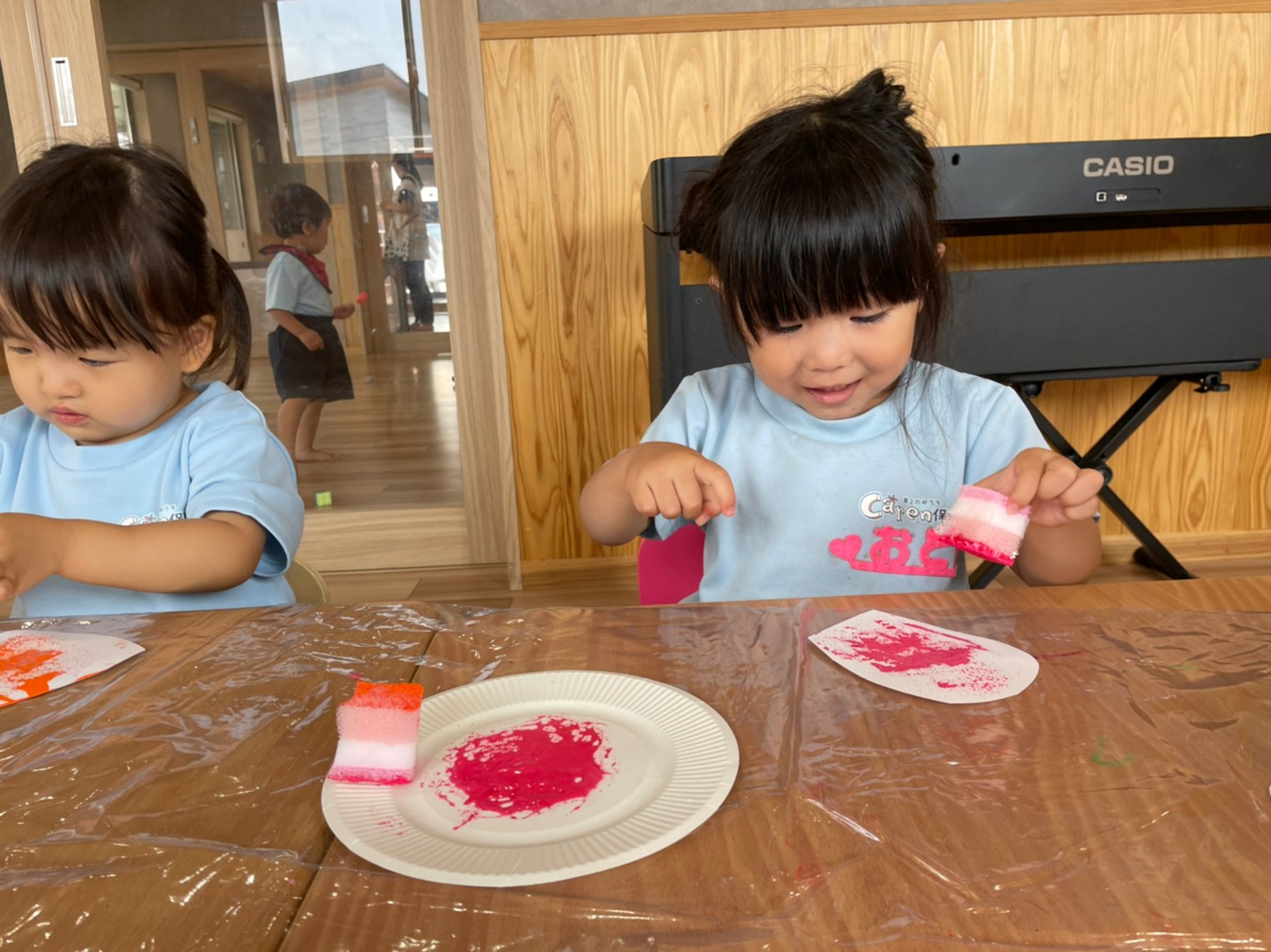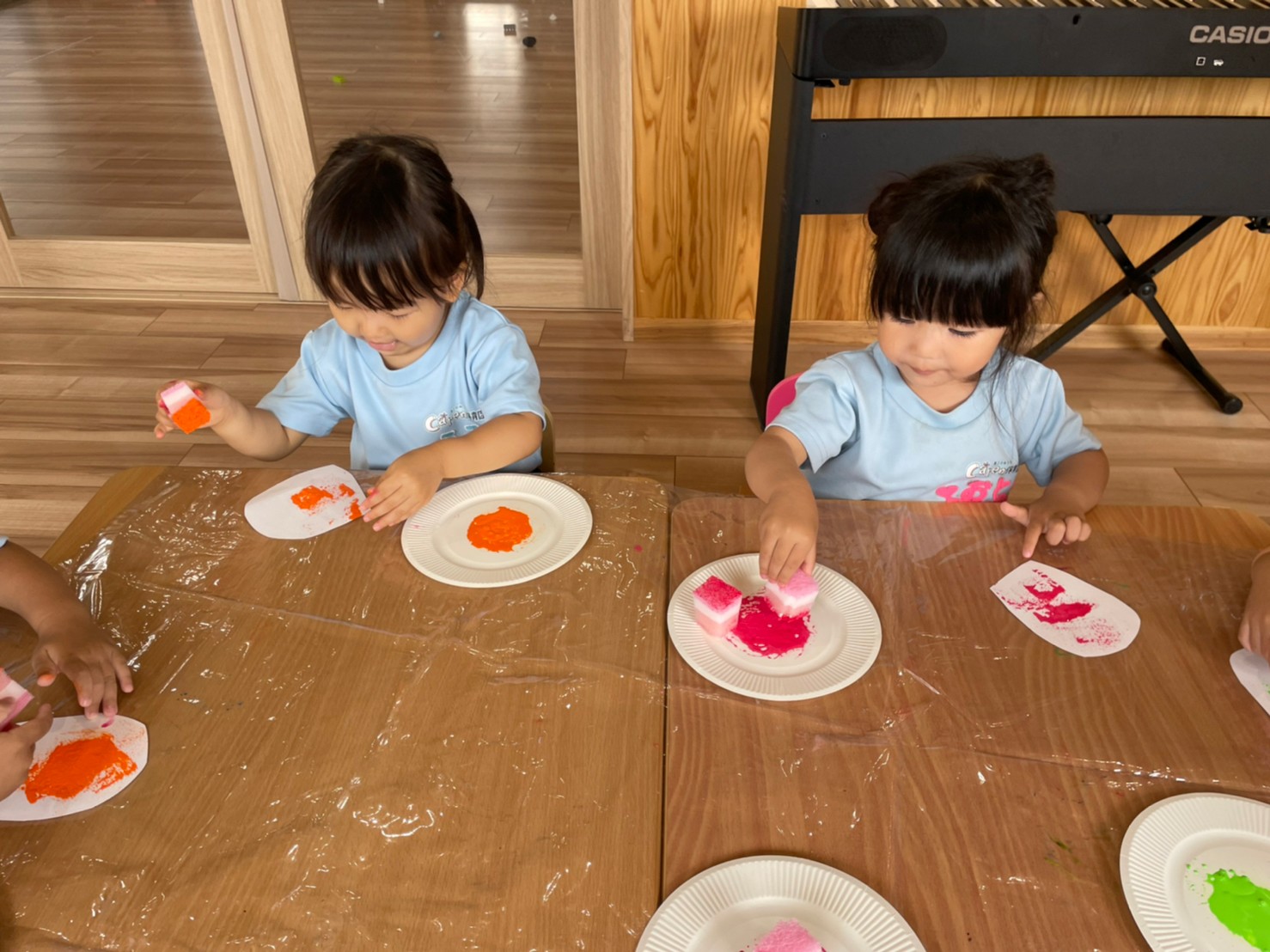 絵の具とスポンジを使って、美味しそうな模様をつけていましたよ🫰
