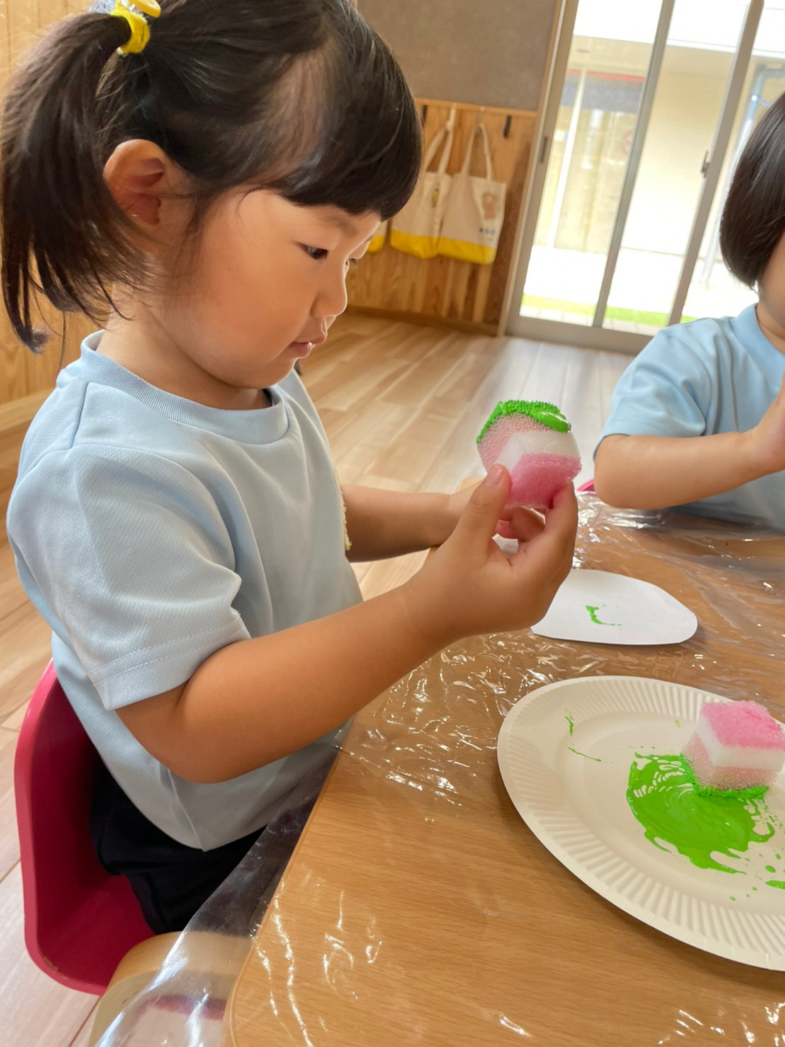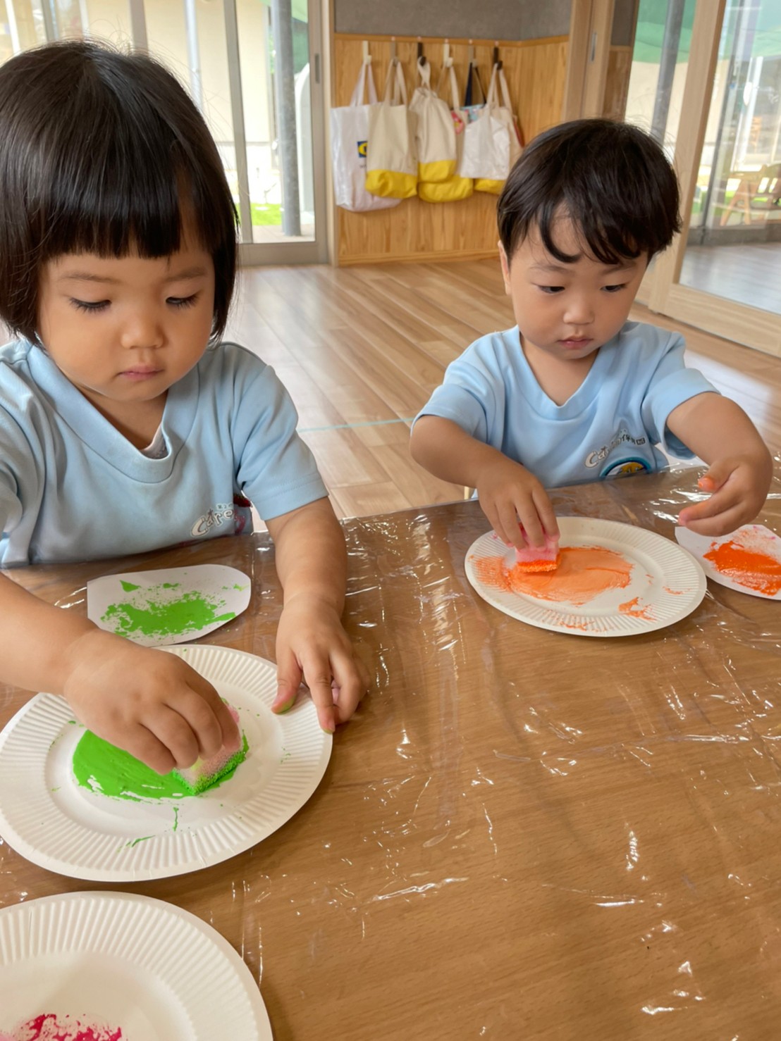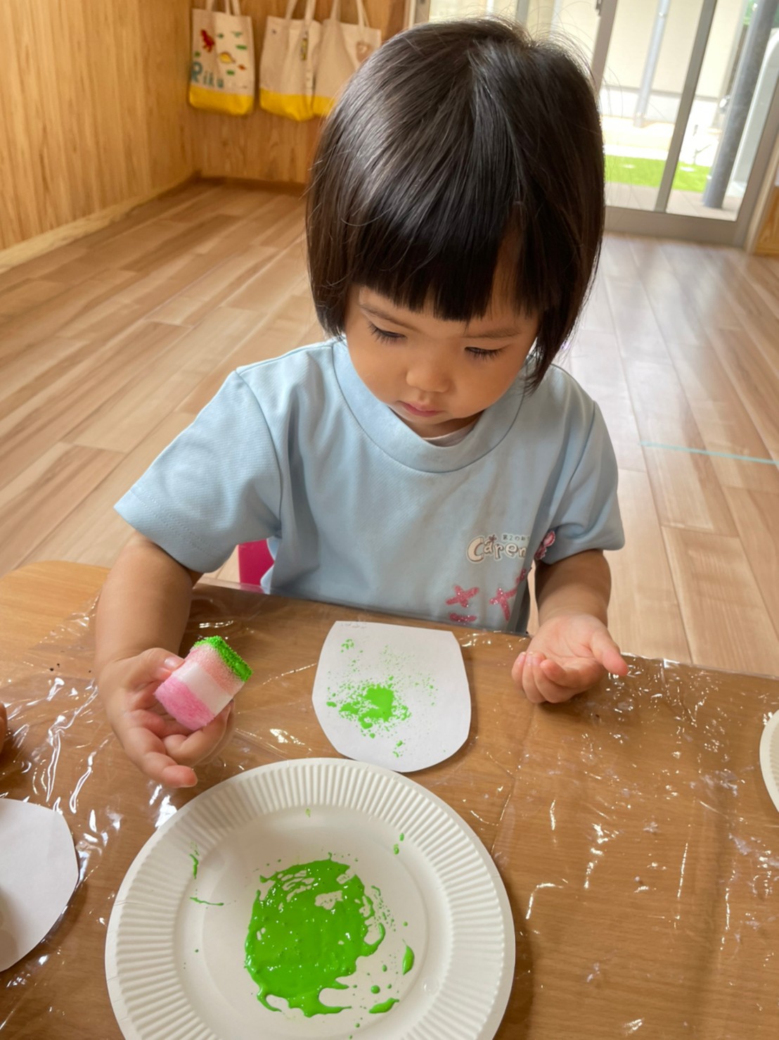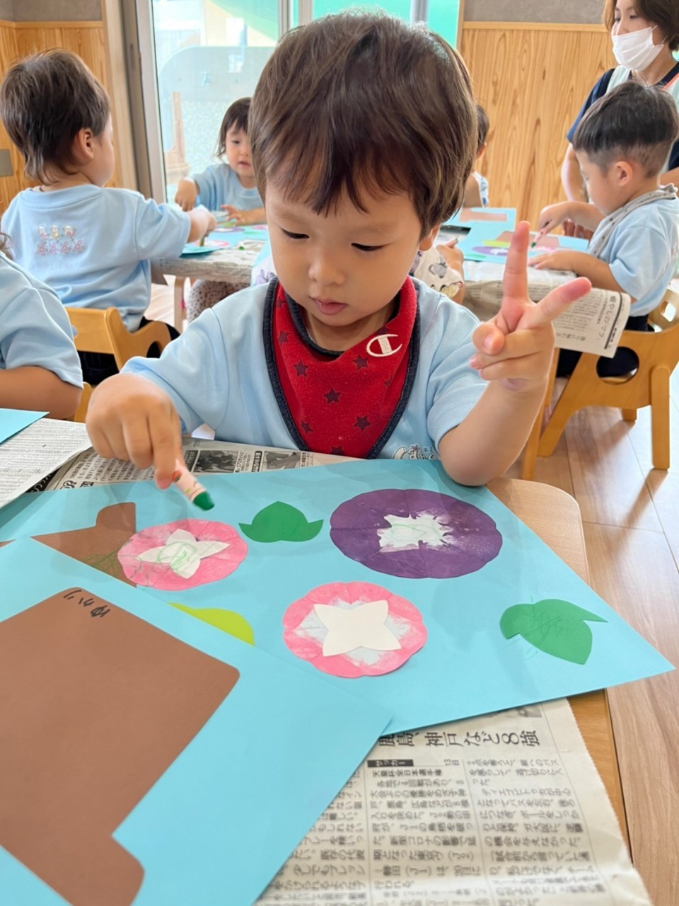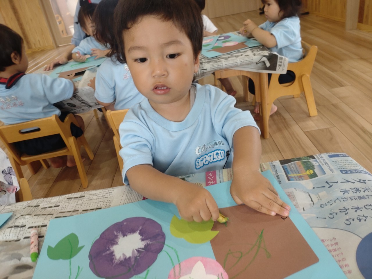 皆で白も混ぜるー!緑がいい!と思いを伝えあって製作が出来ました🖌