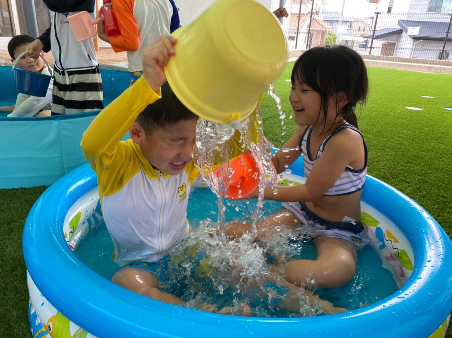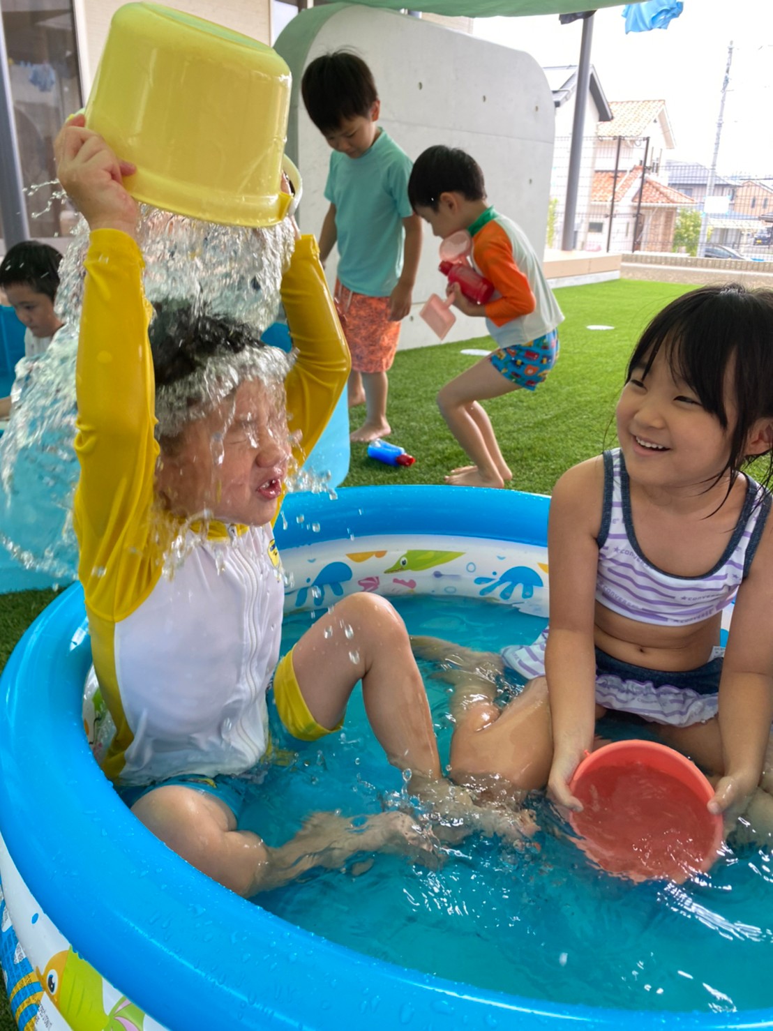 運動会練習を頑張った後は、楽しみにしていた水遊び❤️