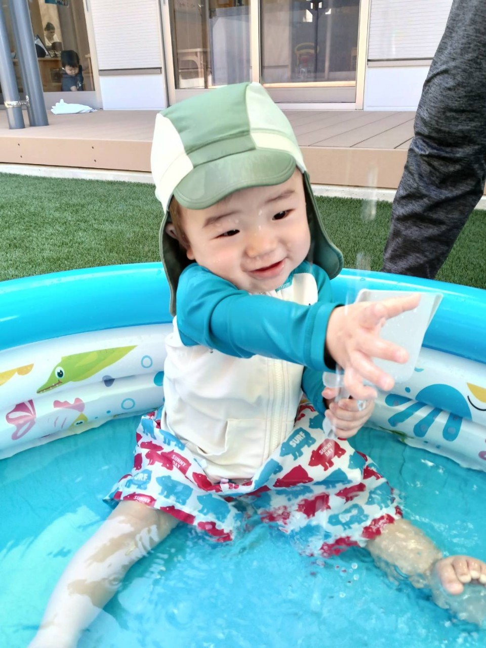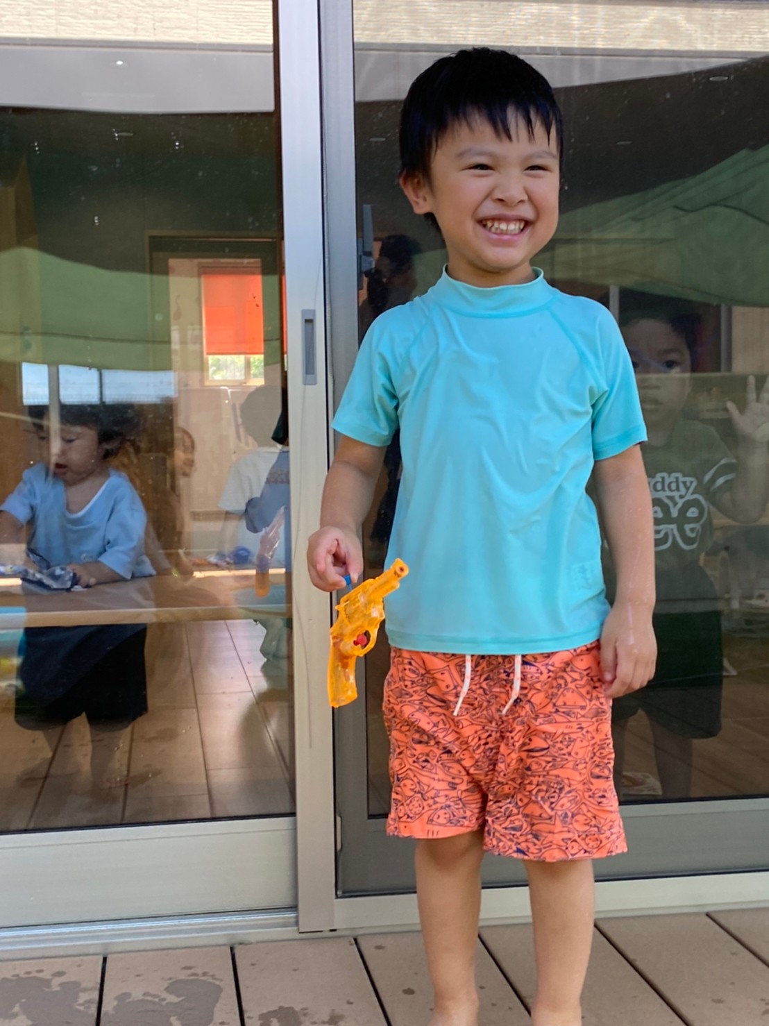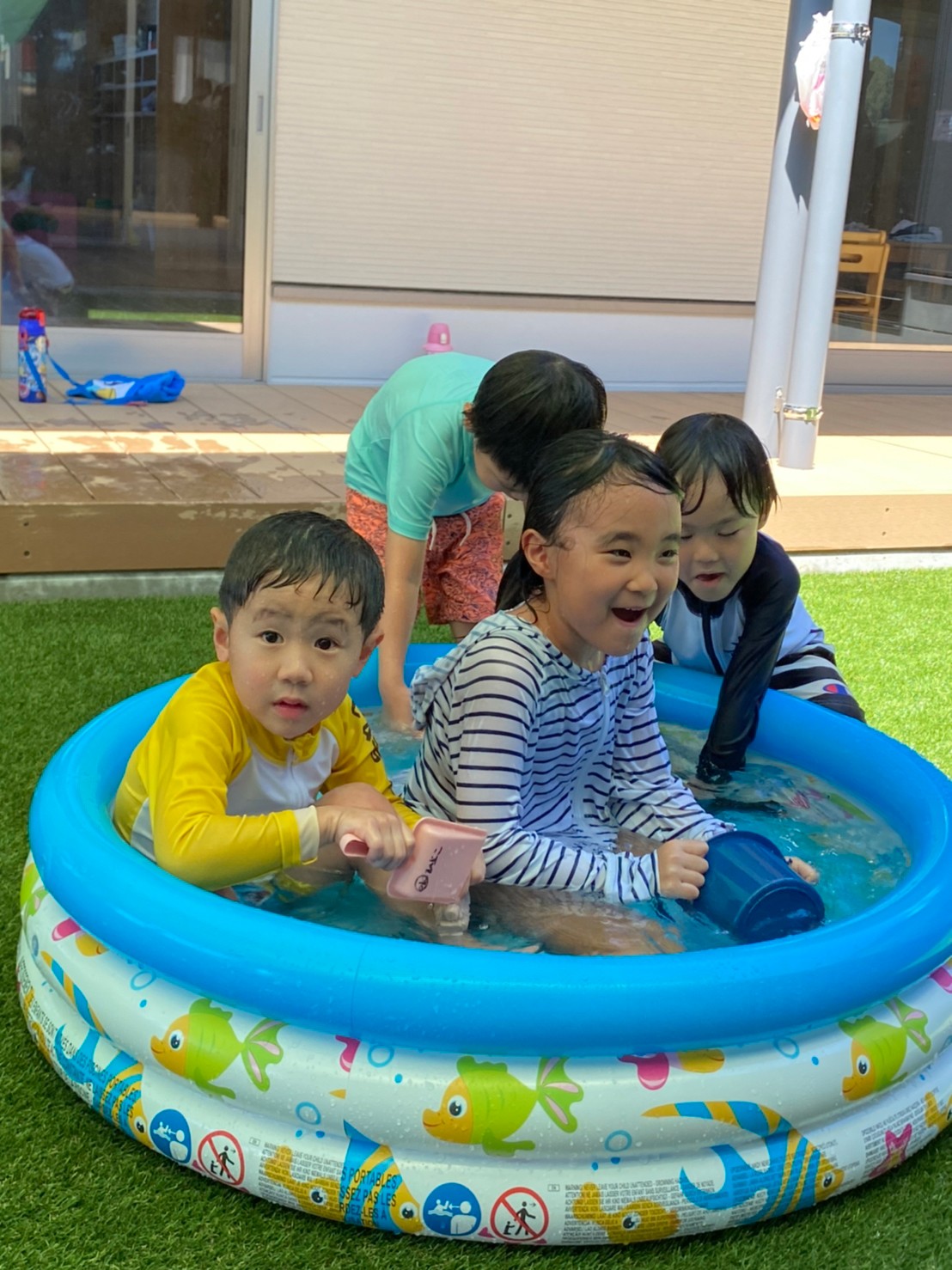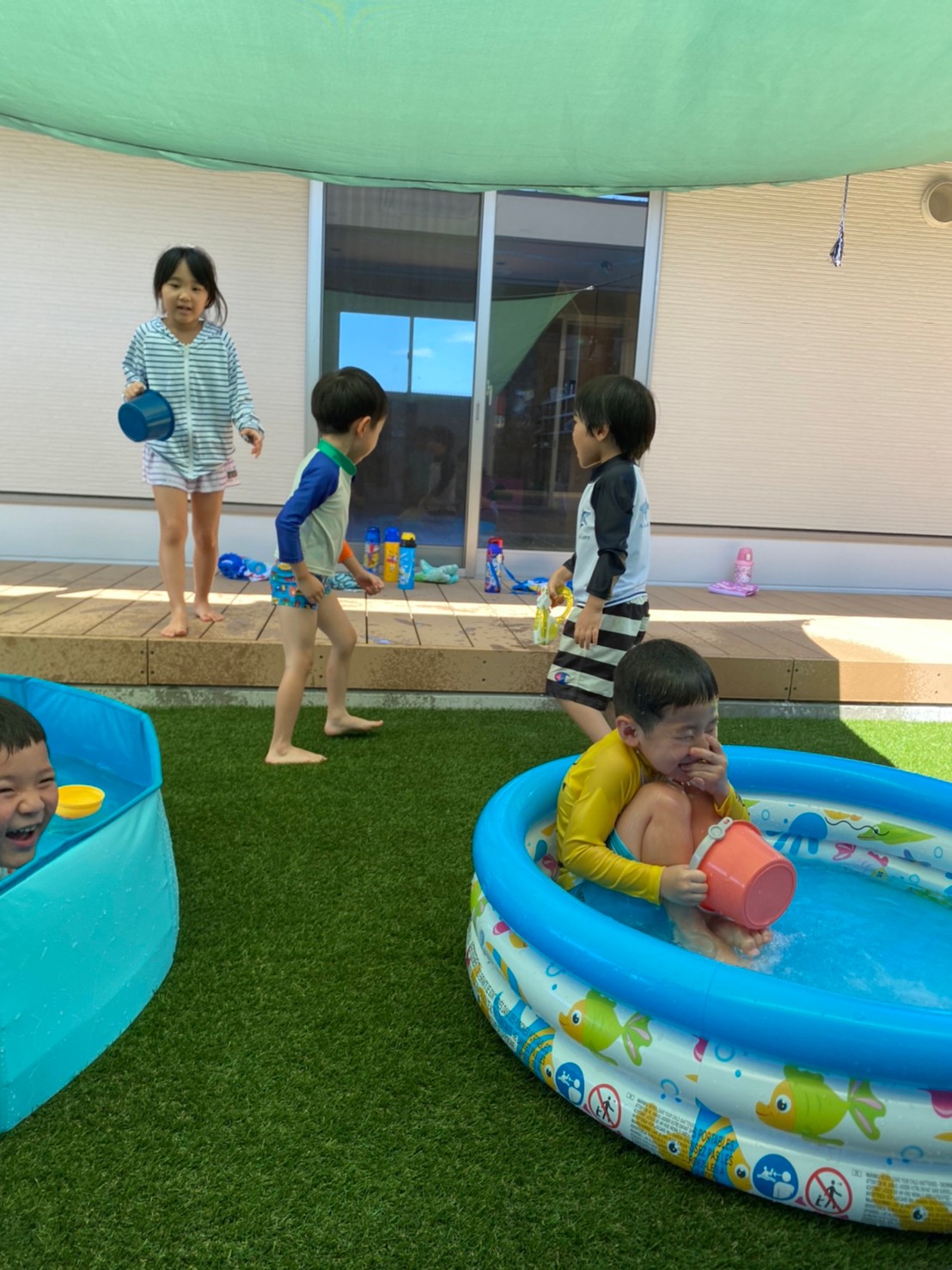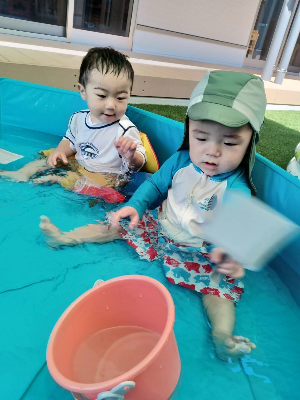 今日はプールの日でした!水遊びに少しずつ慣れてきて、水しぶきの中ではしゃいであそんでいました😆最初は泣いていた子も今日はプールに入ってニコニコ笑顔で楽しめました✌️良かったね💖