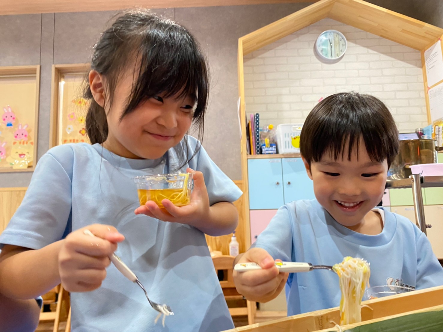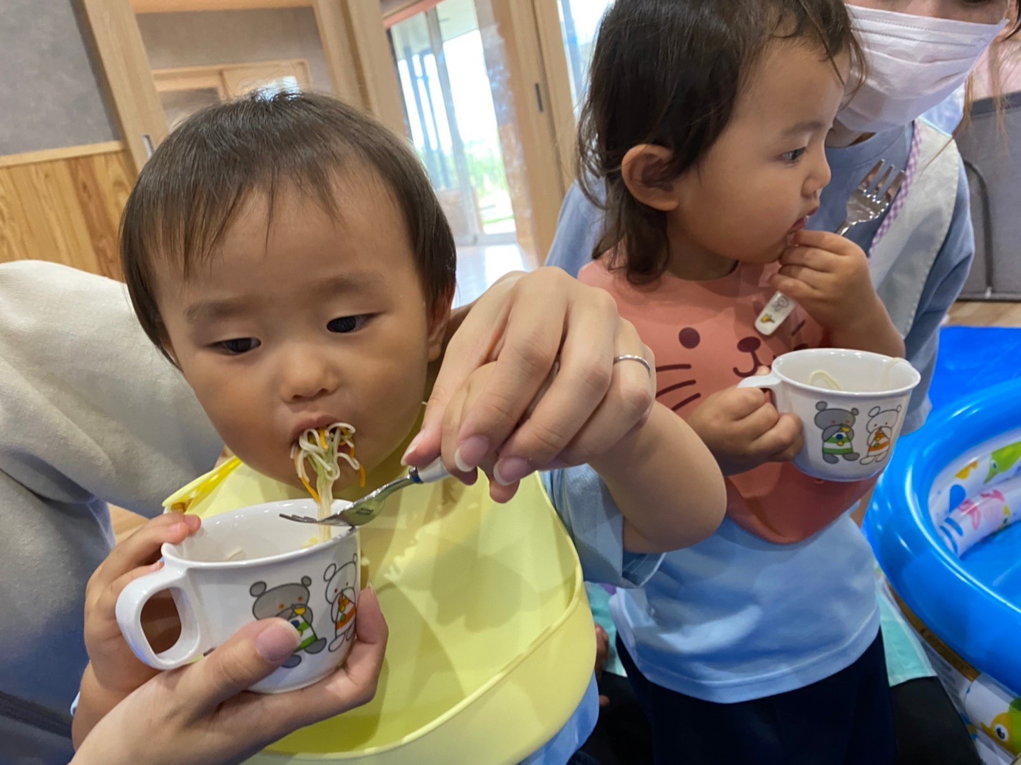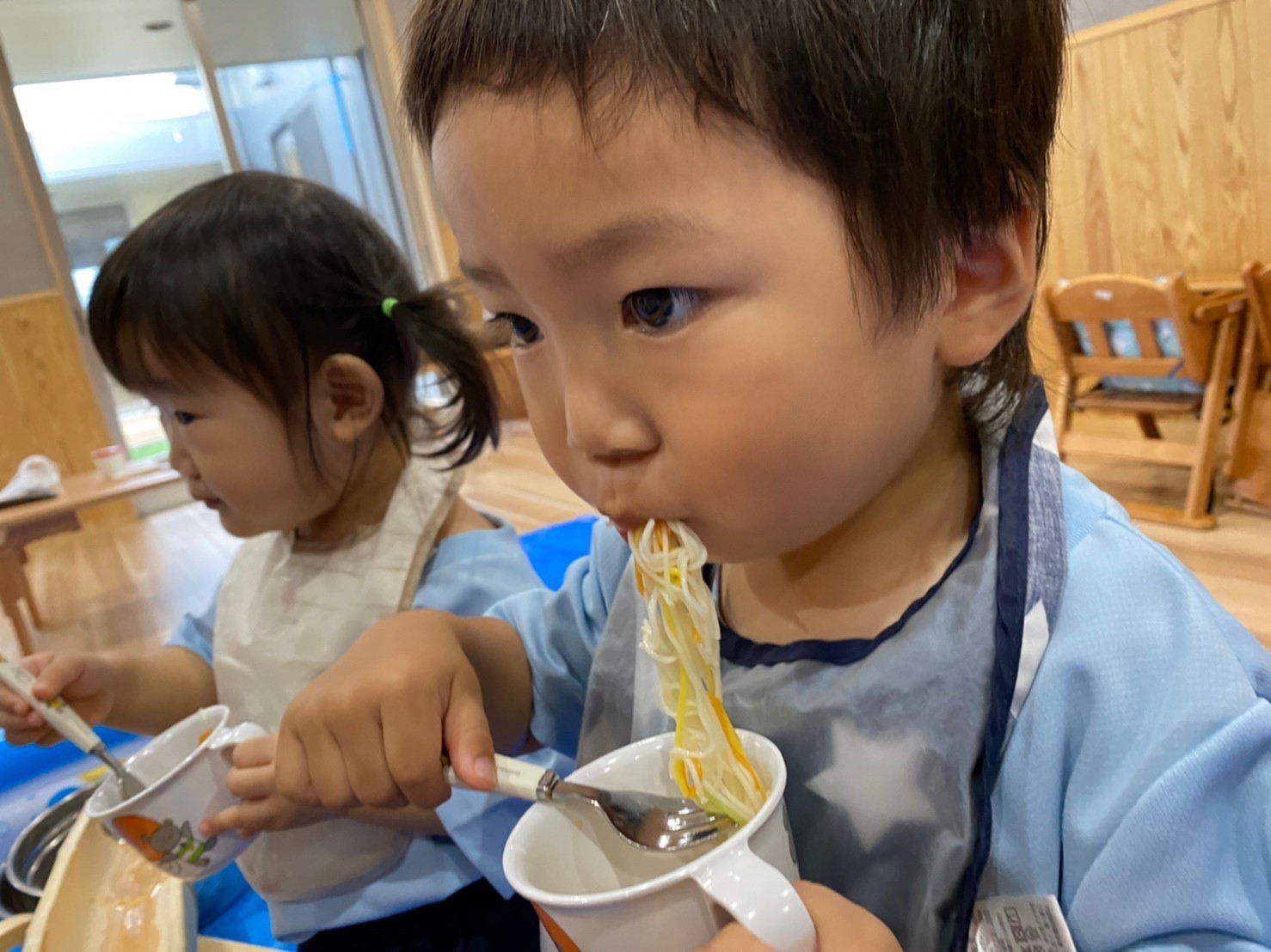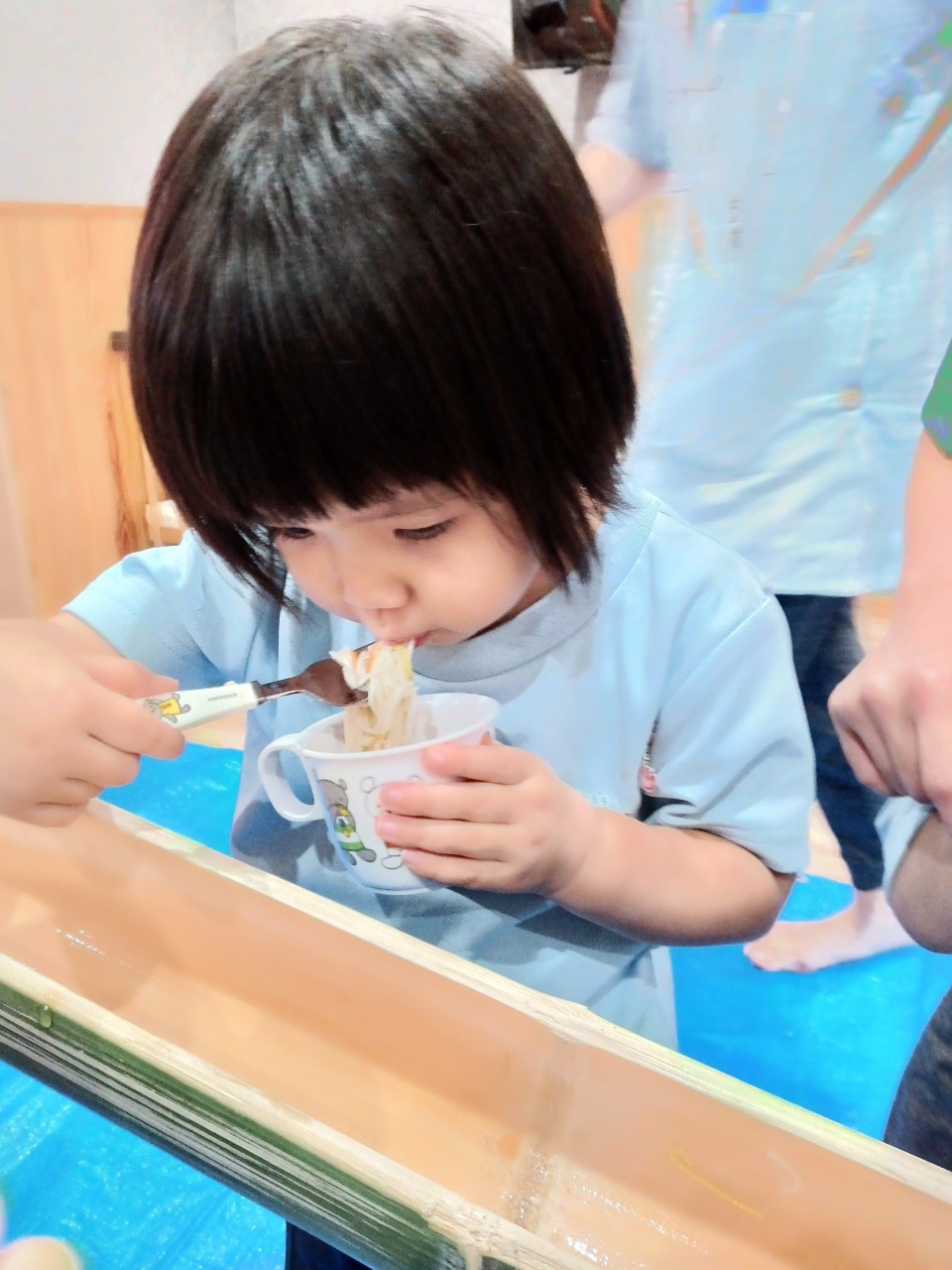 手慣れた手つきでおそうめんを取って、口一杯に食べていた以上児さんでした😋😋