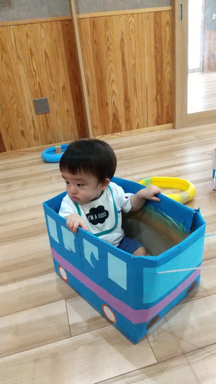 その後は段ボール車に乗って大きい組さんのお部屋まで室内ドライブをしました😆