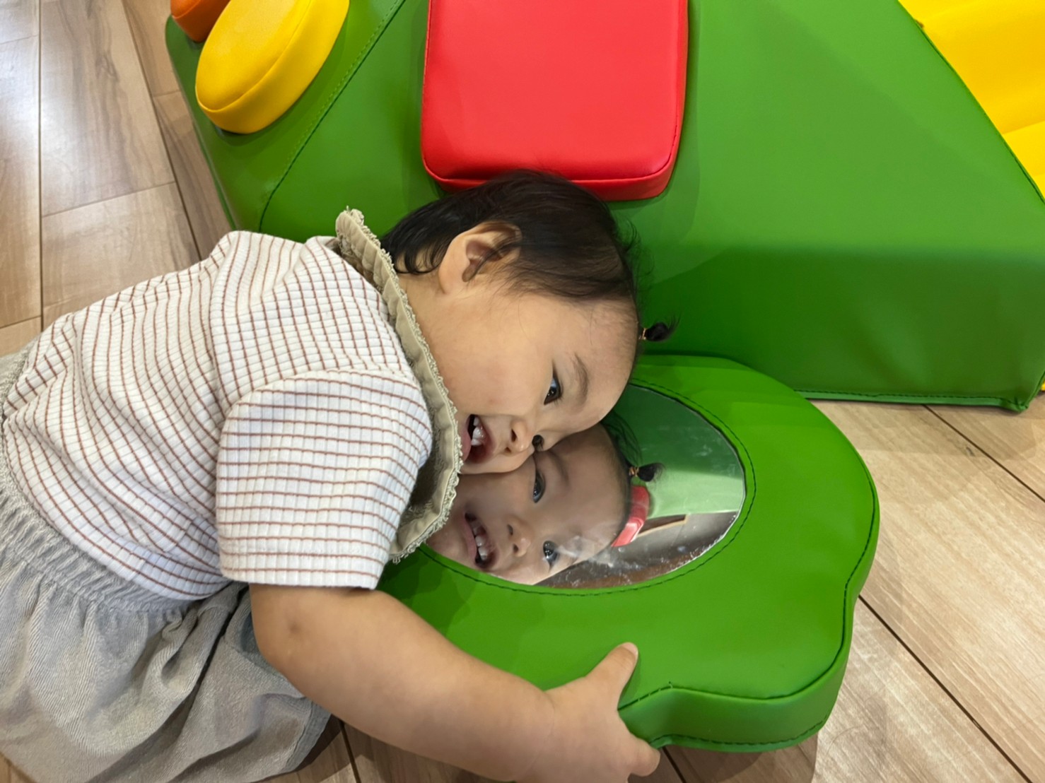 みんな大好きなカメさんの山で上手に滑り台をしたり、付いている鏡を楽しそうに眺めていました🐢✨