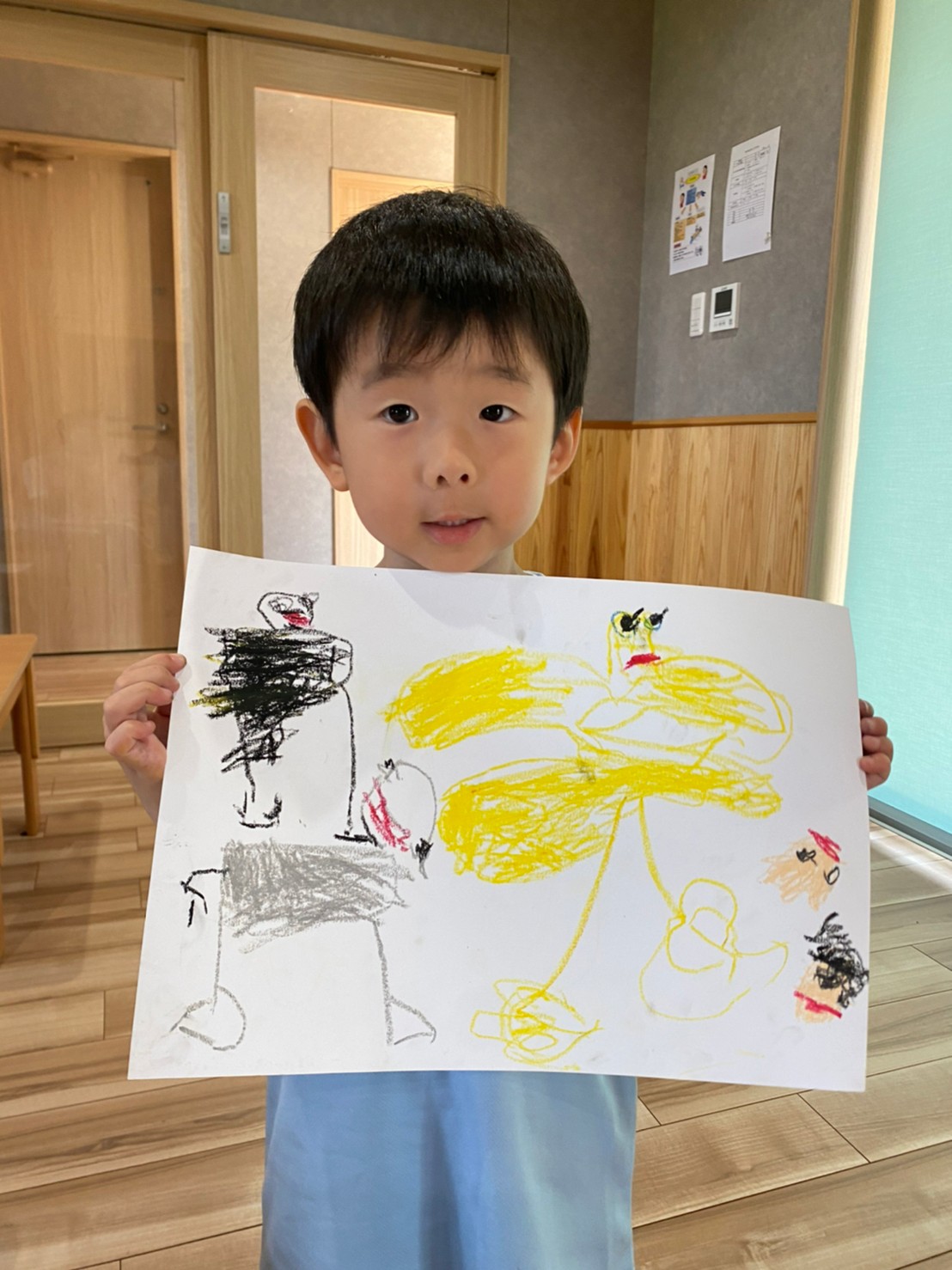 今日はうさぎ組のお友達が久しぶりに登園してきたので、連休の思い出がを描きました🖍✨