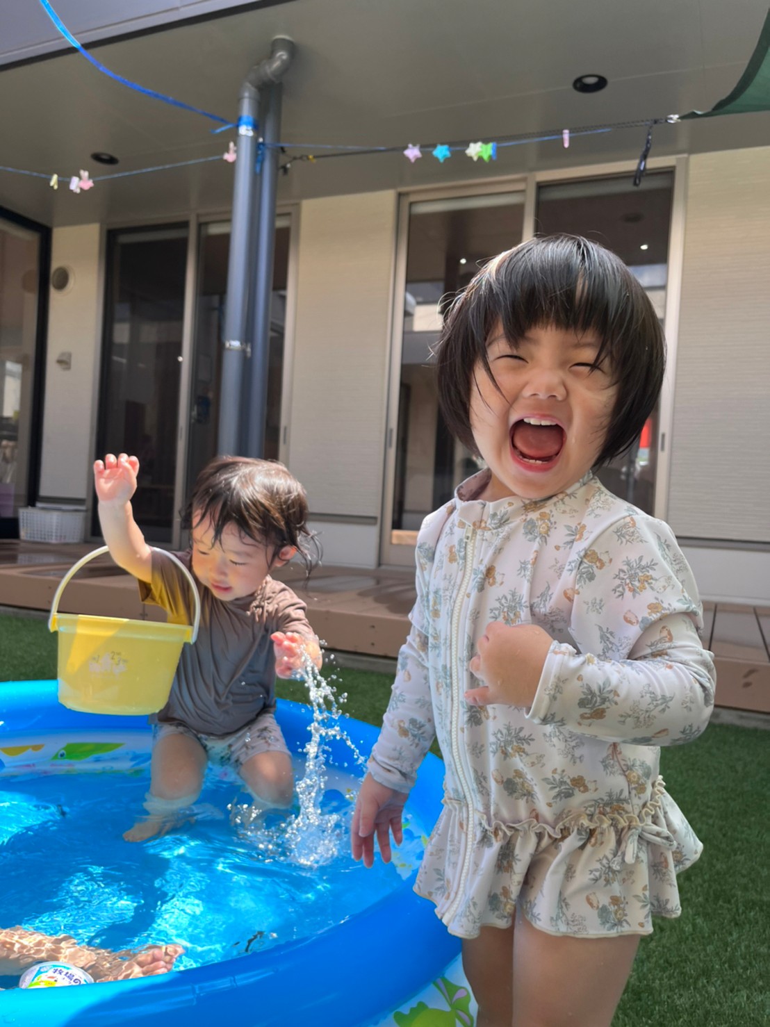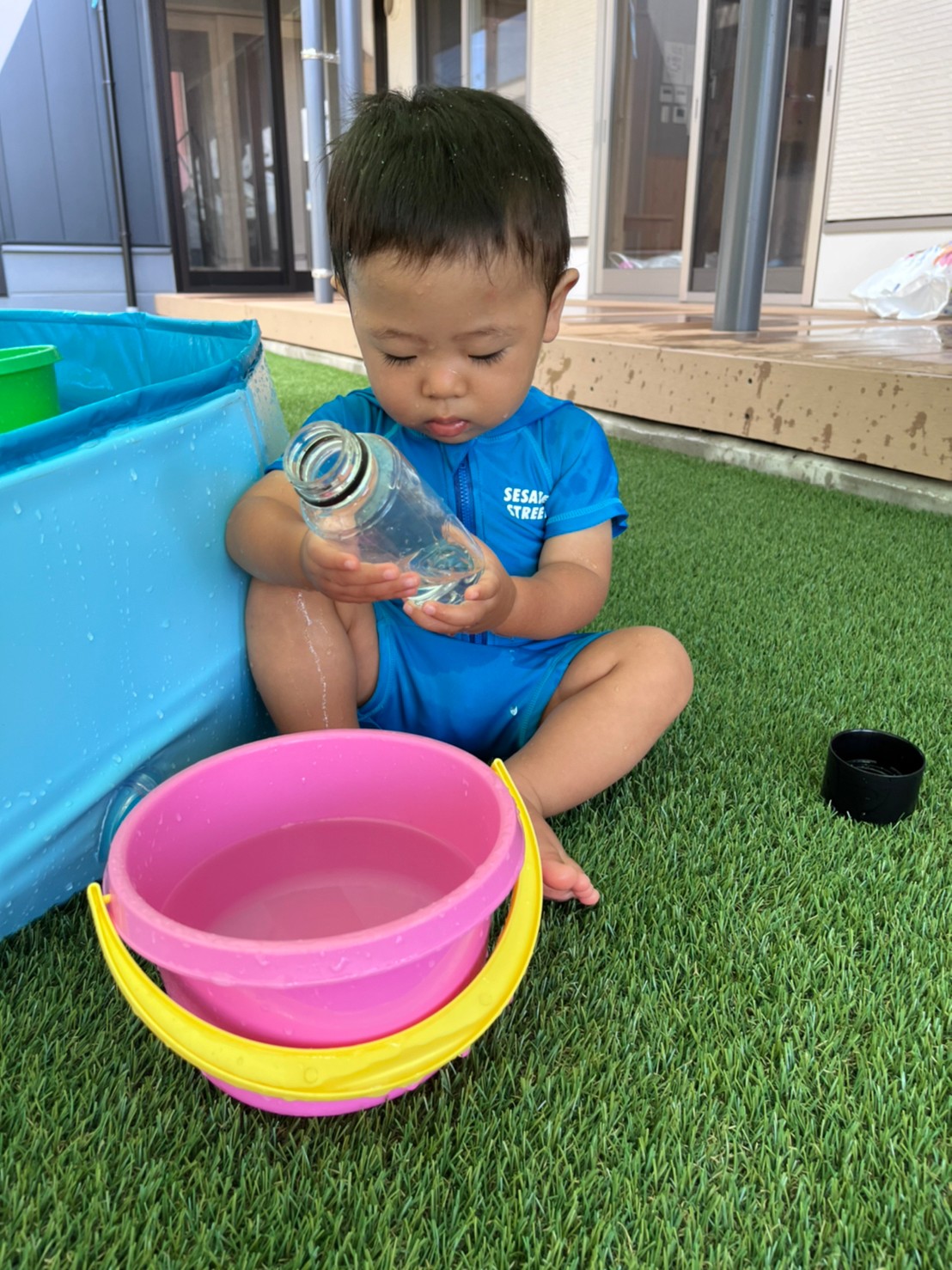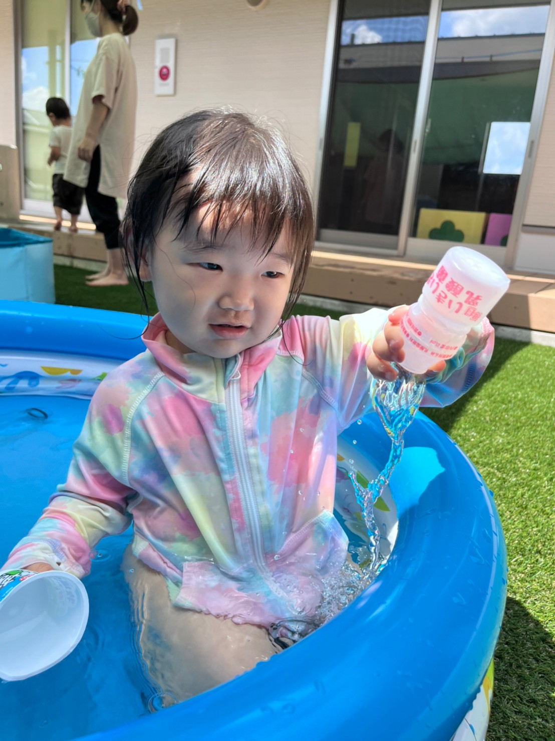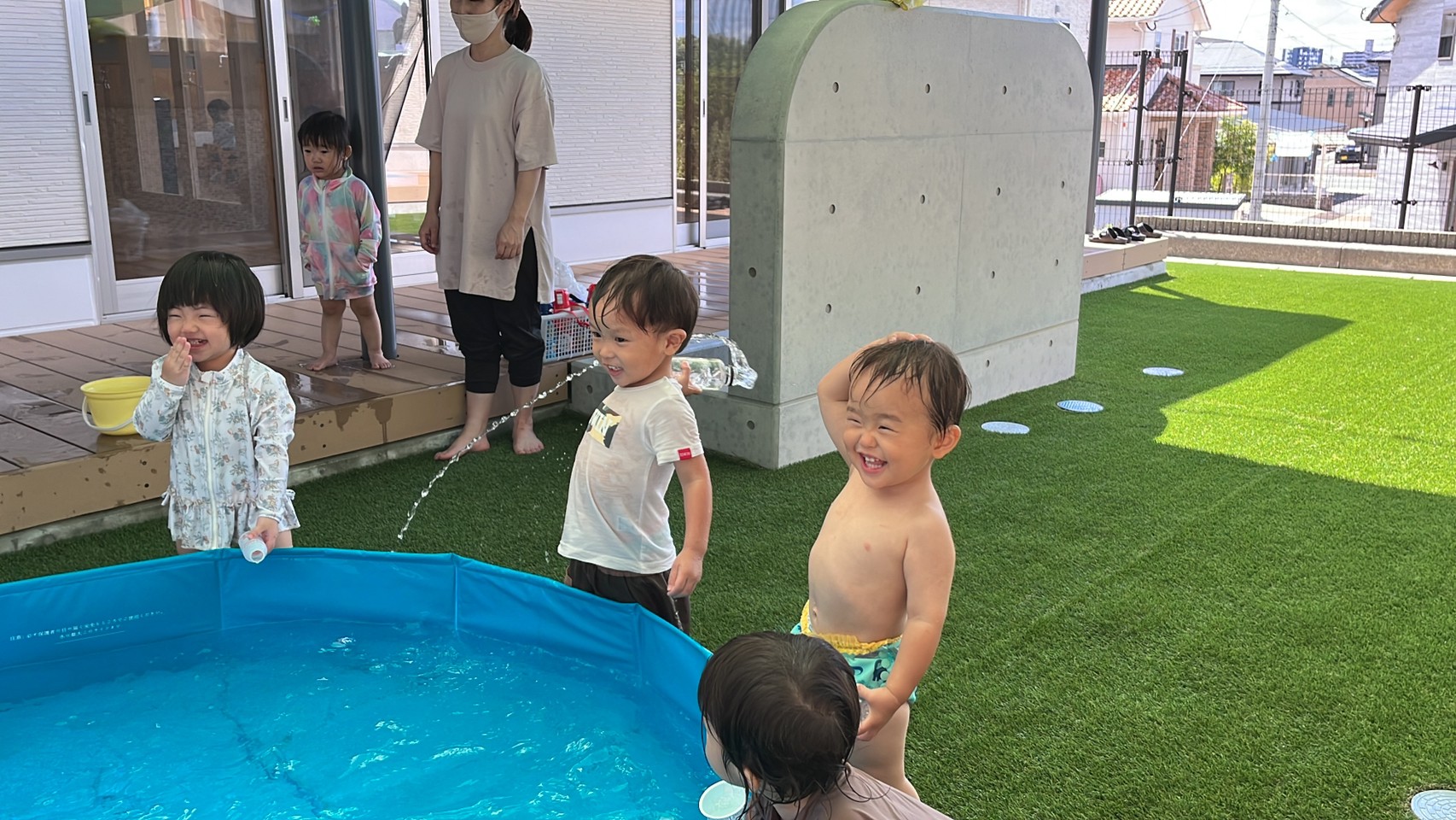 今日は水遊びをしました☀️バタ足を楽しんだり、バケツや容器を使って遊びました🤗保育者との水のかけあいも始まって、「えーい!」と水をかける姿が見られました☺️その後動物の絵本を見て、みんなで鳴き声を真似っこしたり、動物の名前を言ってゆっくりすごしました🐕🐈🐓🐖🦉言葉がどんどん出始めて、保育者やお友達に言葉で伝えているのを見て微笑ましく思います🥰ぱんだ🐼組