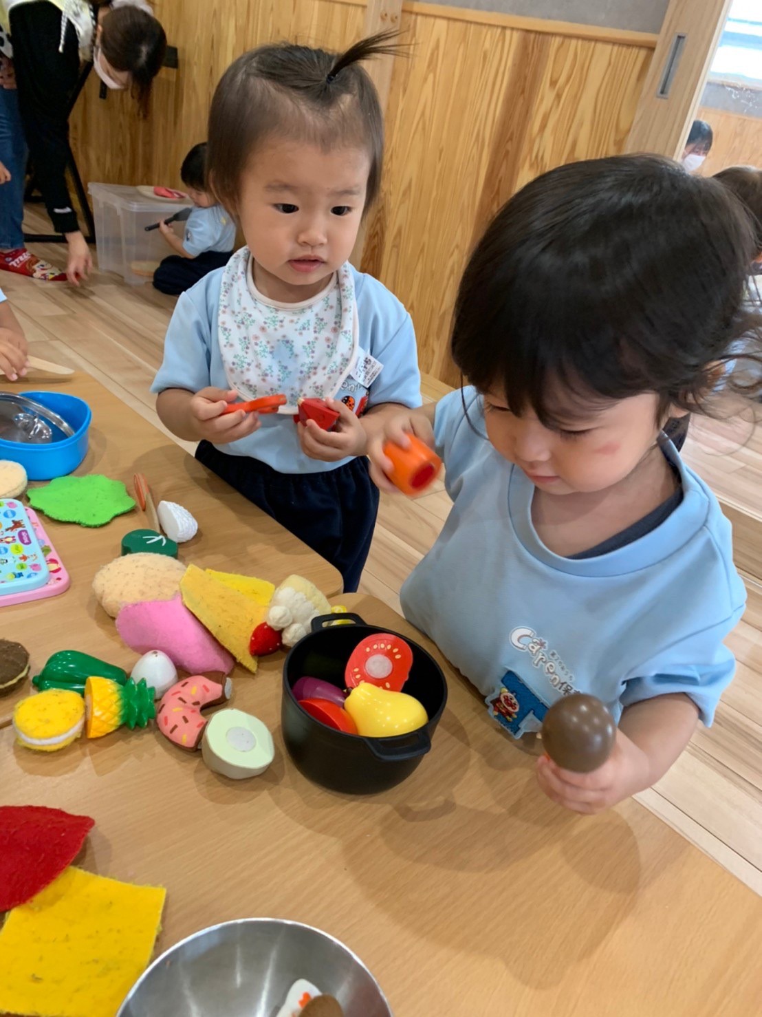 野菜の絵カードでは「にんじん!」「トマト!」などとたくさん声を出しながら楽しむ姿が見られましたよ🥰