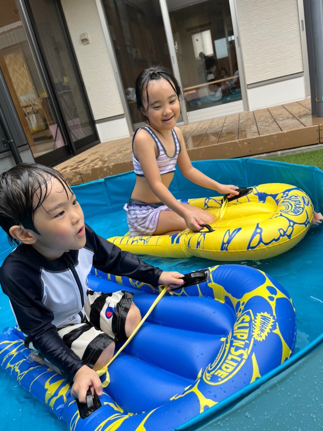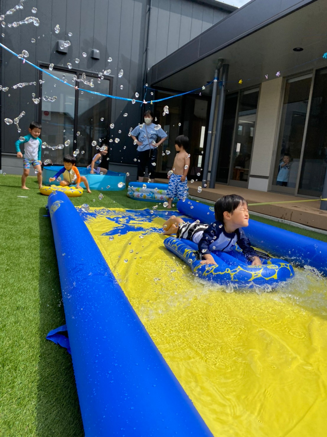 今日は新しい水遊びマットを使って楽しみました⭐️