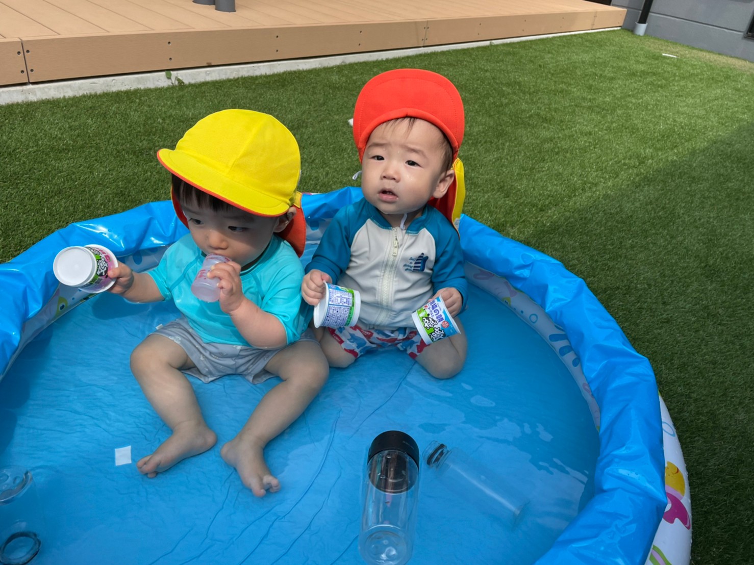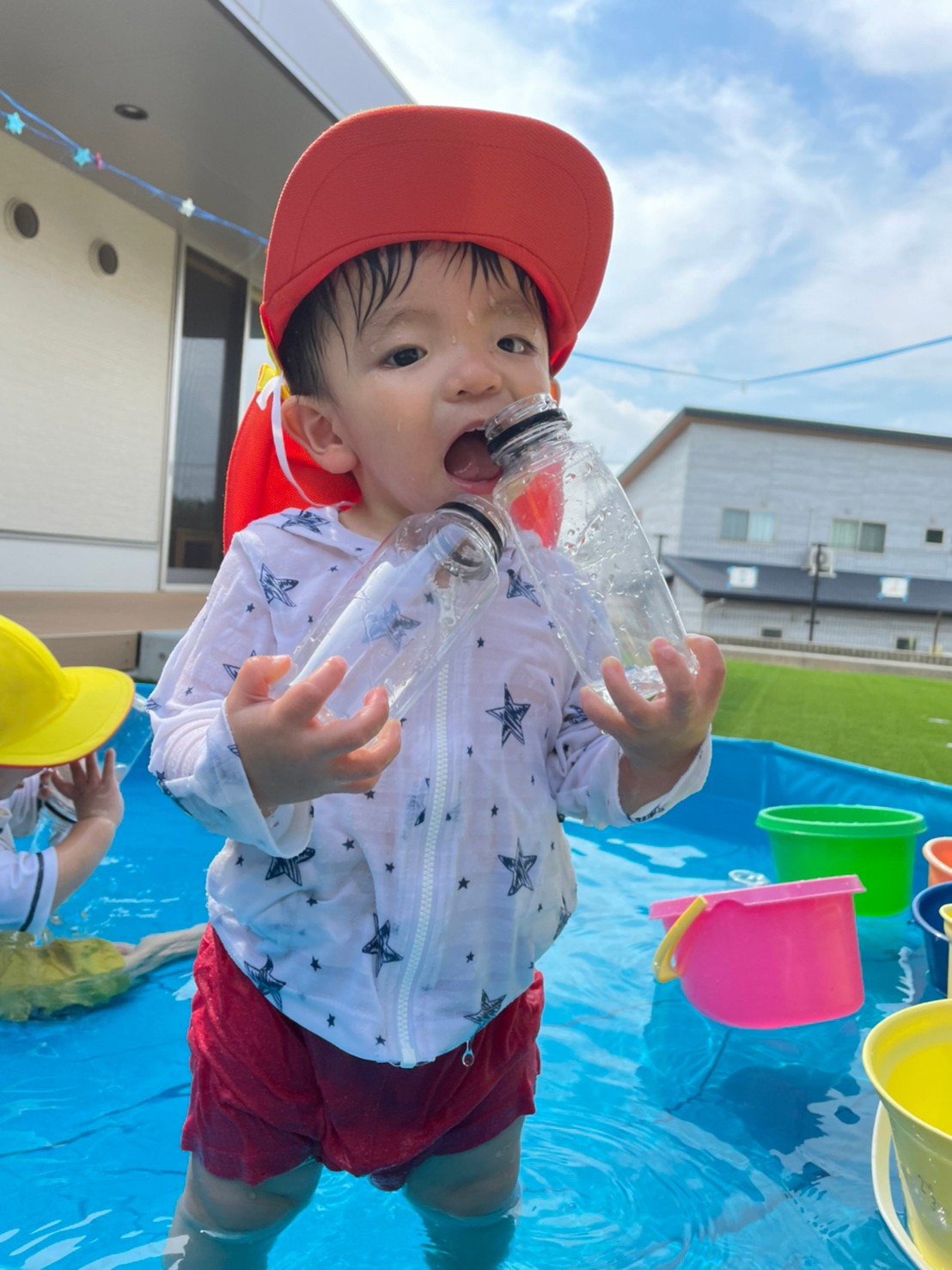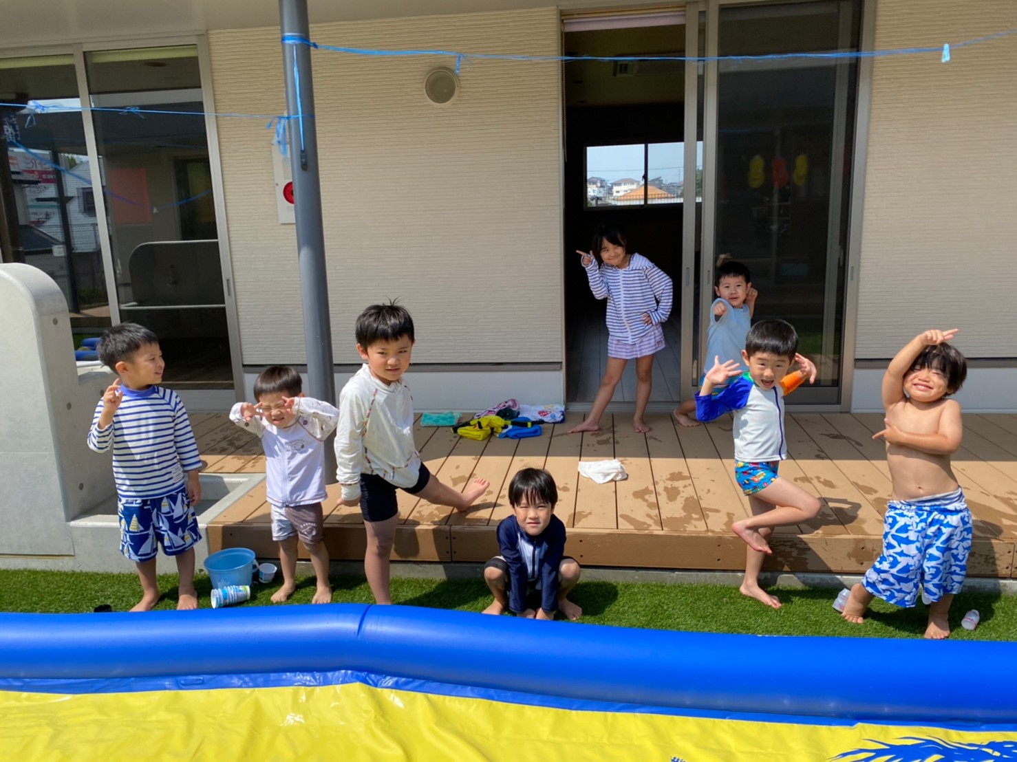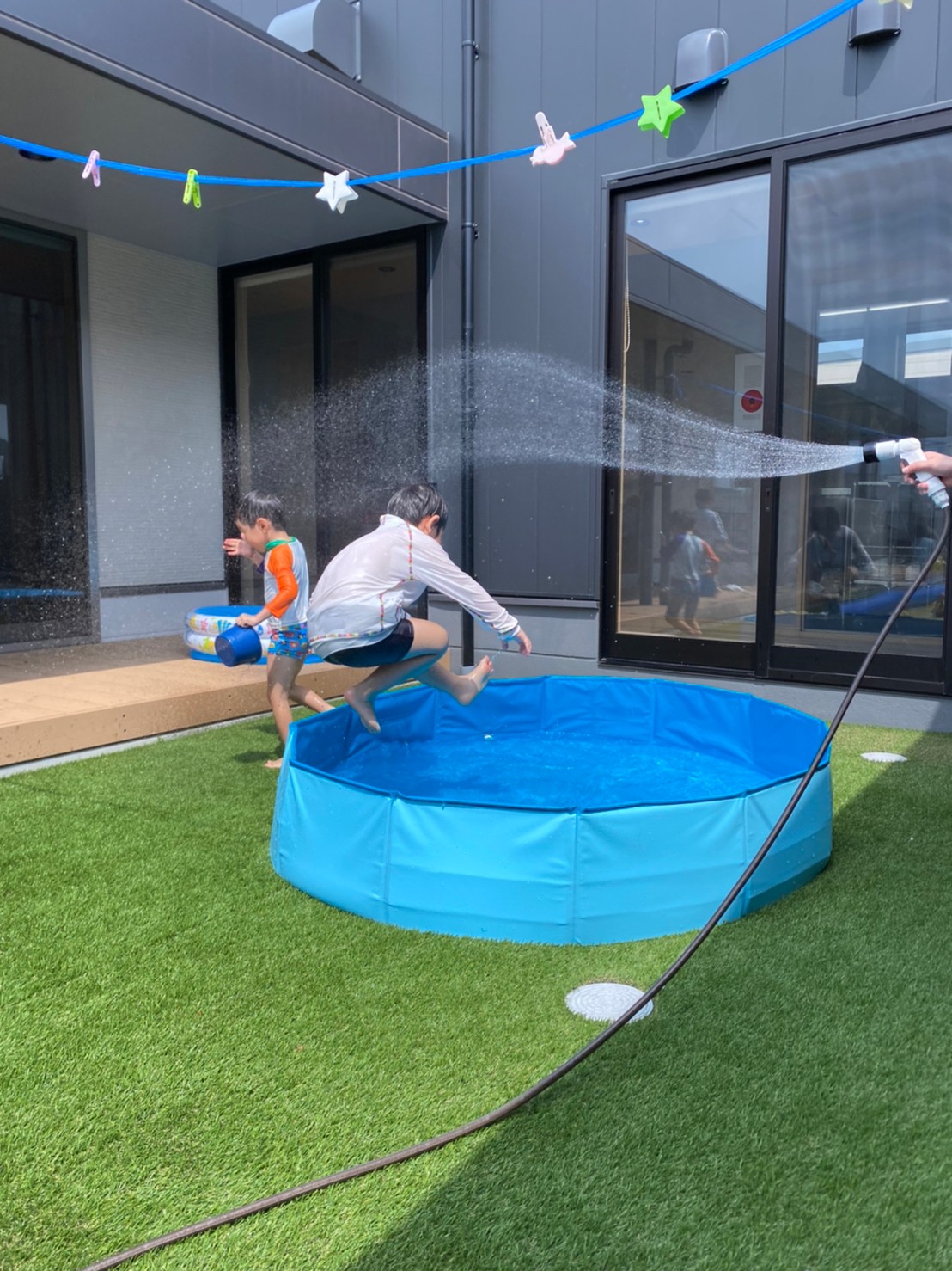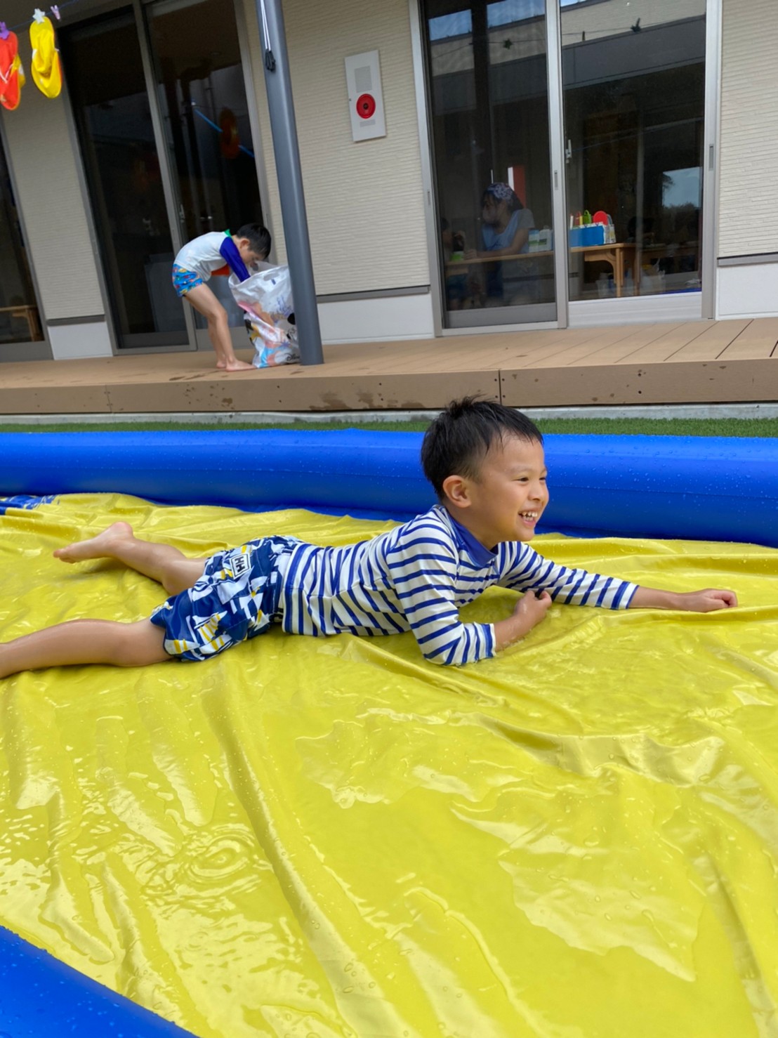 今日は今年最後の水遊びの日でした😌大きいプールに入ったり、小さいプールに入ったり、シャワーの水を手で触ったりと、一人一人が楽しく遊ぶ姿が見られました☺️最後だったので、保育者に支えられながらスライダーにも乗せてもらったりと思い出に残る水遊びになりました🙂まだ暑い日が続いているので、水分補給もこまめにしていきながら水遊びや室内遊びを楽しむ事ができました🎶
