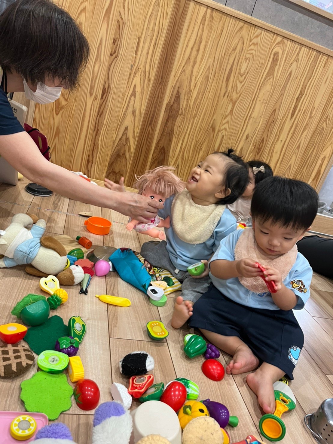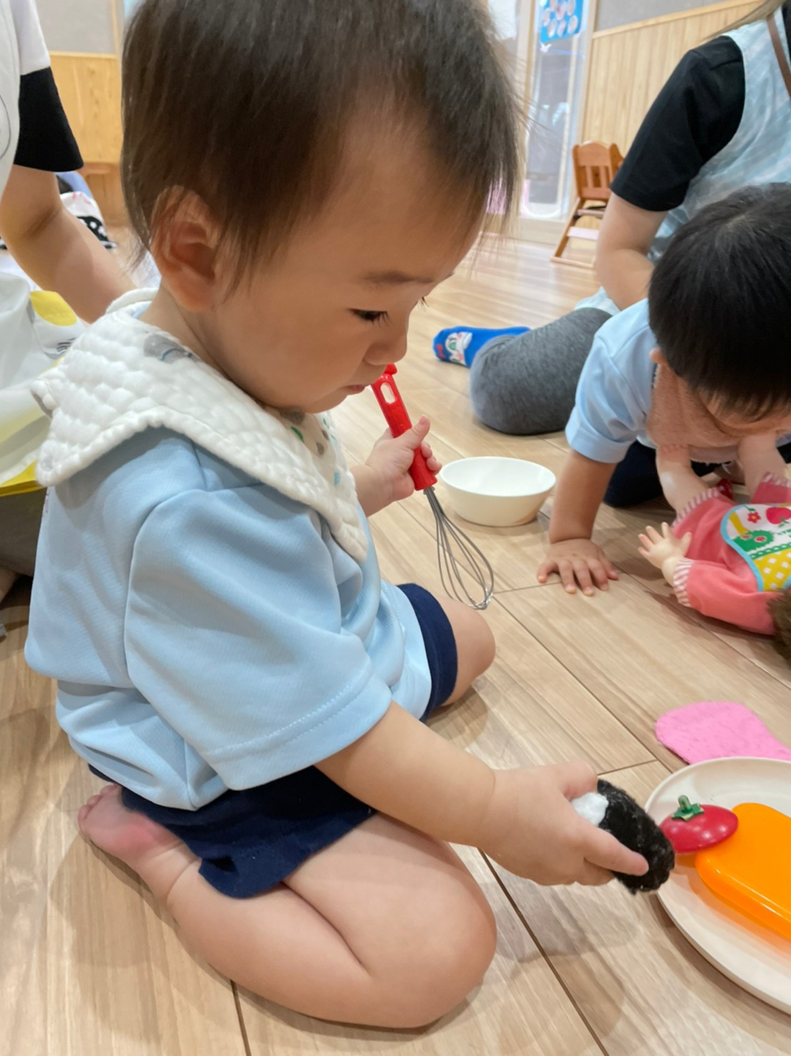 それから、ままごと遊びもしました!ごちそうを作ったり、「どうぞ」「おいしいね💞」などと保育者とのやりとりも楽しみました💖