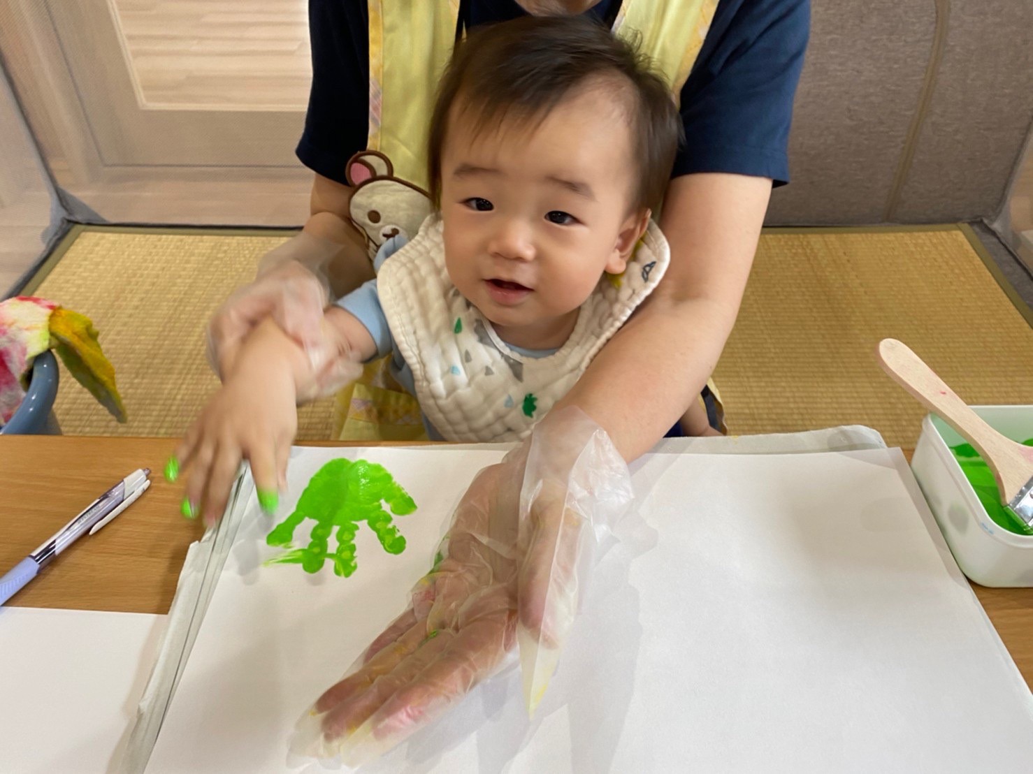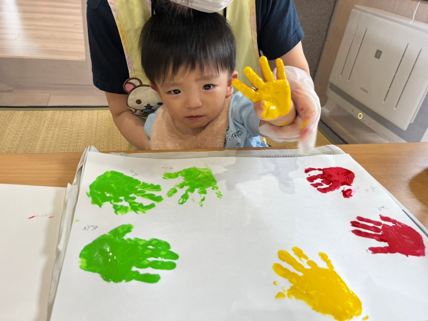 に不思議そうな表情でした😁ペッタン〜とかわいい手形ができめした✌️✨