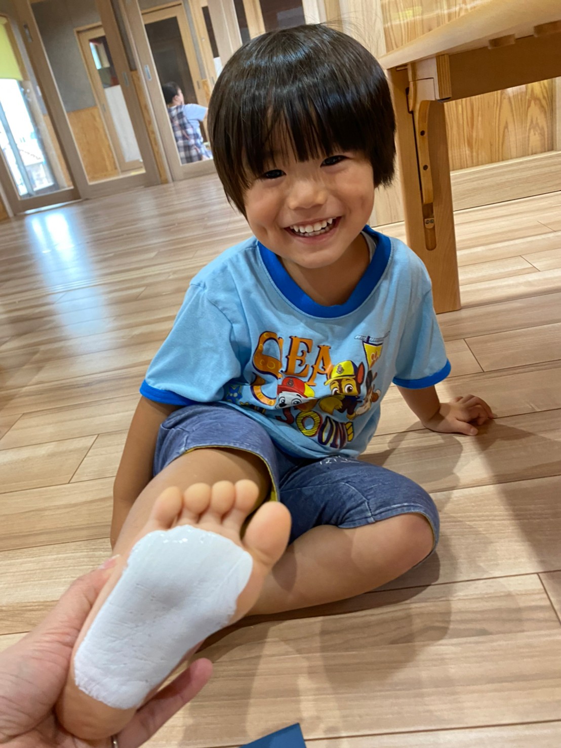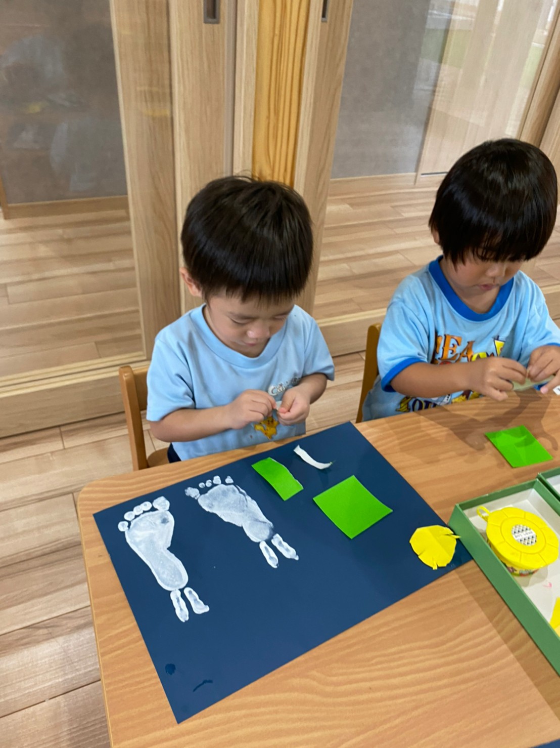 絵の具を足に塗ると「冷た〜い!!」と言ったり、「くすぐったい🤣!」と楽しそうな声が聞こえてきました❤️