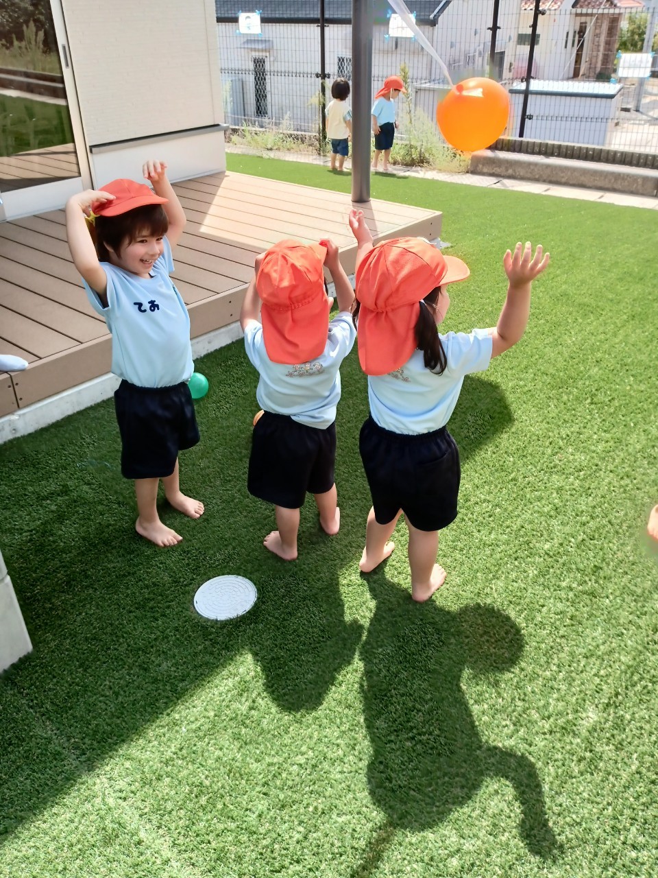 今日も風が強かったので洗濯紐に風船(風船)をつけると風になびく風船を一生懸命にとろうとみんな夢中でした😄。
