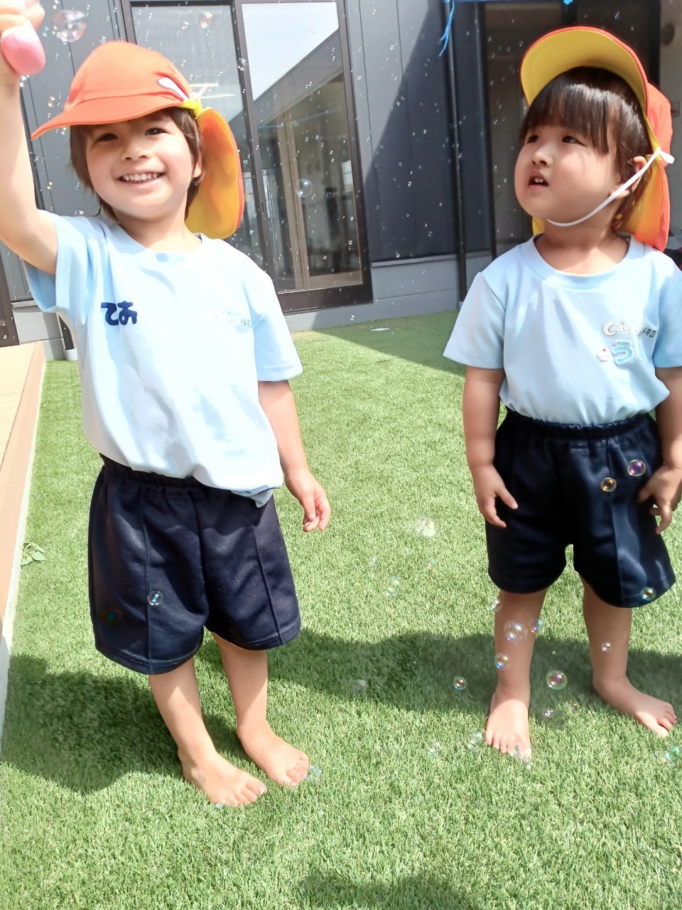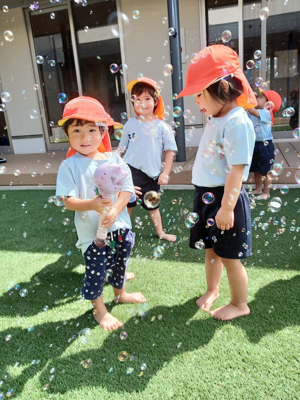 今日は園庭で沢山体を動かして遊びました☺️手動式しゃぼん玉を上手に操作して沢山出てくるしゃぼん玉に大興奮な子どもたちでした☘️