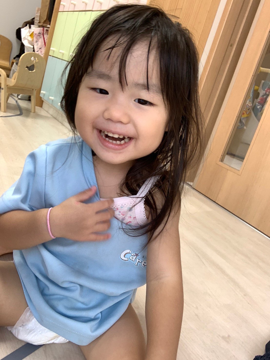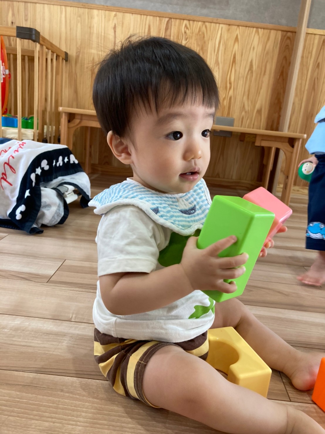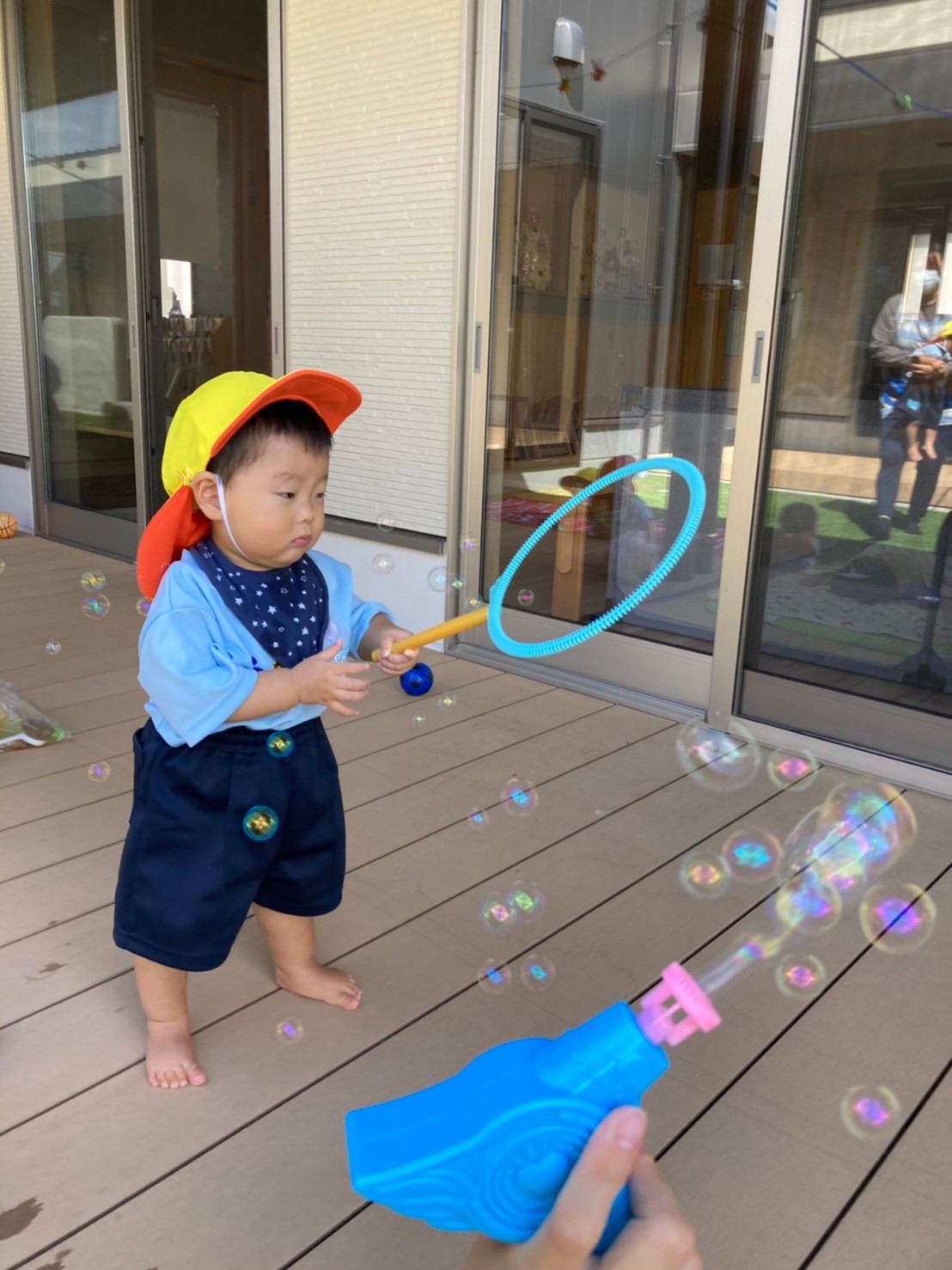 今日は室内と屋内でのびのび遊びました。お外ではシャボン玉を追いかけたりボールを投げたりしました。泣いてた子もお外の気持ちよさに笑顔になりました。お部屋ではカメのプレイマットで階段を登ったり上から滑ったりしました😊たくさん体を動かしたので給食も午睡もスムーズに進みました😊🐿りす組🐿