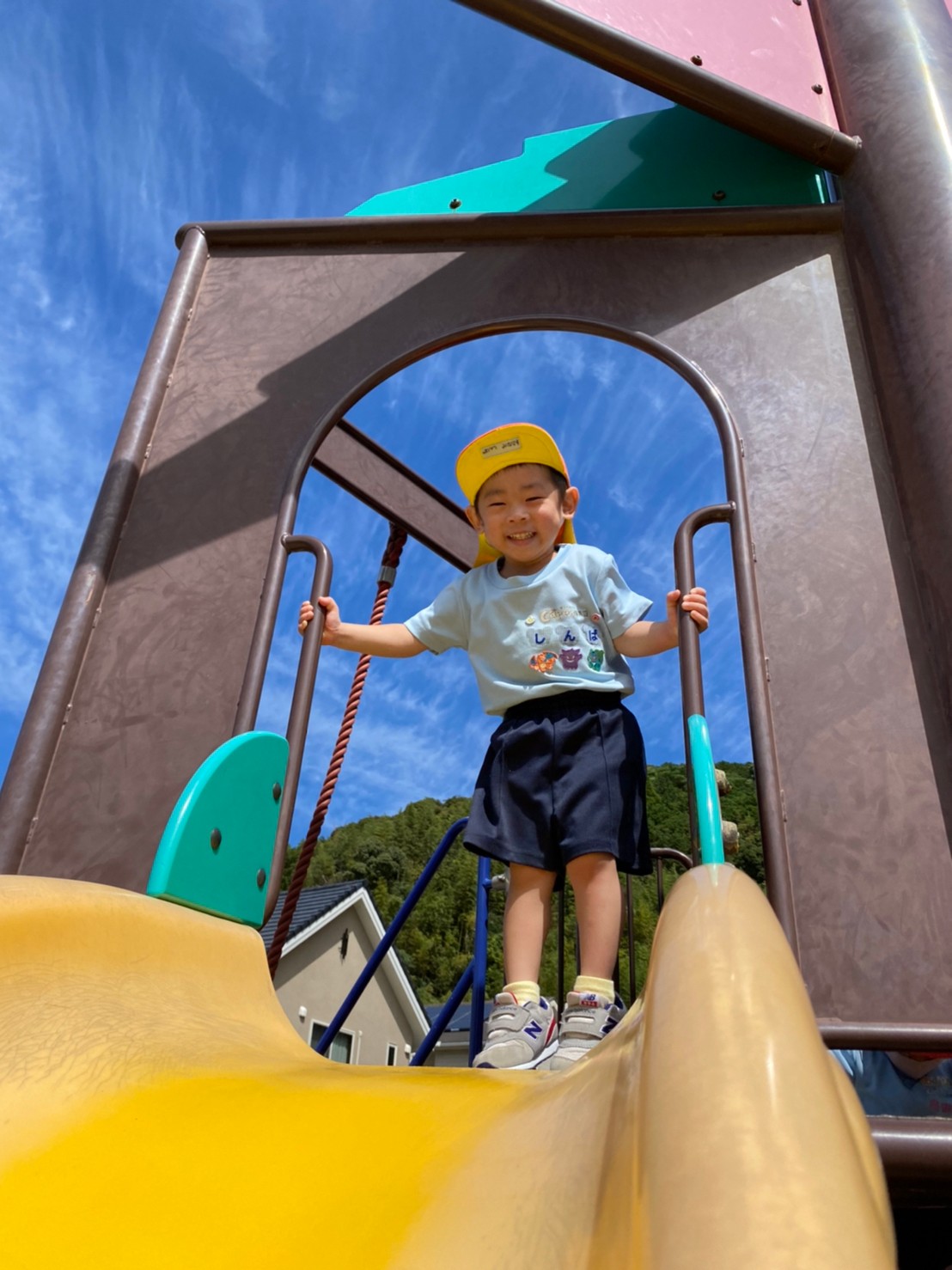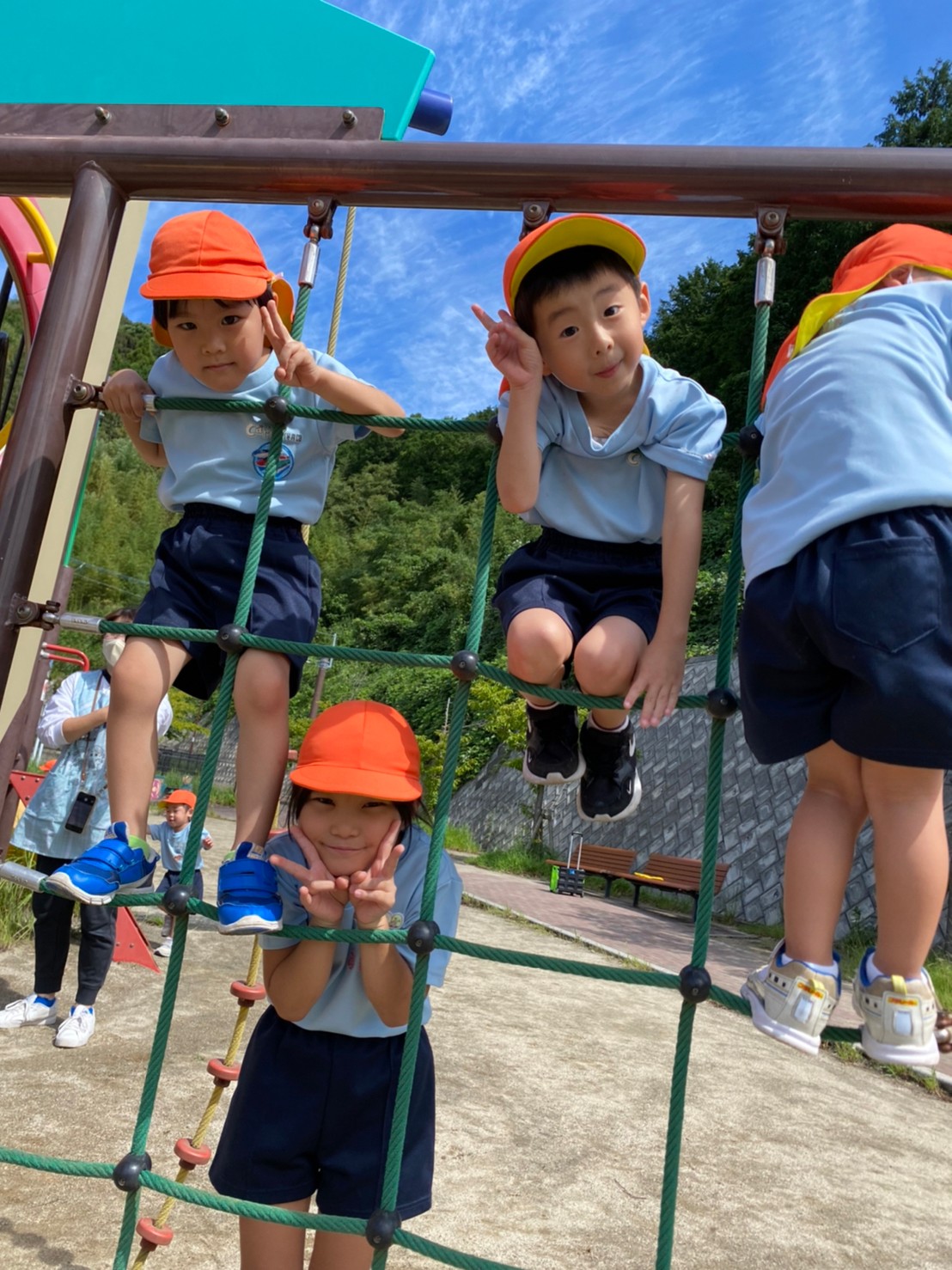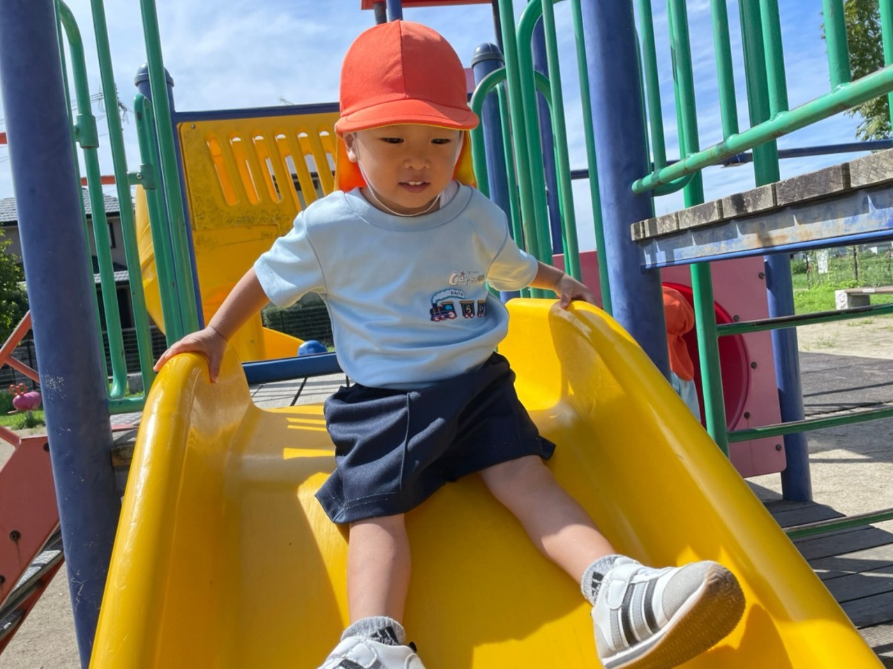 久しぶりに、くりえいとふれあい公園までお散歩に行きました🎶遊ぶ前に遊具であそぶルールをお話すると、上手に順番を守っていましたよ☺️すべり台・スプリング遊具・てつぼう・トンネルなどで思い思いに遊んでいました🥰歩きながら「とんぼのうた」を歌っていると、本当にトンボが飛んできて嬉しそうに手を振る子ども達でした✨ぱんだ🐼ぐみ