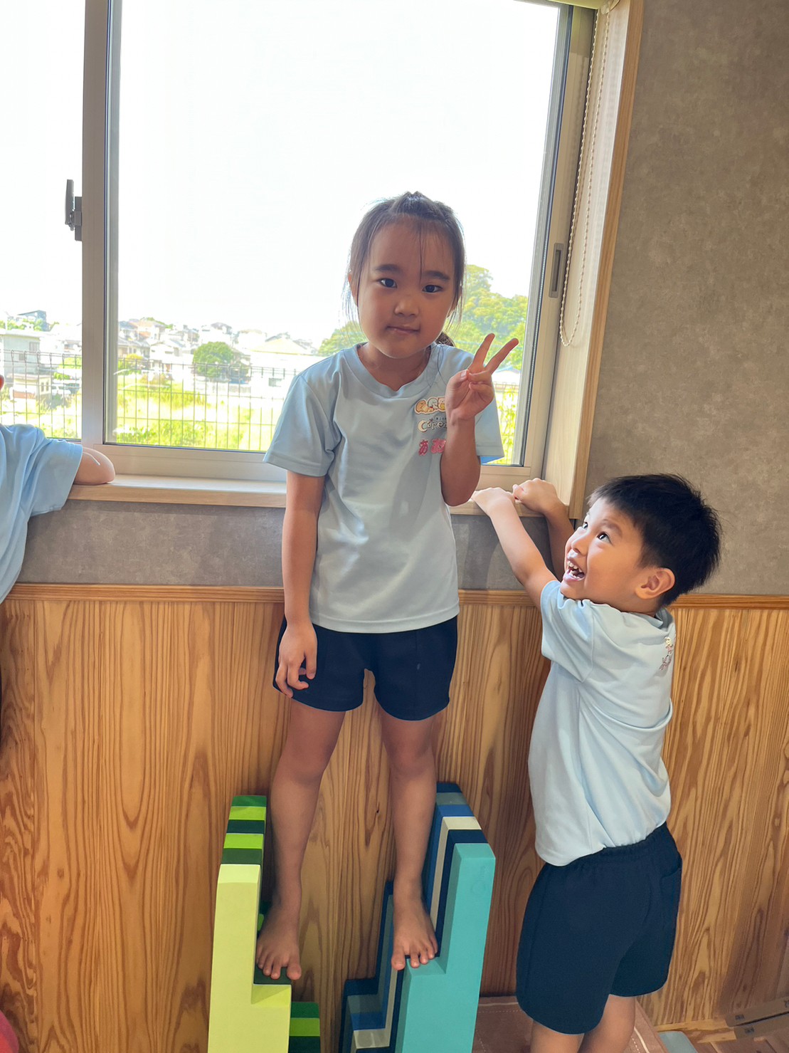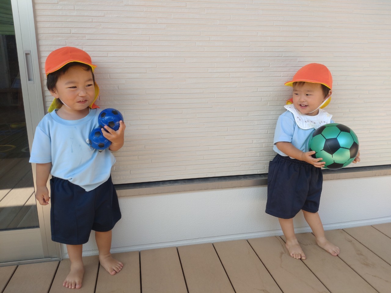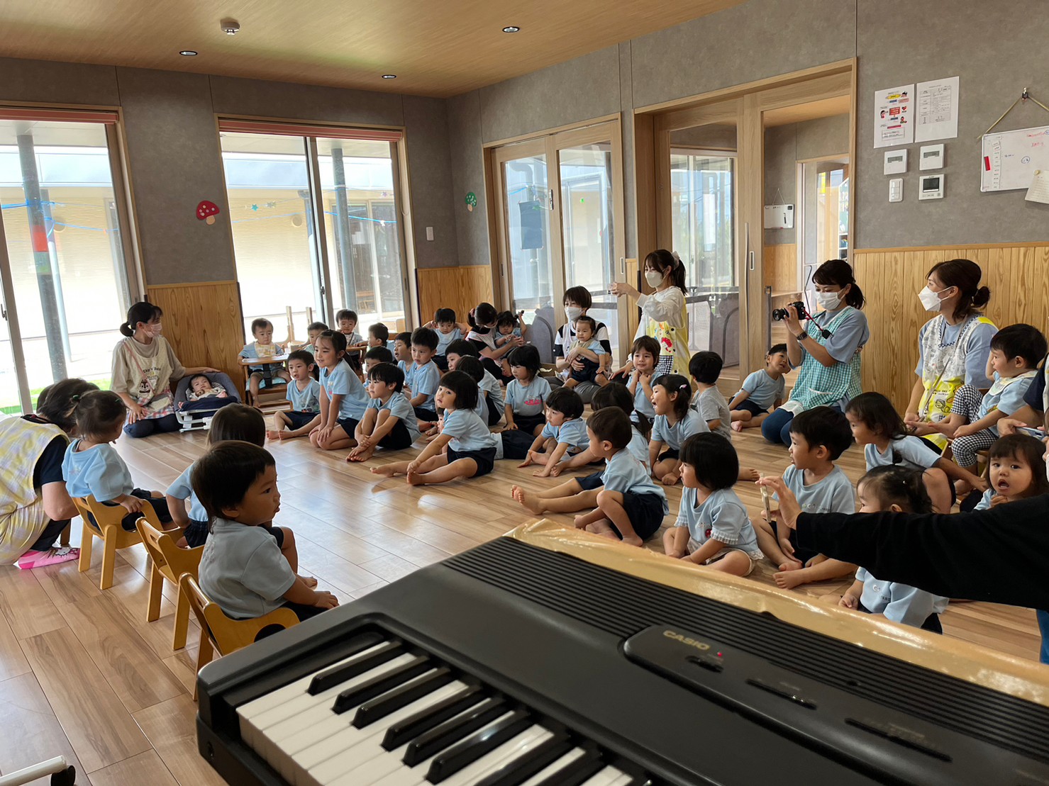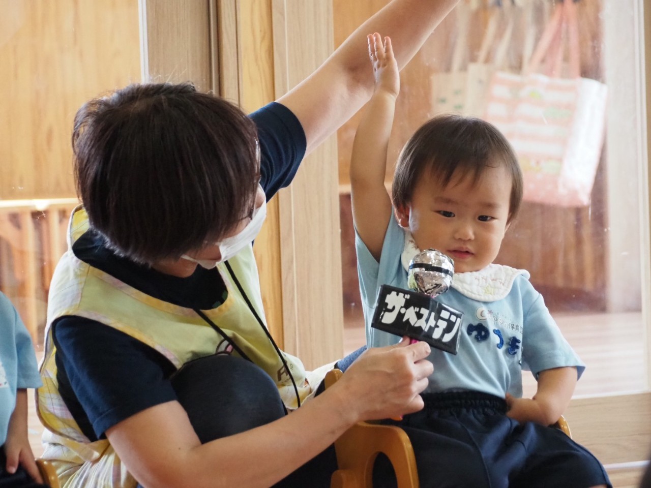 誕生児のお友だちは初め緊張していましたが、みんなに祝ってもらい可愛い笑顔が出ていました🥰職員の出し物では、手拍子したり一緒に歌ったりして、どの子も集中して見ていましたよ🎶その後は園庭で遊びました✨日差しが強かったのでタープで日陰を作って、しゃぼん玉やボール、ラダーで思い思いに遊びました☺️ぱんだ🐼