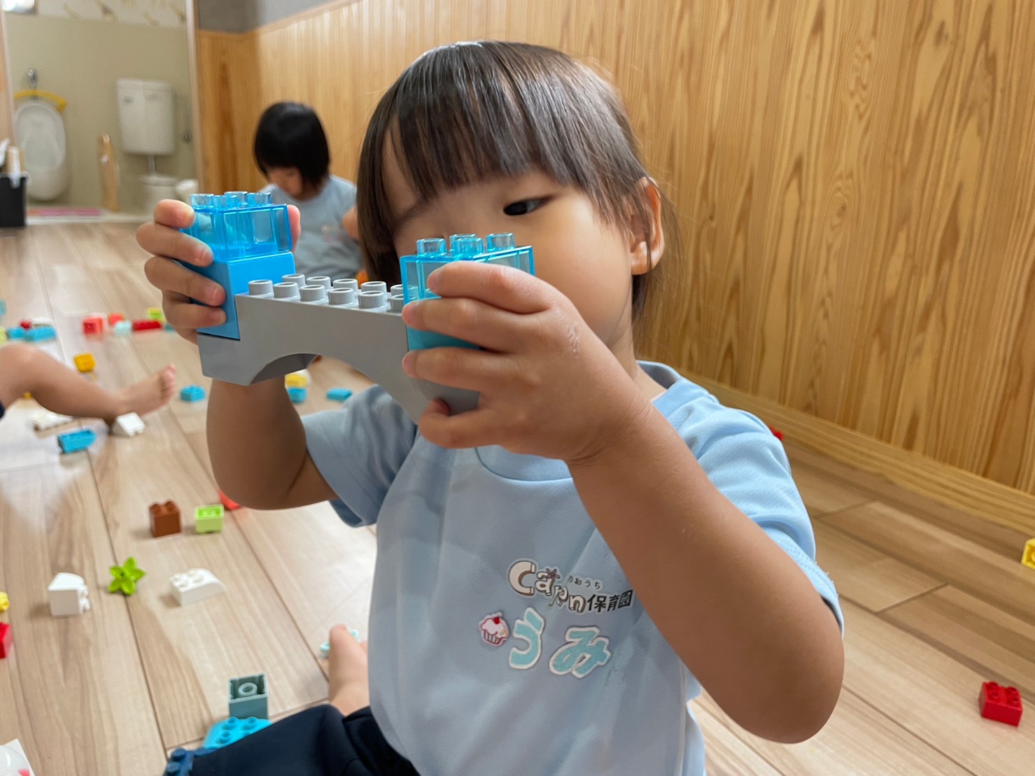 ブロック遊びでは、見立て遊びが上手になり「いらっしゃいませー」「こっちもあるよ?」など、お友達同士で言葉を使って関わりを楽しむ様子が活発になってきました❤️