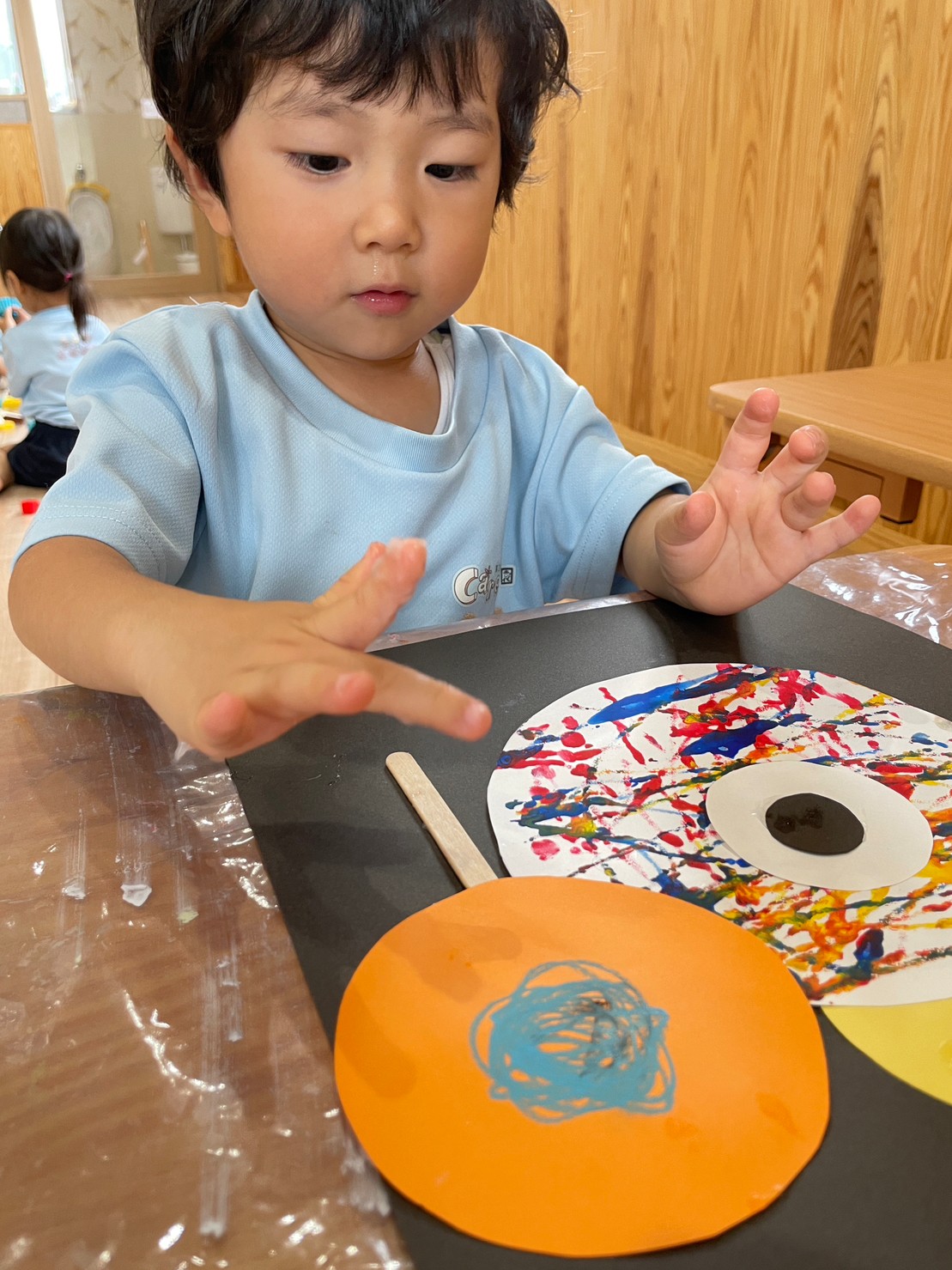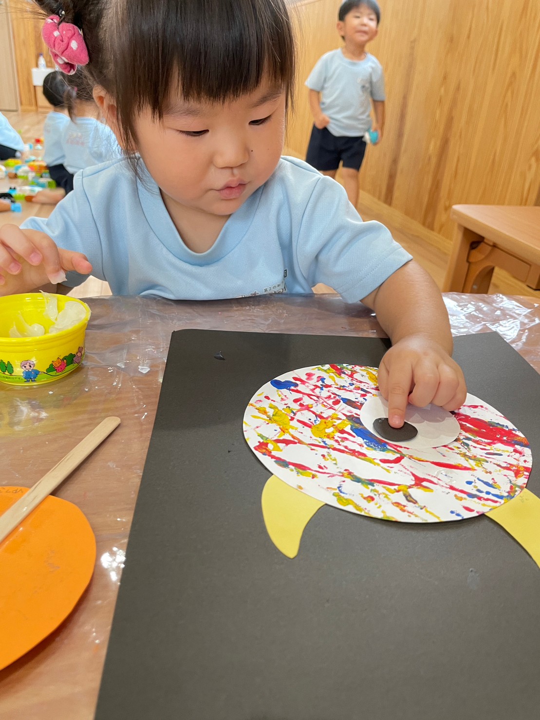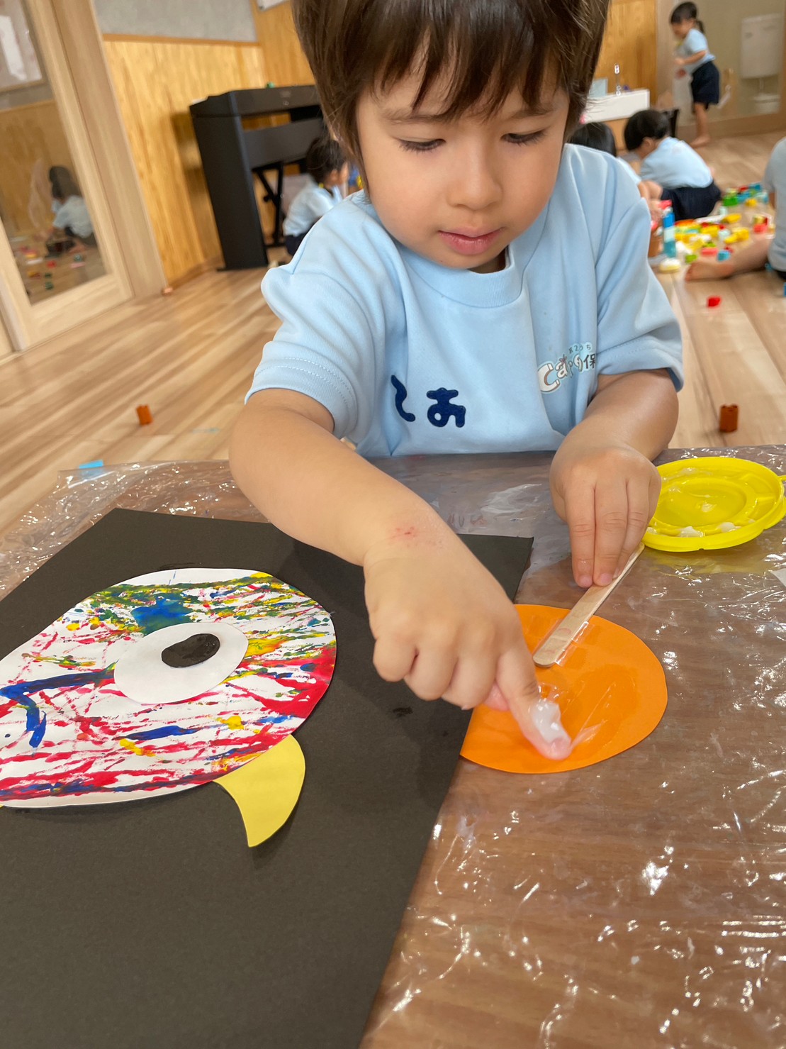 仕上がったものを見せながら、好きなように体や目を貼るように伝えると、各々可愛いモンスターが出来ていました👻
