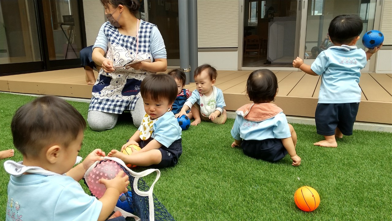 その後は園庭に出て、外気浴やボール遊びをして元気いっぱい過ごしました💖😊りす組🐿