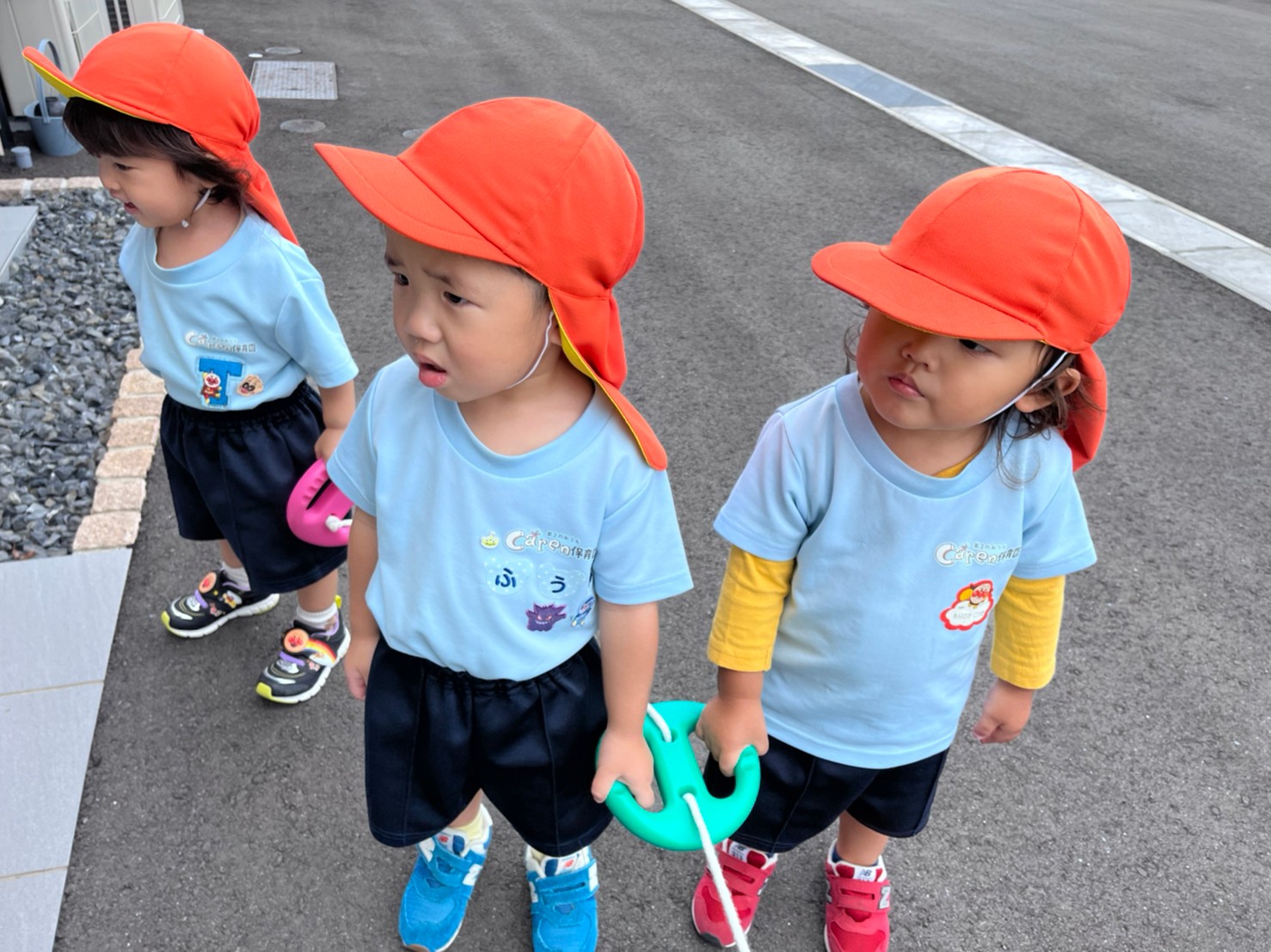 今日はてくてくロードにお散歩に行きました☀️枯れ葉の上を歩いてパリパリ言う音や感触を楽しんだり、車やすれ違う人に「こんにちはー!」とあいさつする子もいました🎶ほとんどの子どもが誘導ロープを握って歩けるようになり、成長を感じてます👏🏻✨気候も涼しくなって、できる限り外で過ごす時間をとれたらなと思います🤗💕ぱんだ🐼🐾