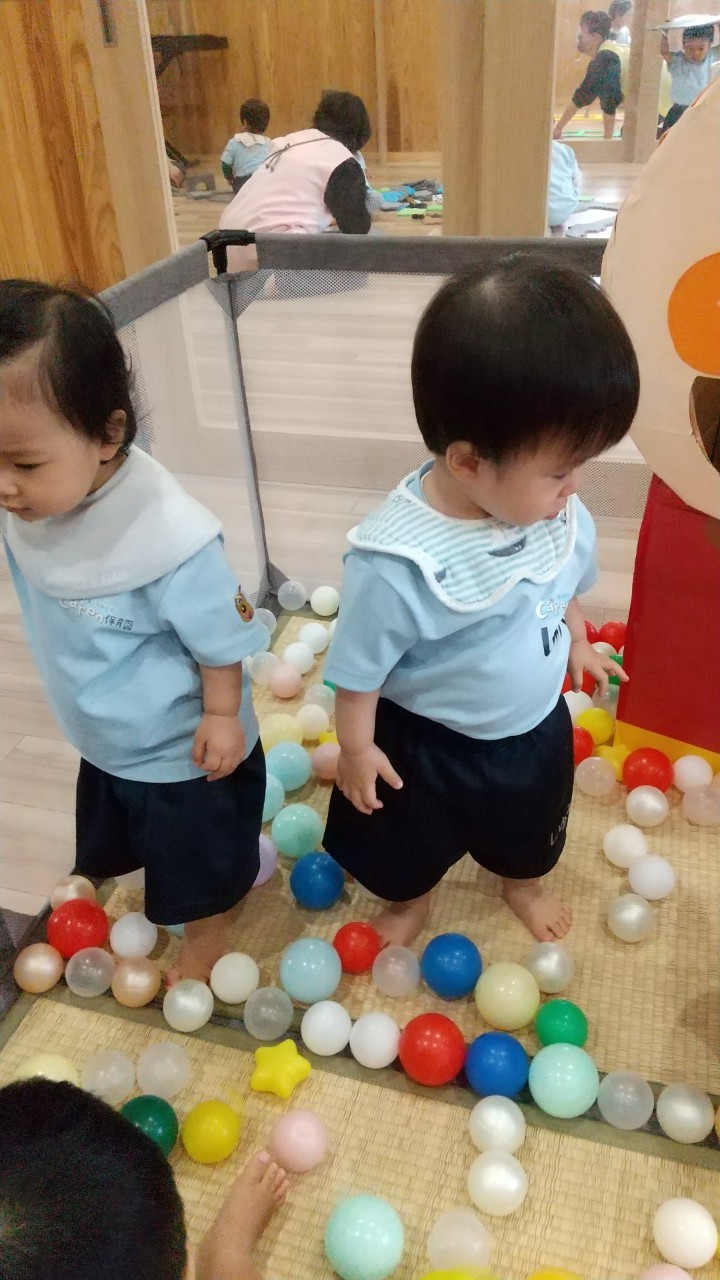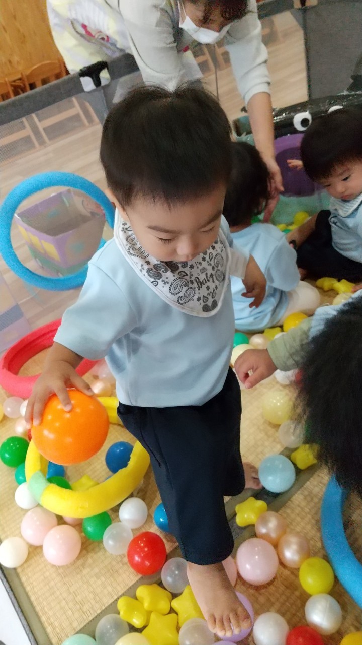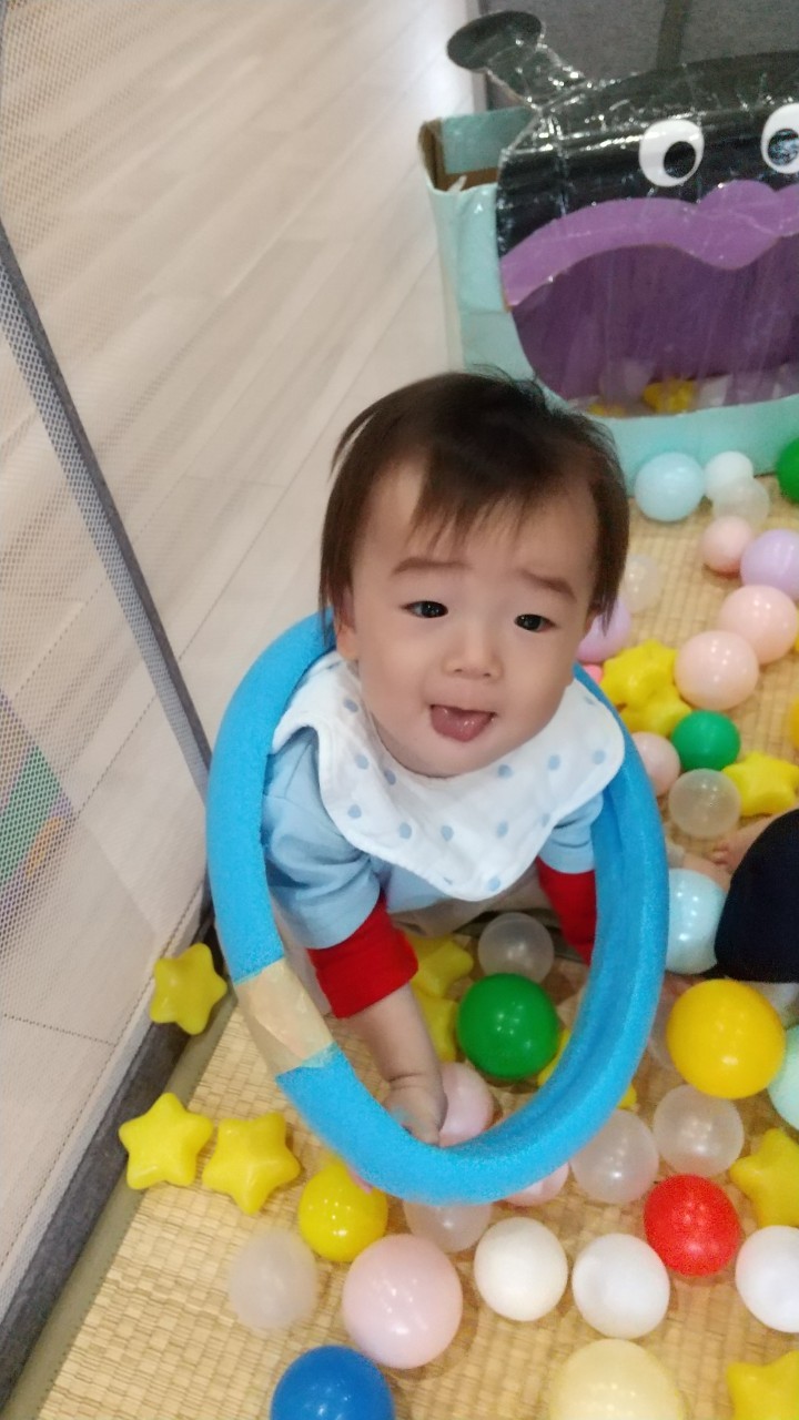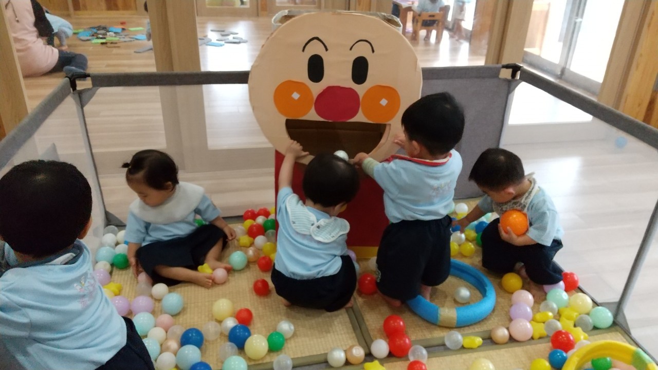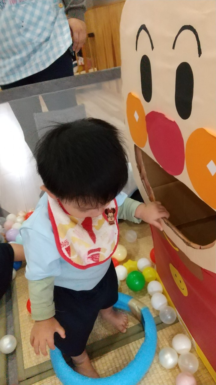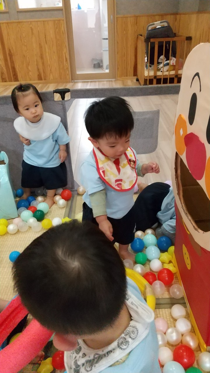 沢山のボールの中でコロコロ〜の感触を楽しんだり、アンパンマンボックスにボールを入れて大満足そうでした😆