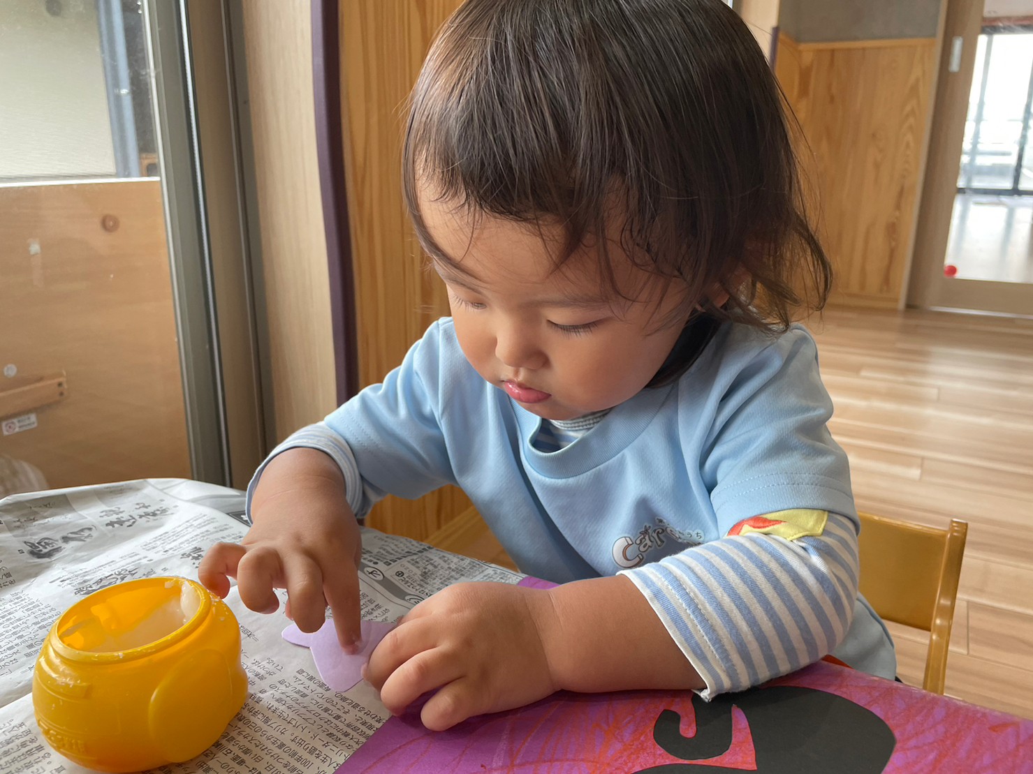 糊を指で塗る作業をして感触を楽しみながら製作することができました😌✨
