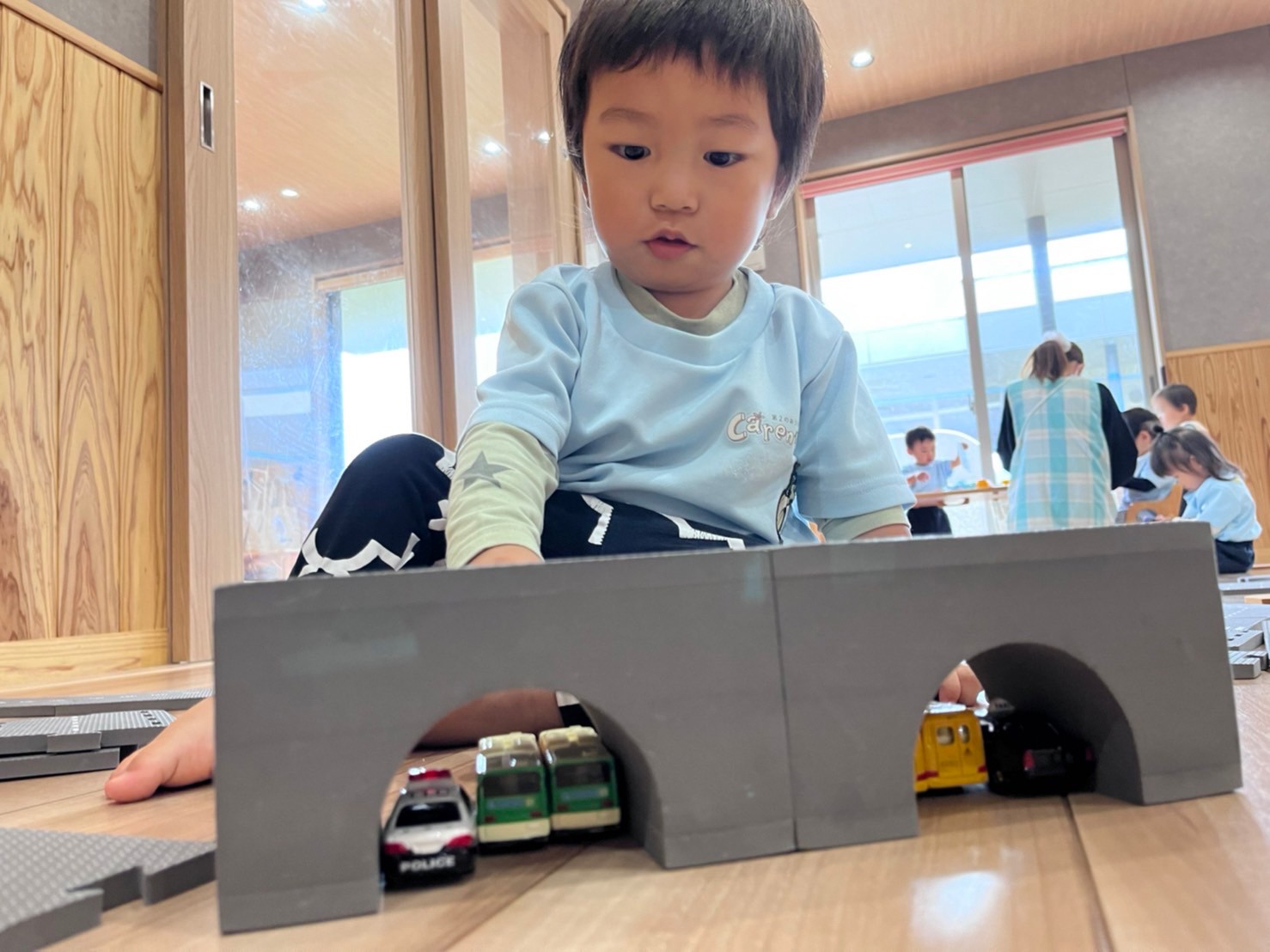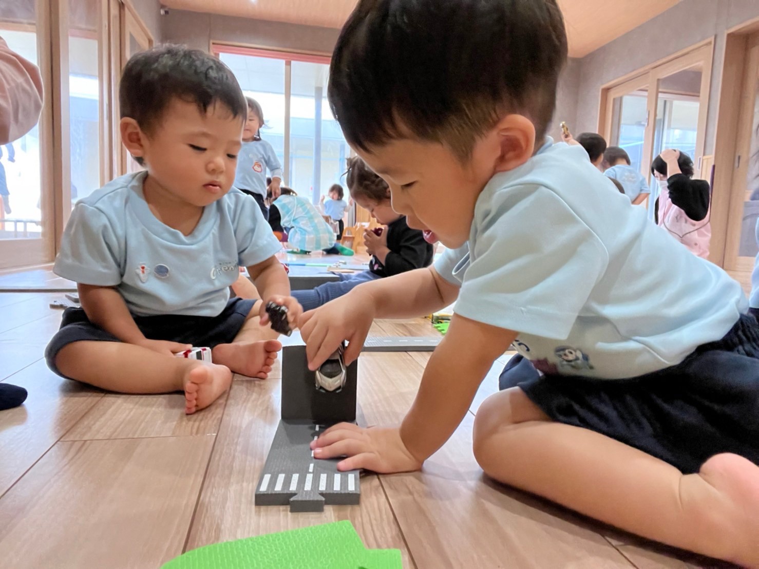 そのあとはトミカで遊び、「かして、どーぞ!」のやりとりをしたり