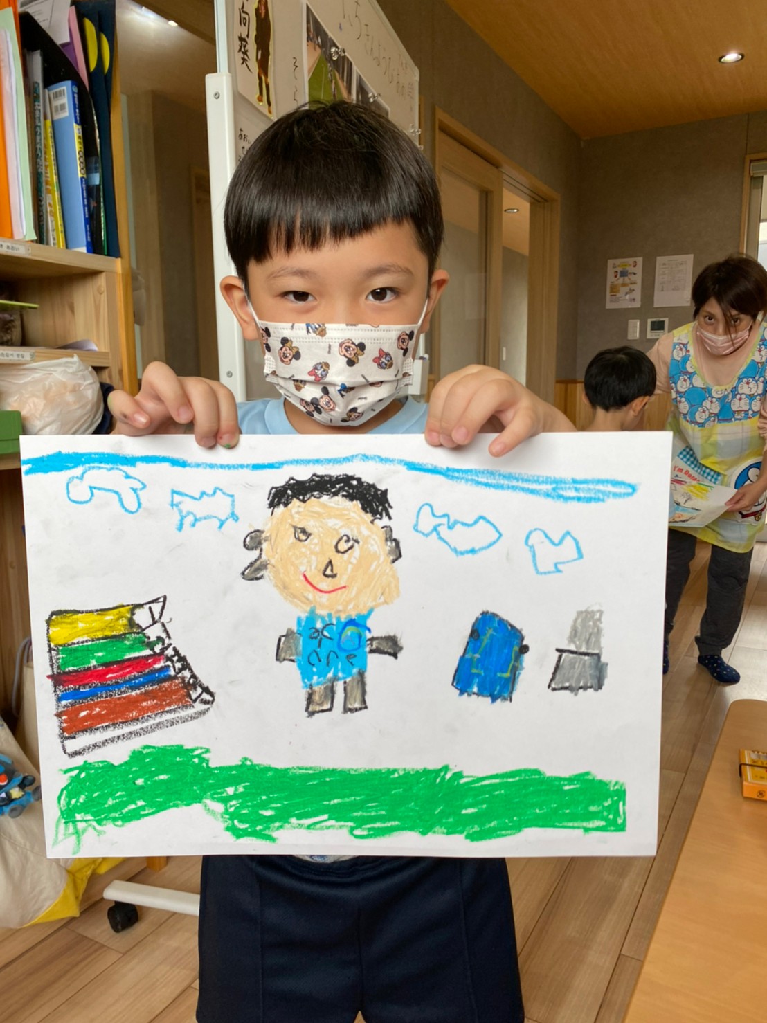日中は体操発表会の思い出画を描き、写真を見せると思い出を口々に話したり、クレヨンを握る手が止まらない様子でした😁✨