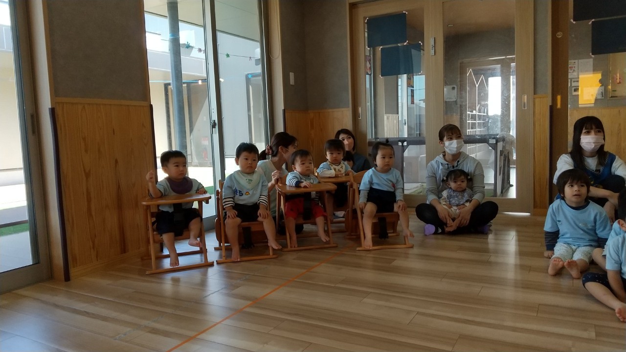 みんなで誕生日のお友達にお祝いの歌をプレゼントし、保育士の出し物を見て楽しみましたよ🚌🍙