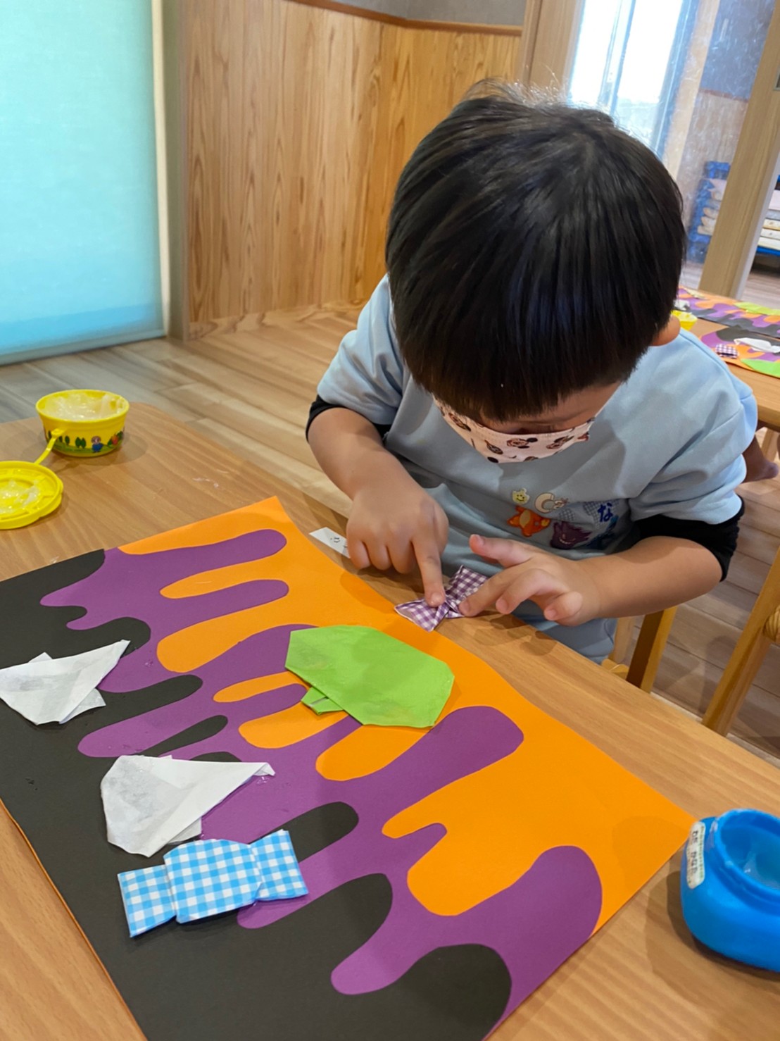 製作の前にはハロウィンの絵本を読み、ハロウィンを楽しみに思いながら製作に取り組みましたよ🎃🎶