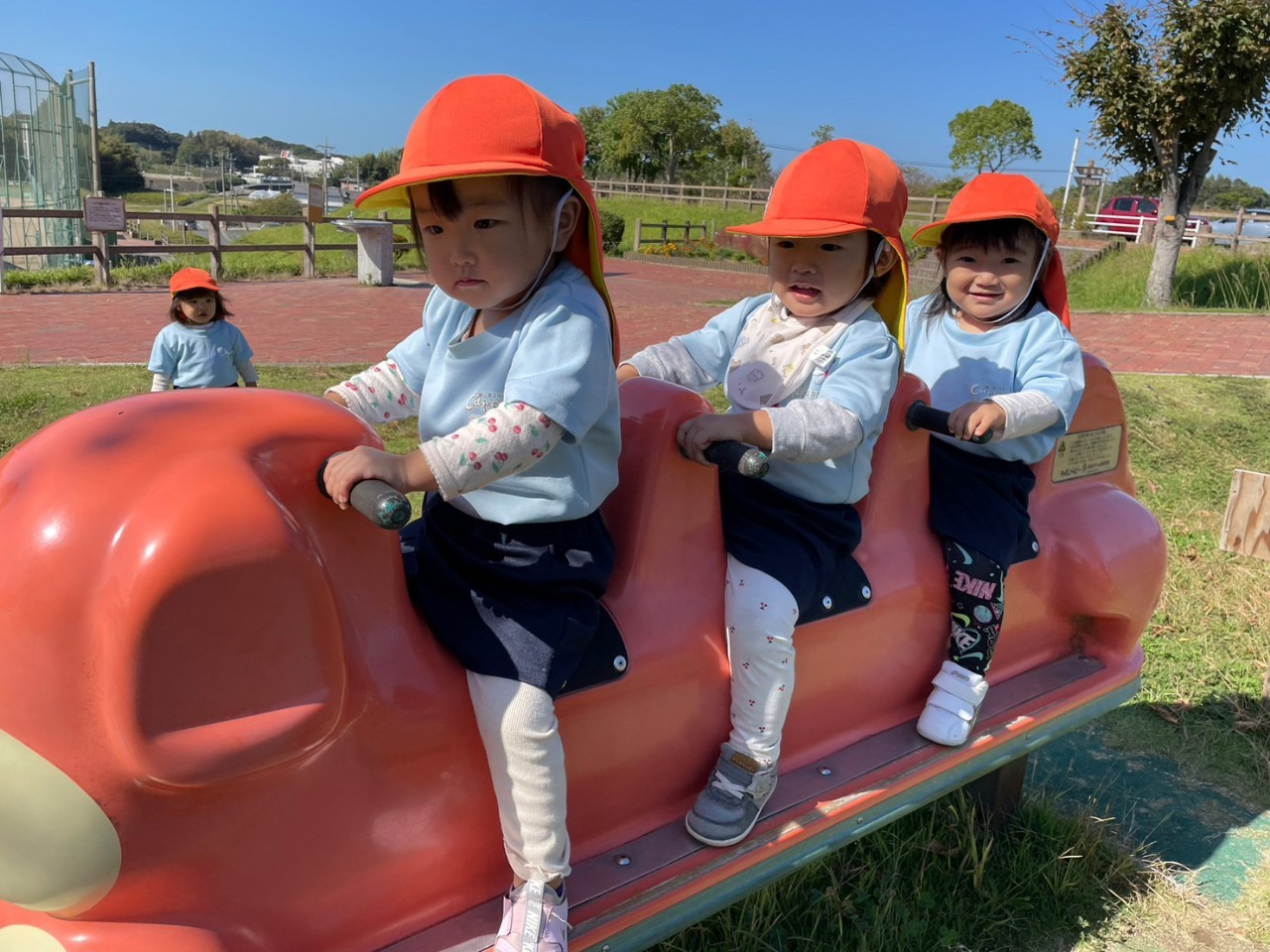 公園では朝のおやつを食べ、ローラーすべり台、ワンちゃん乗り物、ボール、しゃぼん玉、砂場遊びと、笑顔いっぱい体をたくさん動かして思う存分遊びました🥰