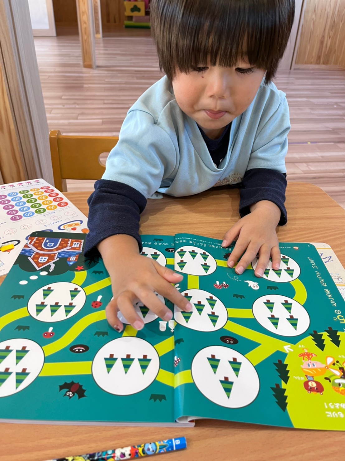 今日はポピーをしました✏️シール、めいろ、もじ、かずをそれぞれ頑張りました☺️✨早く終わった子からレコブロックで遊び、全員が終わってテラスで縄跳びをしました🎶結び目を解く、結ぶ練習もして、跳ぶより蛇のようにして遊んでた子どもたちです😂💕最後は保育者も一緒にだるまさんが転んだをしました😄